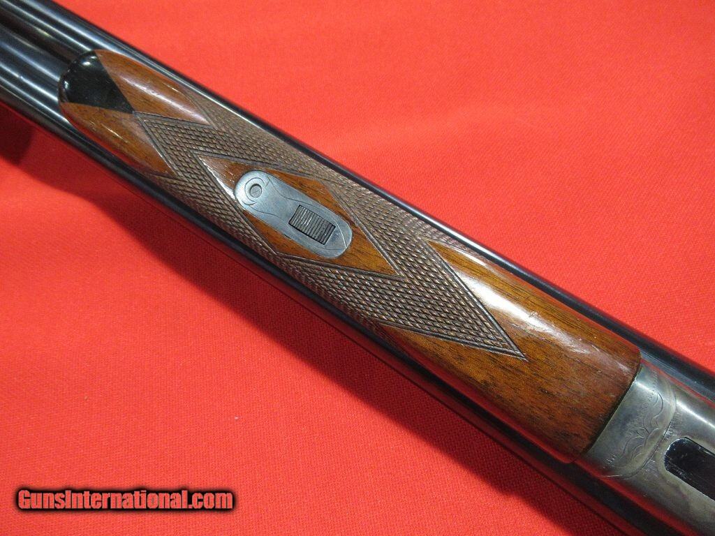 Description: 1947 Mfg L.C. Smith Ideal grade 12ga: This gun was special ordered with ejectors and a high tapered solid rib, double trigger, manual safety, capped pistol grip, splinter forearm with inletted tip, fully engraved receiver that is case colored, nicely figured American Walnut, London Steel rust blued barrels, feather weight frame, Mod/Full chokes. This gun is in excellent condition and has had a Hawkins recoil pad installed by Will Bros Restoration in Michigan as well as having the stock bedded around the lock plates to reduce the risk of cracks in the wood. The original butt plate is included and can be reinstalled. Also comes with a cocking tool, leather slip on forearm/hand guard, LC Smith case patch, and a LC Smith Collectors Association Letter. Price: $2,295.00 Contact Seller |
