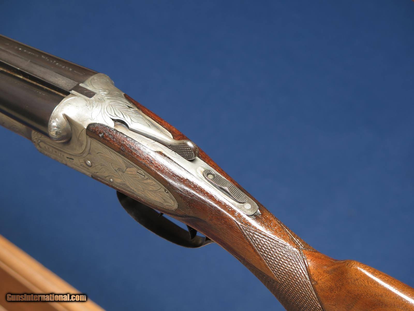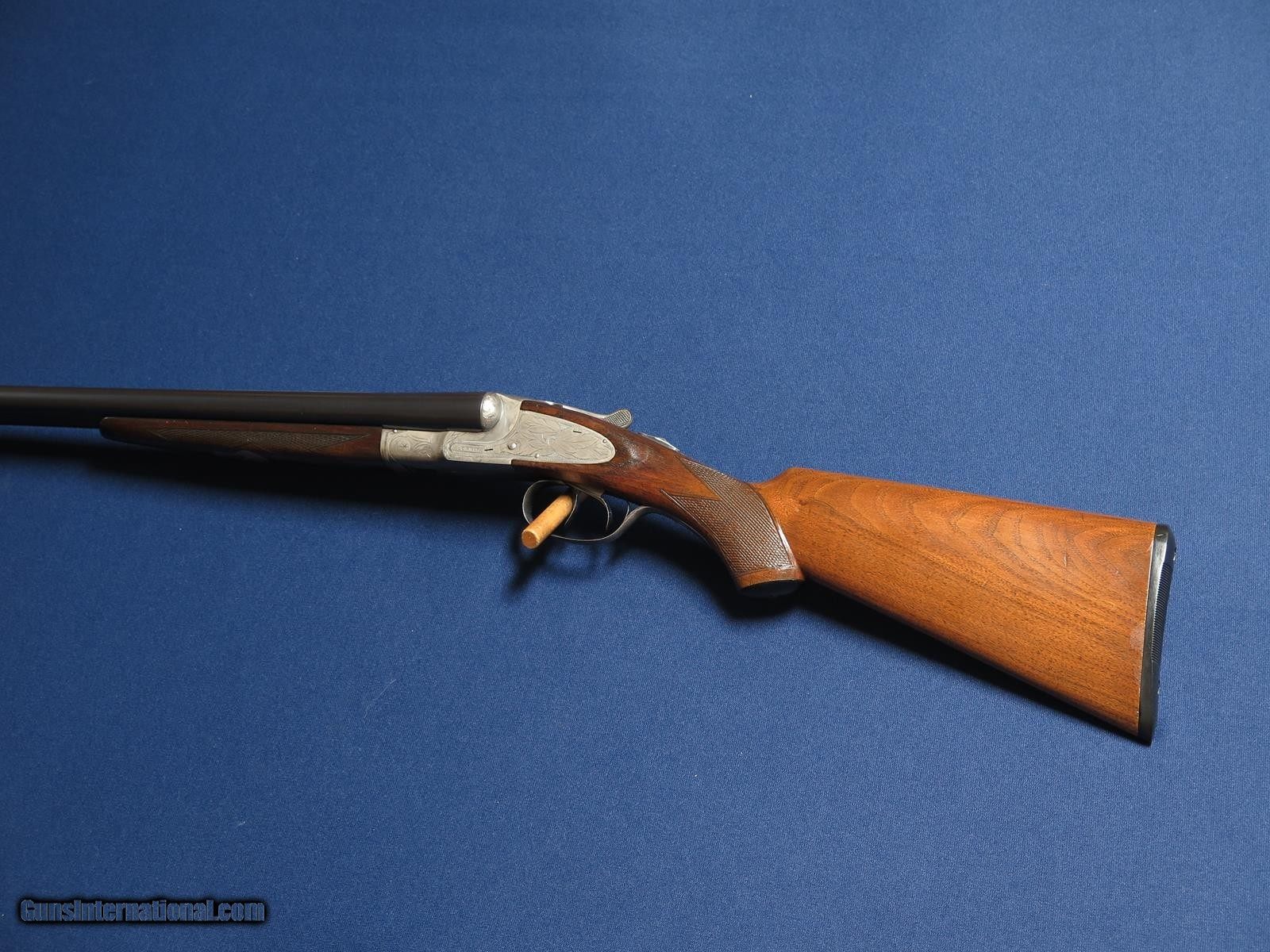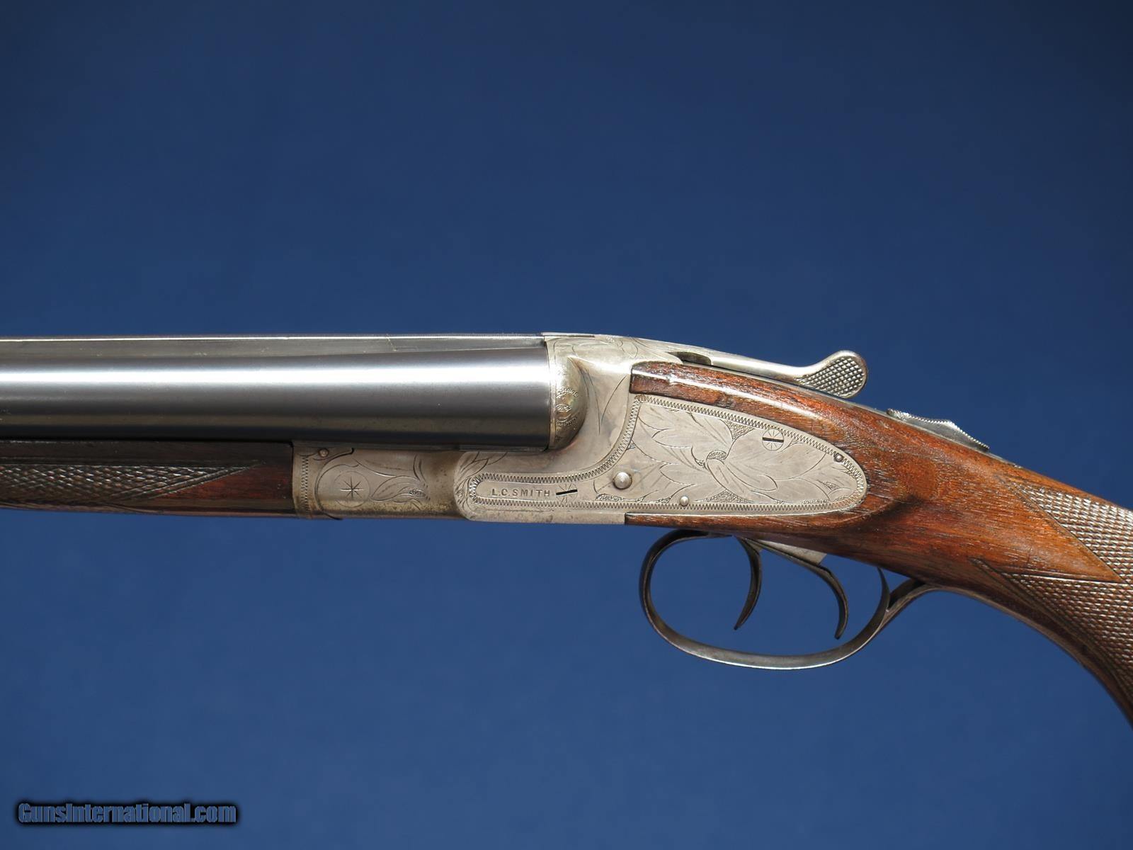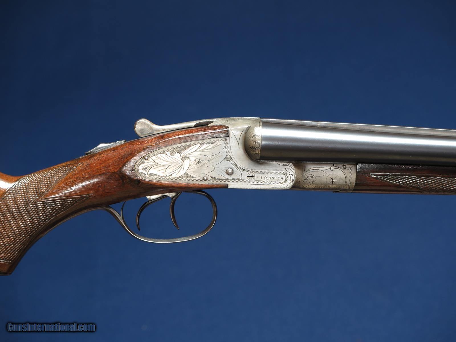 Description: LC Smith Ideal grade 16ga. 32 inch mod and full. .020 & .030. Double triggers. Ejectors. Typical small hair line cracks on both sides of locks. 14 1/4 LOP butt plate. Traces of case coloring. 95% blue on barrels. Three position safety. Excellent bores. SOLD |