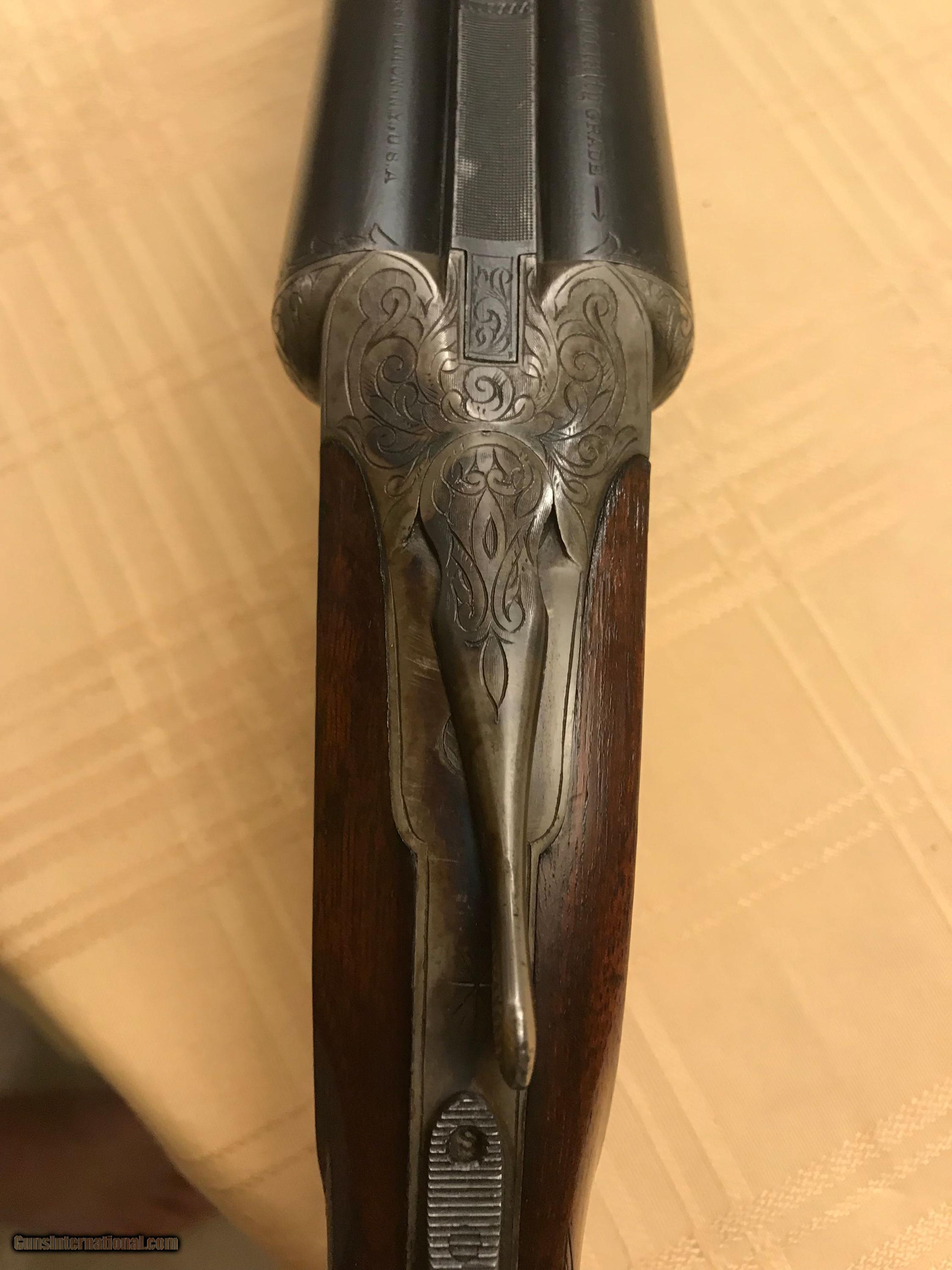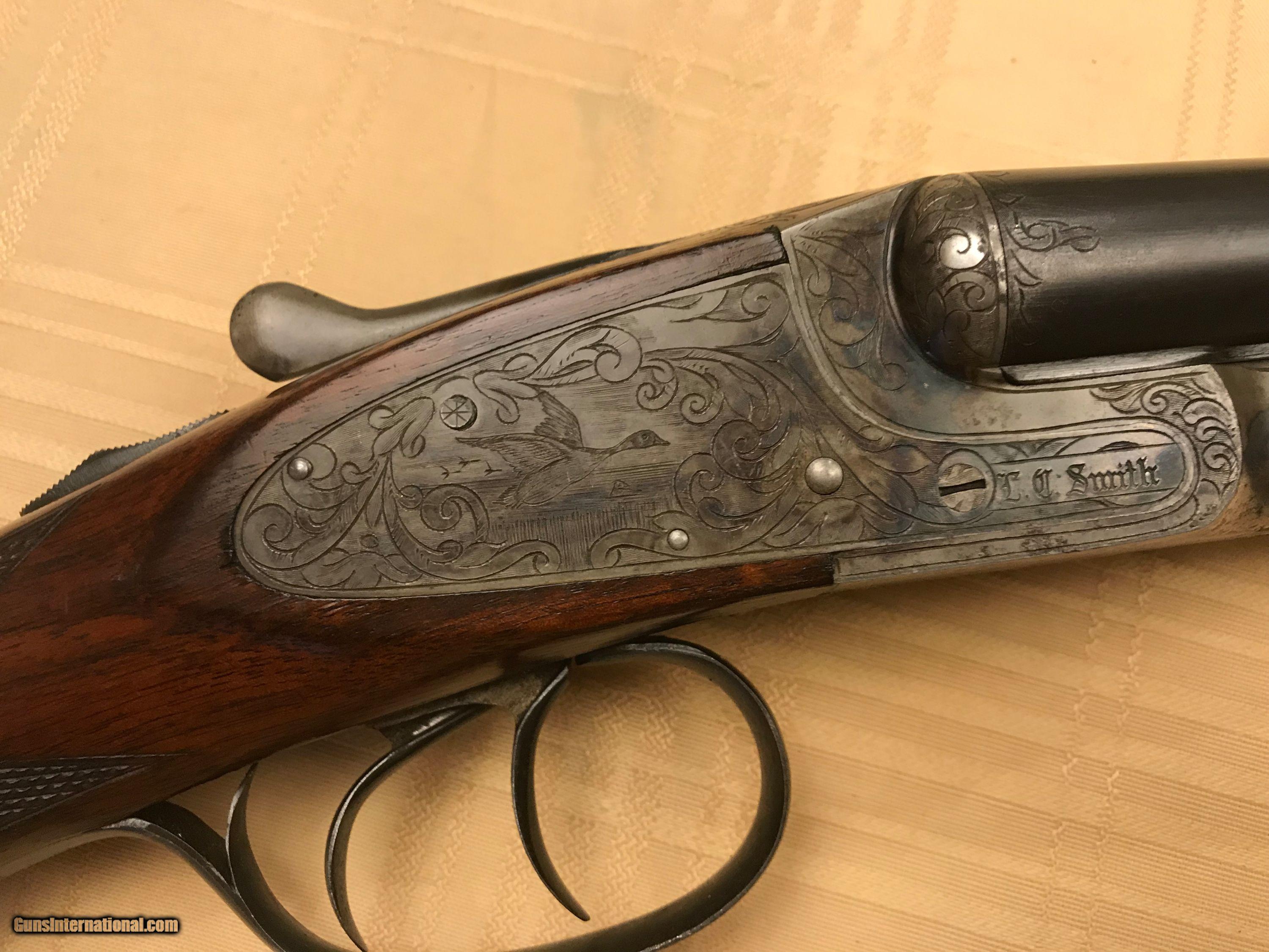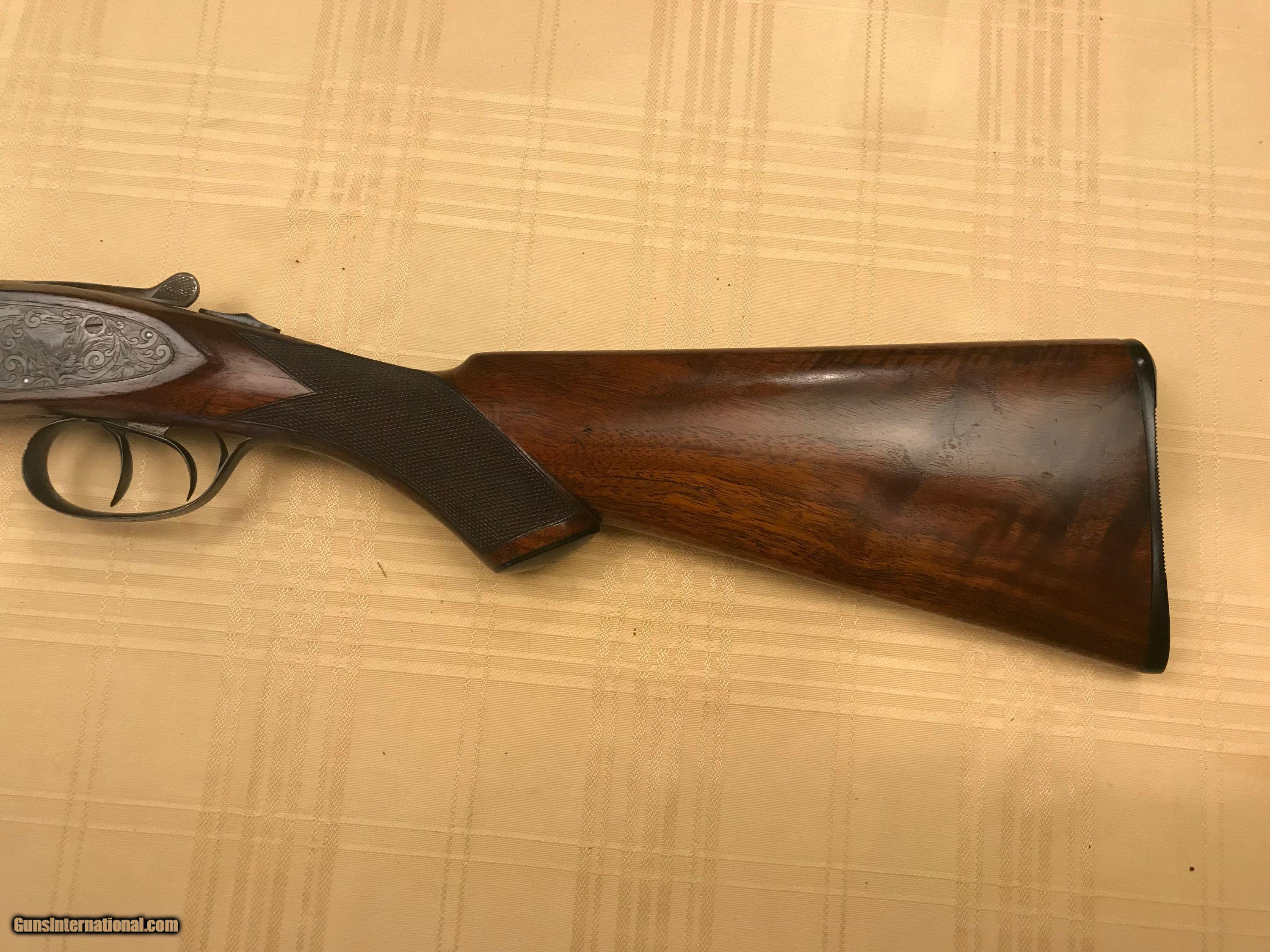 Description: Factory original Specialty Grade 20ga with 28" barrels --- 80-85% original color That is vivid on frame sides -- 99% blue --- excellent original wood with some light handling marks -- Factory Buttplate -- double triggers -- double beads --- ejectors --- This is a wonderful little gun that would make a great upland companion -- perfect bores and chokes at Cyl/Mod (.00/.020) 14 3/8 1 3/4 x 2 1/2 SOLD Manufacturer: LC Smith Model: Specialty Bore: 20 Ejectors: yes Condition: excellent original Triggers: 2 Stock Comb: 1 3/4 Stock Heel: 2 1/2 LOP: 14 3/8 Weight: 6lb 1 oz Sights: 2 Choke Left: .020 Choke Right: .00 |