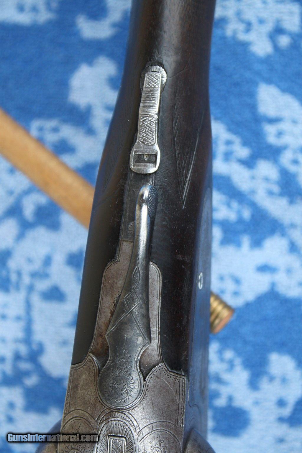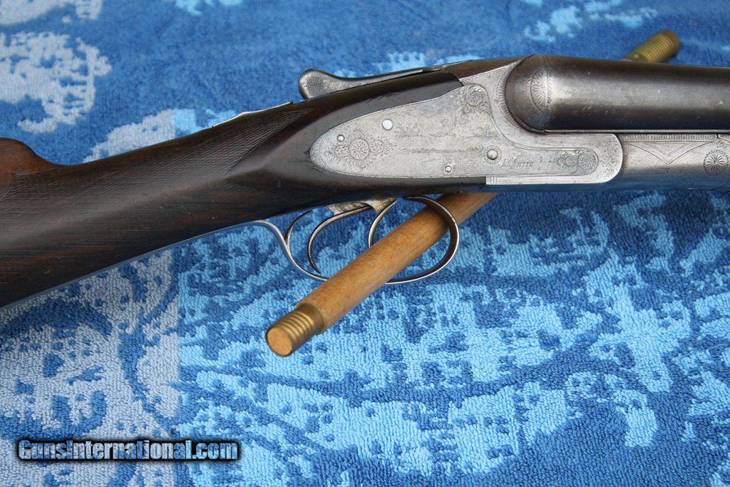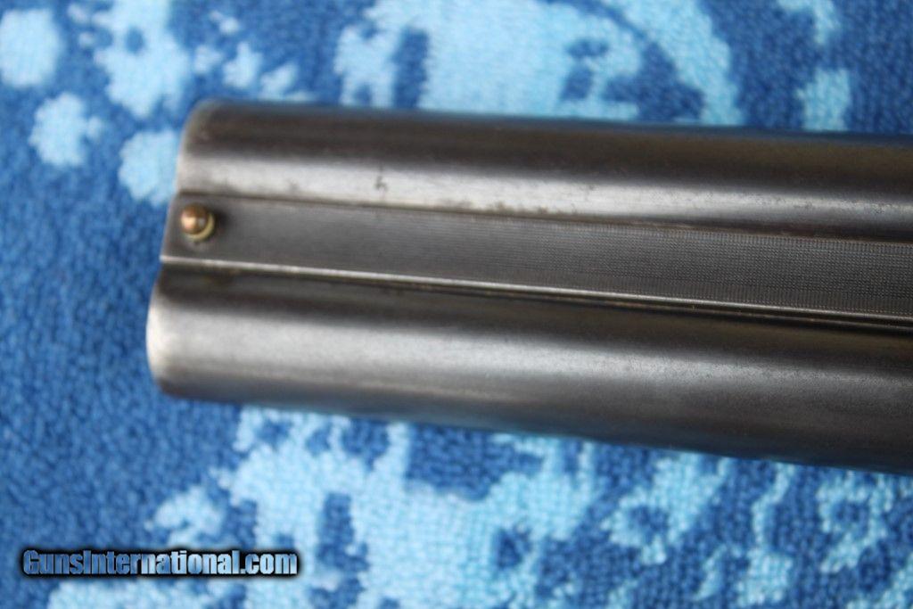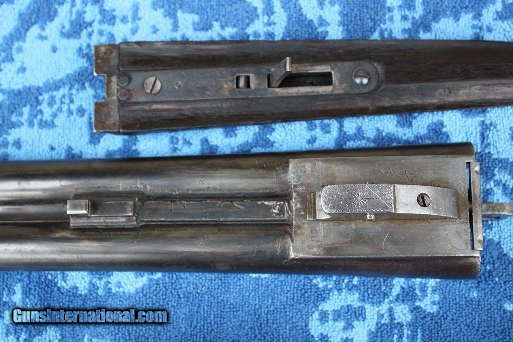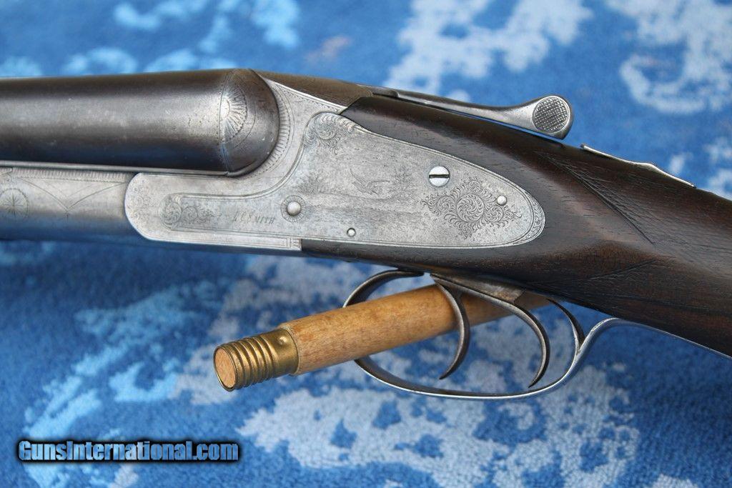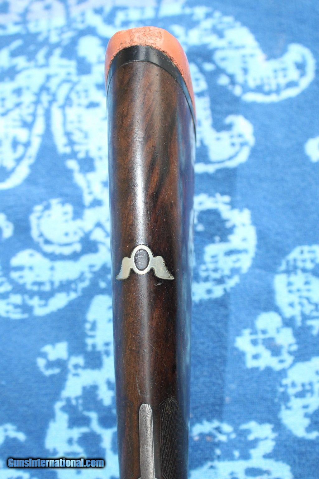 Description: SOLD! LC Smith Pigeon grade 12ga shotgun. 30" extractor Crown steel barrels with chokes R/.038 and L/.034. The bores are shiny. Straight grip stock with LOP of 14.25" to a hard pad, DOC = 1 7/16", DOH = 2 1/4". Original condition with wear and marks on all surfaces. checkering is worn on both stock and forend. Locks up tight and works just fine. This gun was made in 1893 and can ship direct to buyer. Please see pictures for accurate description and condition. SOLD |