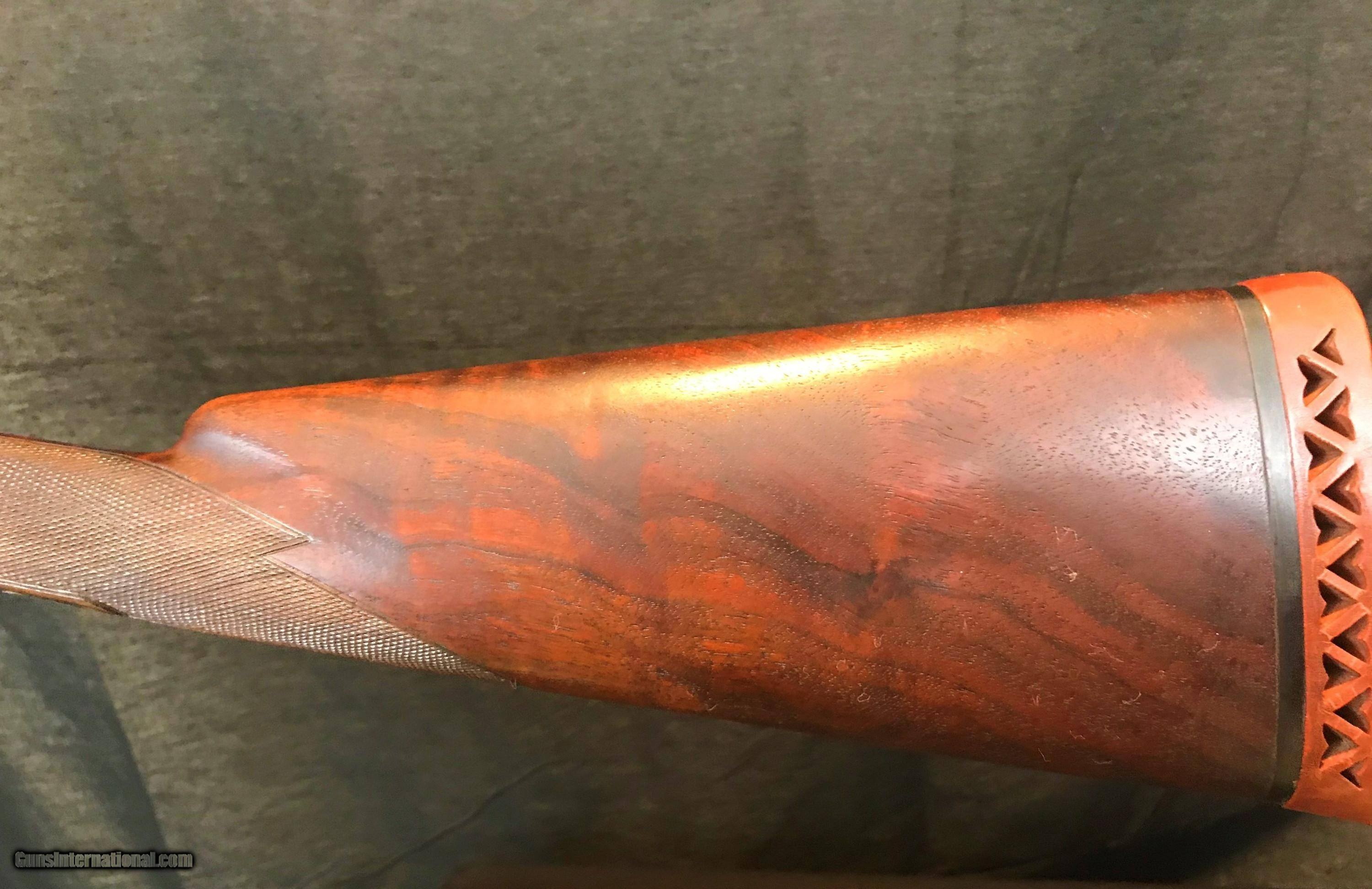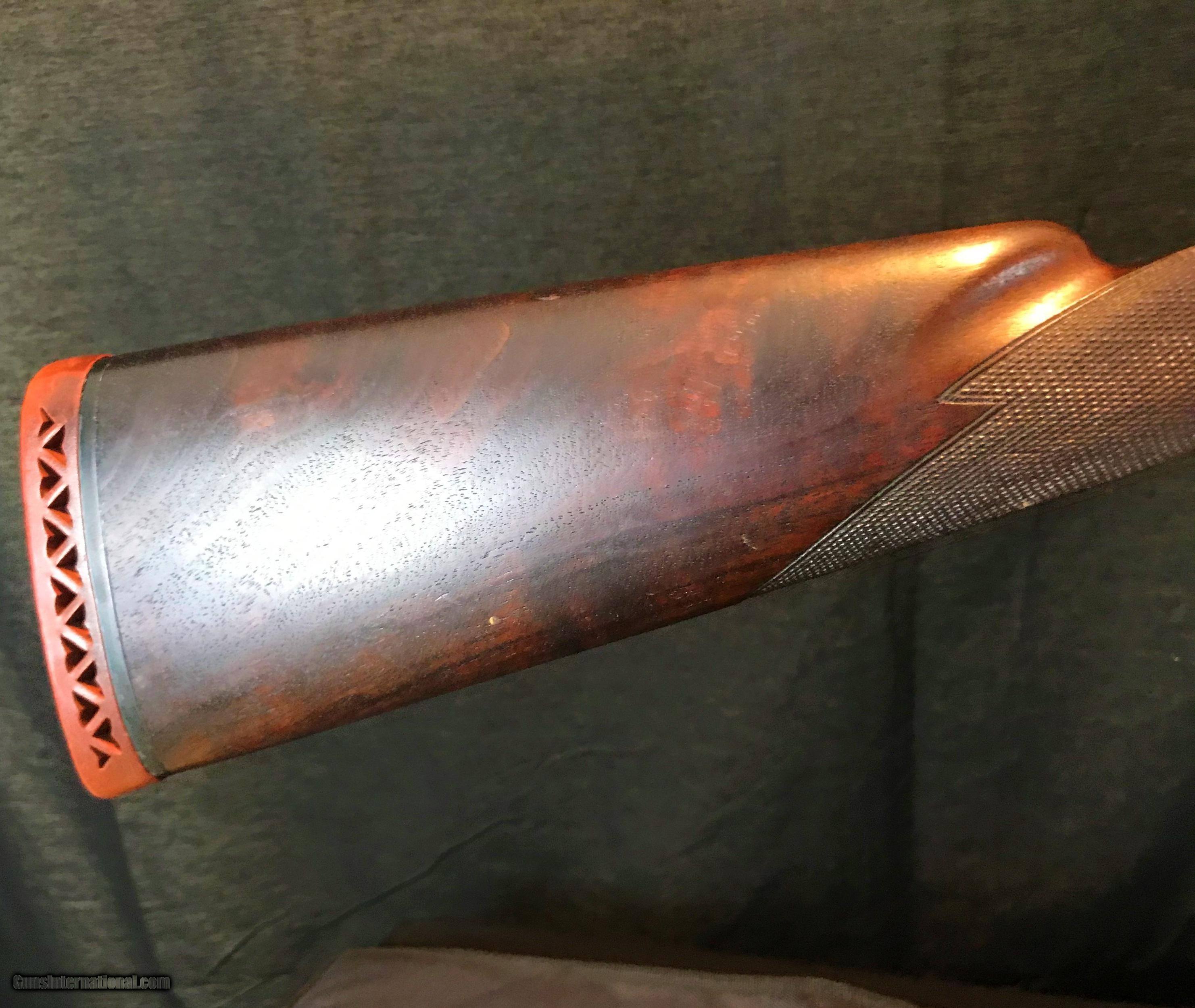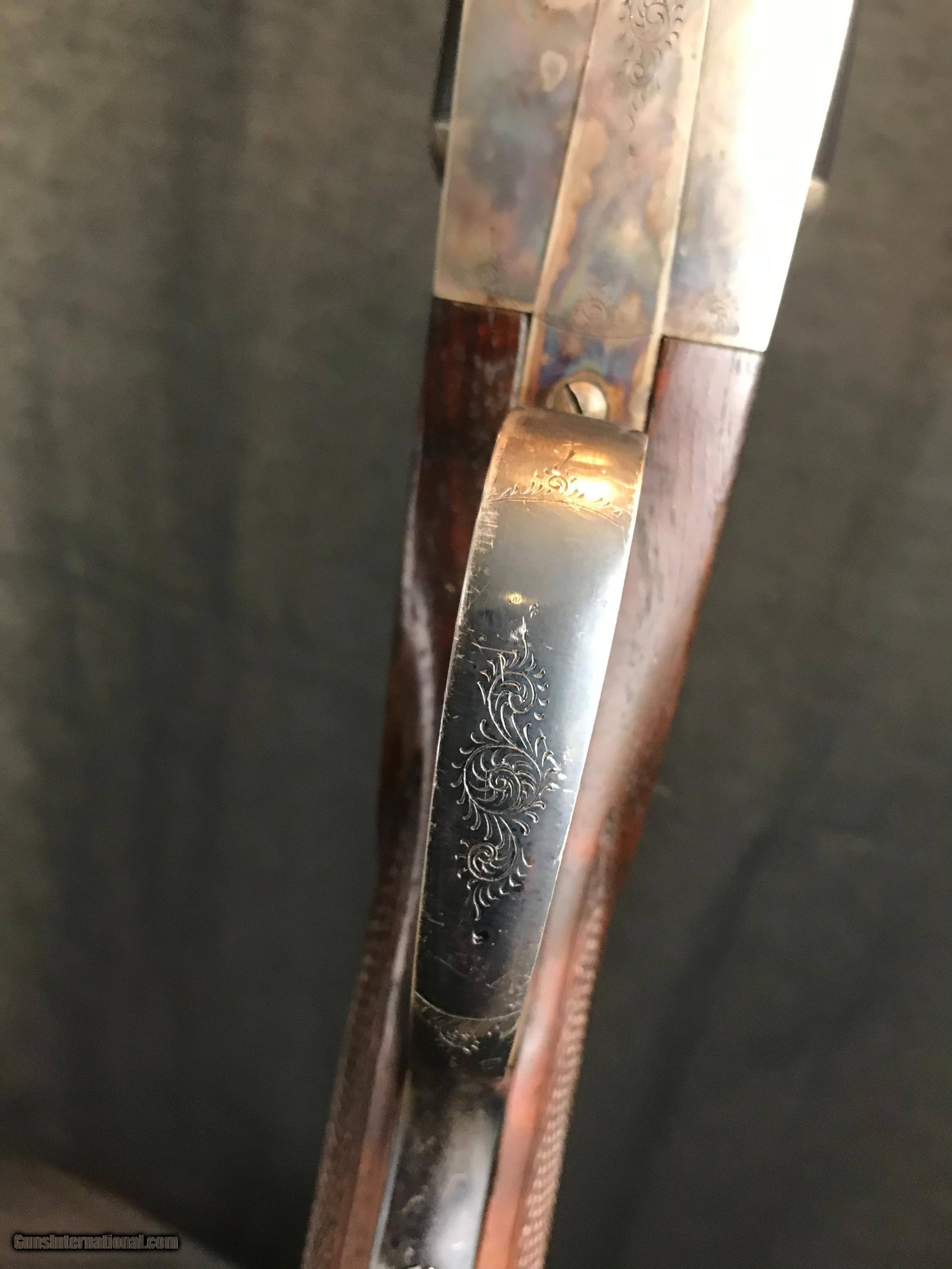 Description: BEAUTIFUL LC SMITH PIGEON 20GA -- APPEARS TO BE A FACTORY LUNCHBOX GUN -- LETTERS AS FIELD GRADE WITH FIELD GRADE MARKED BARRELS ENGRAVED AND COLORED AT LC SMITH -- THESE GUNS SHOW UP OCCASIONALLY AND WERE TYPICALLY EMPLOYEE OWNED-- EMPLOYEES WOULD PURCHASE THE LOWEST GRADE POSSIBLE AND BARTER AND TRADE WORK TO BUILD A HIGHER GRADE -- ABSOLUTELY ALBERT KRAUS ENGRAVING DONE AT HUNTER ARMS -- I SOLD A SIMILIAR ORIGINAL PIGEON 20 FOR 25K SO THIS GUN IS A BARGAIN -- PRICED ACCORDINGLY -- STRAIGHT HAND STOCK WITH SHORTER PISTOL GRIP GUARD -- PERIOD HAWKINS PAD -- EJECTORS -- SPLINTER FOREND -- FULL/FULL -- COLORS REMAIN VIBRANT AS APPLIED AT SMITH -- EXCELLENT BARREL BLUE AND VARNISH -- A PERFECT GUN TO TAKE AFIELD -- ALL NUMBERS MATCH -- VERY ATTRACTIVE TO THE EYE AND WALLET. 14 3/4 1 1/2 X 2 1/2 HAWKINS PAD 6LBS 10OZ SOLD Manufacturer: LC SMITH Model: PIGEON/FIELD Barrel Length: 28 Ejectors: YES Condition: EXCELLENT Action: SXS Triggers: 2 Stock: STRAIGHT Fore End: SPLINTER Butt Pad: YES LOP: 14 3/4 Sights: 2 Choke Left: FULL Choke Right: FULL Engraving: YES |