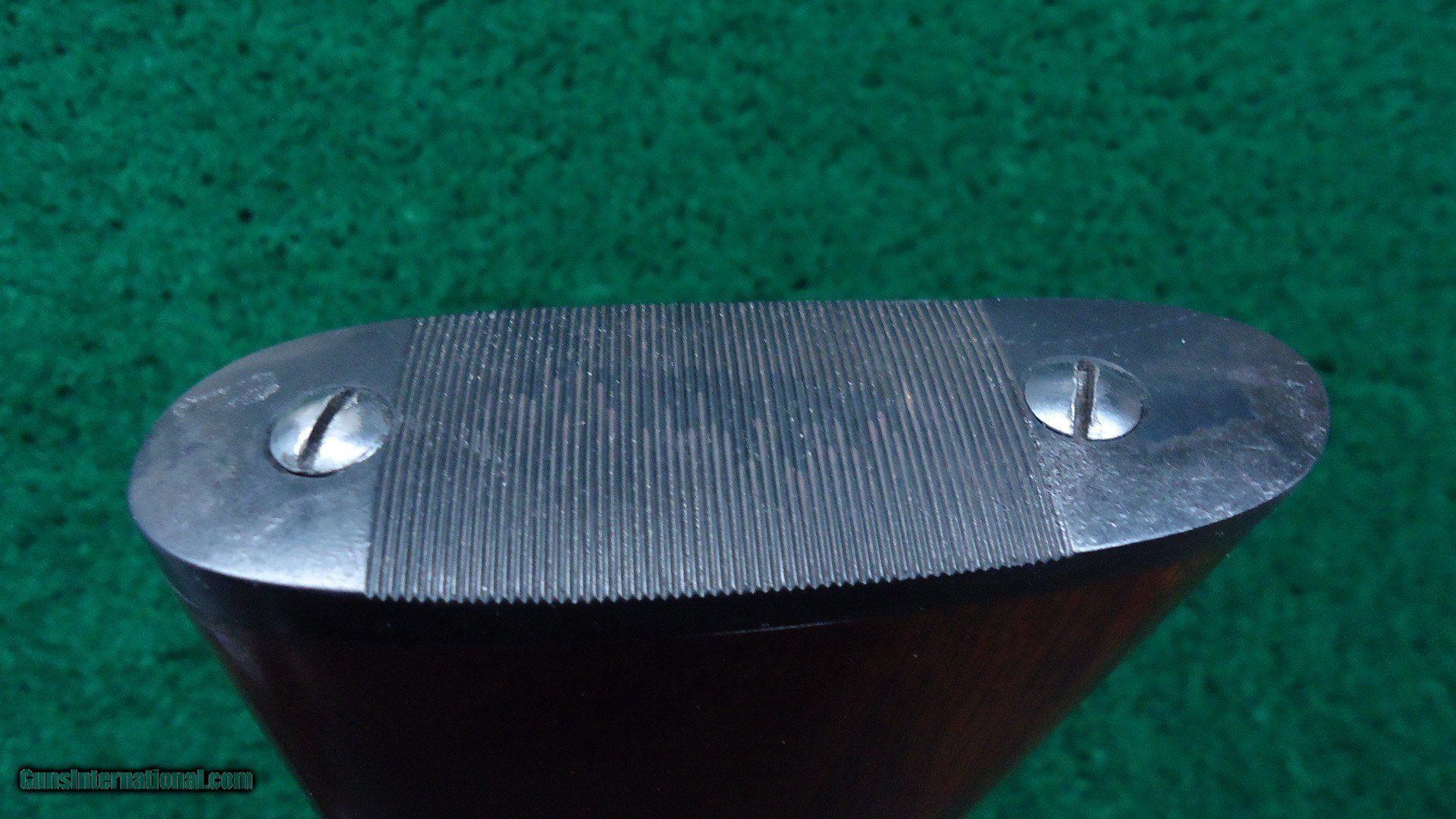 Description: 28 inch barrels with excellent bores. Wood is in very nice condition with sharp checkering. Splinter forearm. Hunter One trigger. LOP 14-1/8 inches. Overall gun is in excellent condition with 95% vivid blue. About 90% bright case color. Appears to have an Ideal trigger guard as it is engraved. Serial number is on the lower tang. Other than that serial number, there isn't a single marking on the gun. Could this be a "lunch box" gun? This has been in my collection for 25 years or so. Might be worth checking with the Buffalo Bill Museum in Cody Wyoming to see if they have any info on this gun. They house the LC Smith records. Leroy Merz Antique Firearms specializes in antique and vintage Winchesters and other fine American firearms. Since 1965 Mr. Merz has taken part in the world of firearms and has been a contributor to many well known reference books. Just recently we mailed the 129th edition of our privately-published catalog. We have hundreds of additional guns in every price range at our home online. Search for Merz Antiques in google. SOLD Curio/Relic: Yes |
