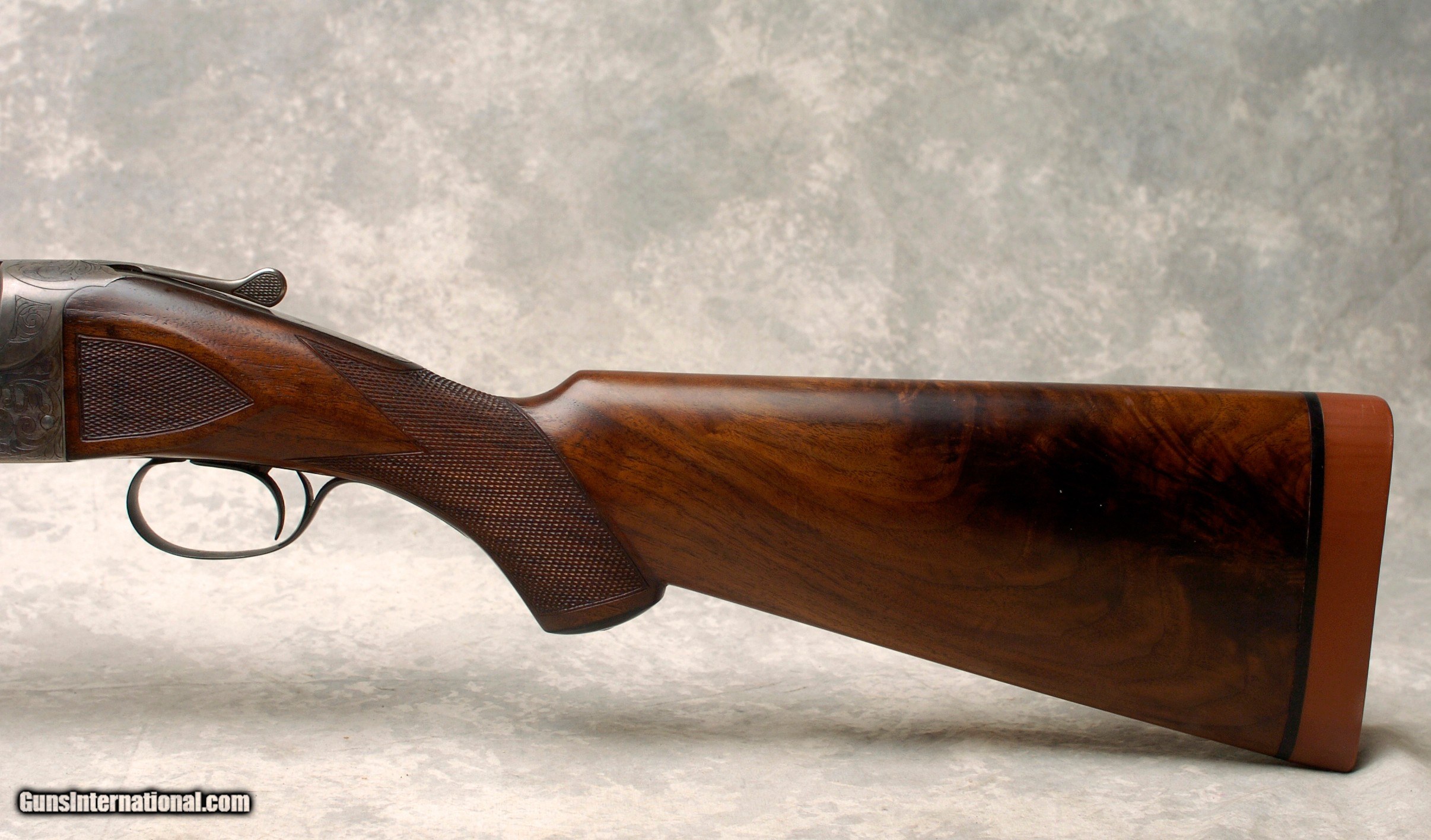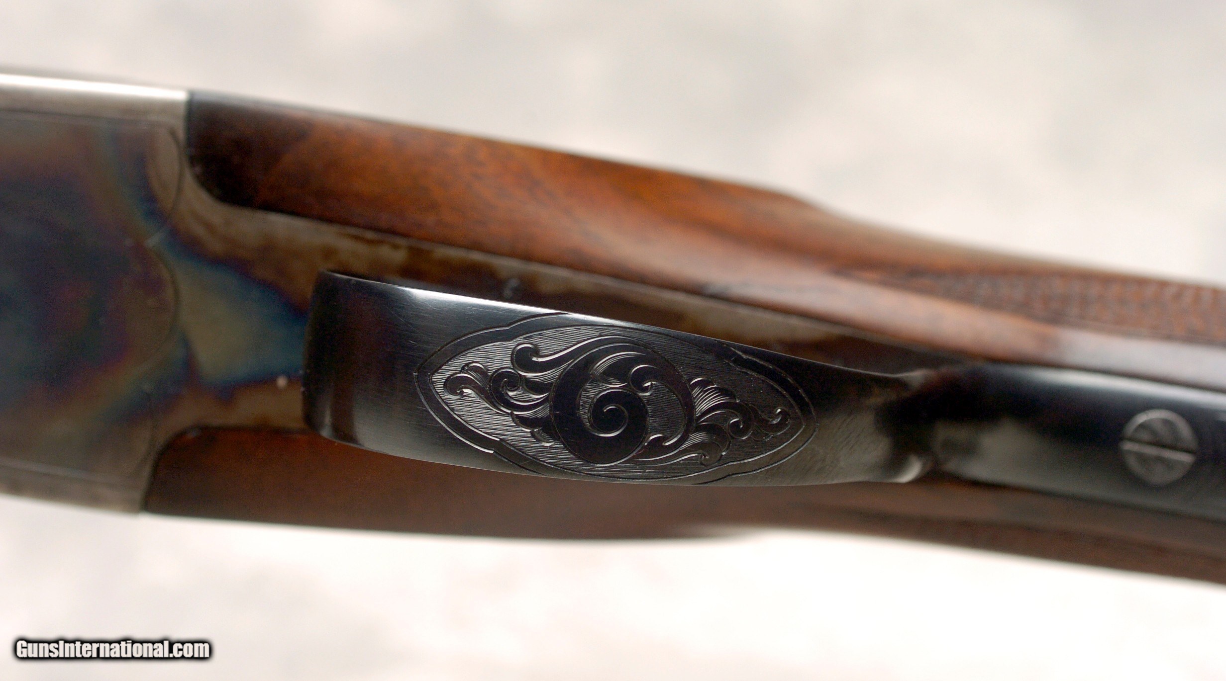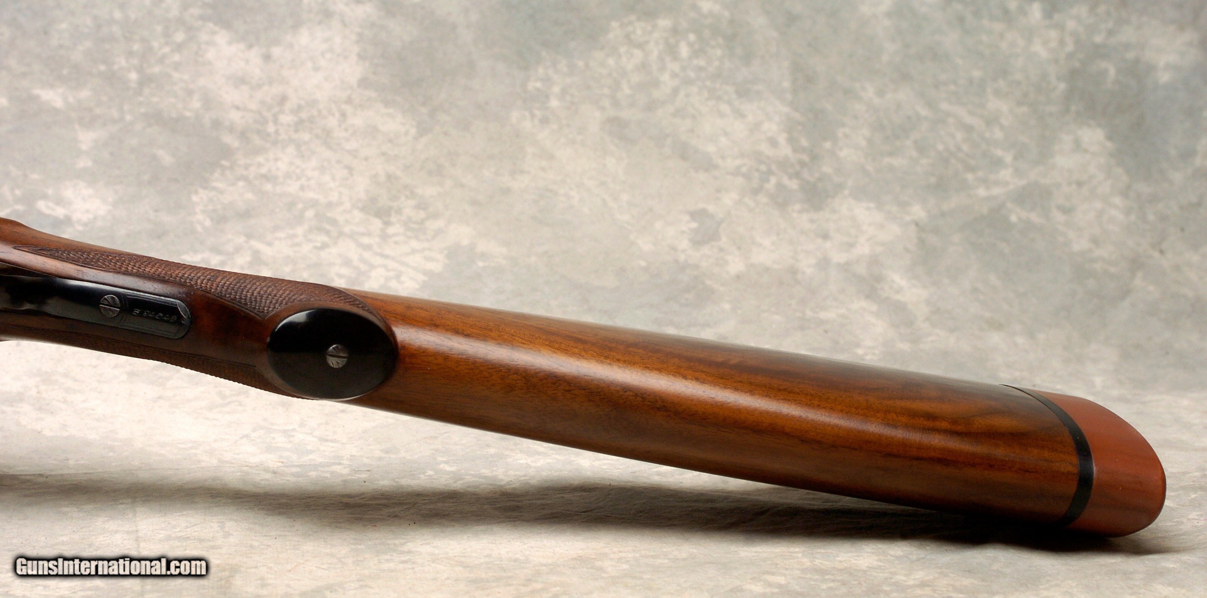 Description: Here is an LC Smith Specialty grade, single barrel trap shotgun in 12 gauge with a 32 inch barrel. This is a quite rare gun with less than 1500 produced during it's production run ending in the 1940's. Hunter Arms was the builder of this particular gun. With a clean sharp bore and a like new finish on the barrel this gun has been well cared for throughout it's life. It now has a red fiber optic bead sight on the front and a brass rear bead. The gun has a checkered beavertail forend with no dings or marks. The stock also is free of any noticeable dings. It has a checkered pistol grip with a black cap. The action is tight and solid and functions well. The lever still sits far to the right. The action still reflects some of it's original case color and has a sitting dog scene on the left side and a grouse scene on the right, both surrounded with foliage and some scroll work. It has the LC Smith Specialty Trap rollmark on the left side of the barrel at the action. Both the stock and forend are American Walnut and are nicely figured. This is a fine American made gun in very good condition overall. SOLD Curio/Relic: Yes Manufacturer: Hunter Arms Model: LC Smith Specialty Trap Serial Number: S945XX Barrel Length: 32 Bore: clean and bright Ejectors: ejector Condition: very good Metal Condition: very good Wood Condition: very good Bore Condition: excellent Barrels: nitro steel Barrel Type: round high rib Action: box lock Triggers: single Gauge Info: 12 Stock: pistol grop Fore End: checkered beavertail Butt Pad: red rubber LOP: 14 Rib: high vent rib Finish: blued Sights: front red fiber optic bead Chokes: full Engraving: hand Proof:Nitro: yes |