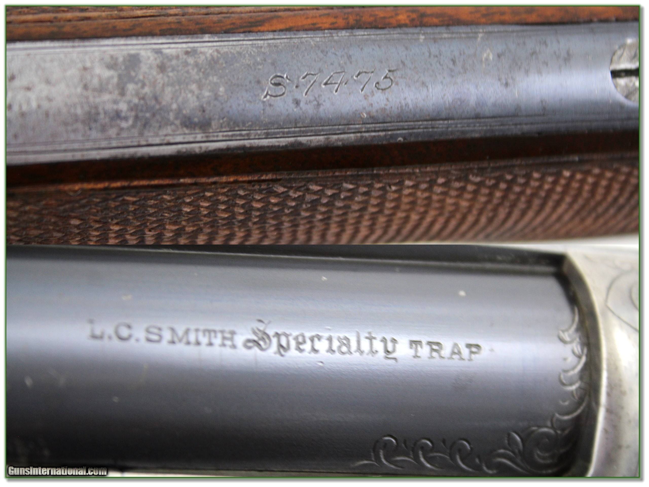 Description: Collectors and shooters, this is a beautiful high grade LC Smith Trap 12 Gauge. It is has a 32in barrel choked full. It has a beautiful English stock with 13.5in LOP. It has a beautiful, engraved, case colored receiver. The single barrel has an ejector, and the wood checkering is excellent! It will make a fine addition to your collection! I call it a Shooting Investment. I am selling this one on consignment and as such lay-a-way can’t be used. It does of course have the standard 3-day inspection. Shipping and insurance is $59. Please email me with any questions or larger pictures. (Consign your quality firearms with Shooting Investments for only 12%! Let me know if you have any you would like to sell!) 23-0904 Payment: Payment is by Money Order, Cashier’s Check or Personal Check. I can now also accept Credit Cards (MasterCard, Visa, Discover & American Express) with a 3% convenience fee. Shipping: The shipping charge will be listed in each description. It is $49 for most firearms. Some heavy guns or those insured for over $2000 will be higher. Shipments to Alaska and Hawaii are higher because air shipment is required. Most firearms are shipped on Tuesday and Thursday and usually in 5 days of receipt of payment. We package all shipments carefully and insure them. Optics are shipped Priority Mail and most other non-firearm shipments are shipped First Class. Returns: Our return policy is simple. If for any reason you are not pleased with your purchase, you may return your item for a full refund of purchase price. Ammunition cannot be returned. It is important to us that you are happy. Guns cannot be fired or dissembled before returning them and they must be returned in the same condition as received. Notification of a return must occur within 3 days of receipt at your dealer. Shipping, convenience and dealer fees are not refundable and are the responsibility of the buyer. Lay-a-way: If needed, we offer a 60 day lay-a-way option on most firearms. It is 1/3 now, 1/3 in 30 days and 1/3 in 60 days. Lay-a-way firearm sales are final and cannot be returned. If a lay-a-way is not completed the first payment cannot be refunded. Consigning your firearms with Shooting Investments: We will help you get top dollar for your firearms. While most local guns shops charge 20% or more, our fee is only 12% with a minimum of $75. At your local gun shop it might take months to sell. Selling on-line provides instant access to thousands of interested buyers. You won’t find any other on-line dealer willing to sell your firearms for only 12% or listing every gun on 3 separate s. Selling through an House typically costs the seller 15% and the buyer an addition 15% (so 30%) and you have to wait several months to sell and longer to receive funds. If properly priced, we will sell your firearms within a few weeks. Send us an email or give us a call and we’ll explain how easy it is for you to get top dollar. Trading: Trading for us is really just buying your gun to re-sell. If you have a gun you want to trade, please email a picture and we will let you know what we can give for it. You will always get more if we sell it for you on consignment. SOLD |