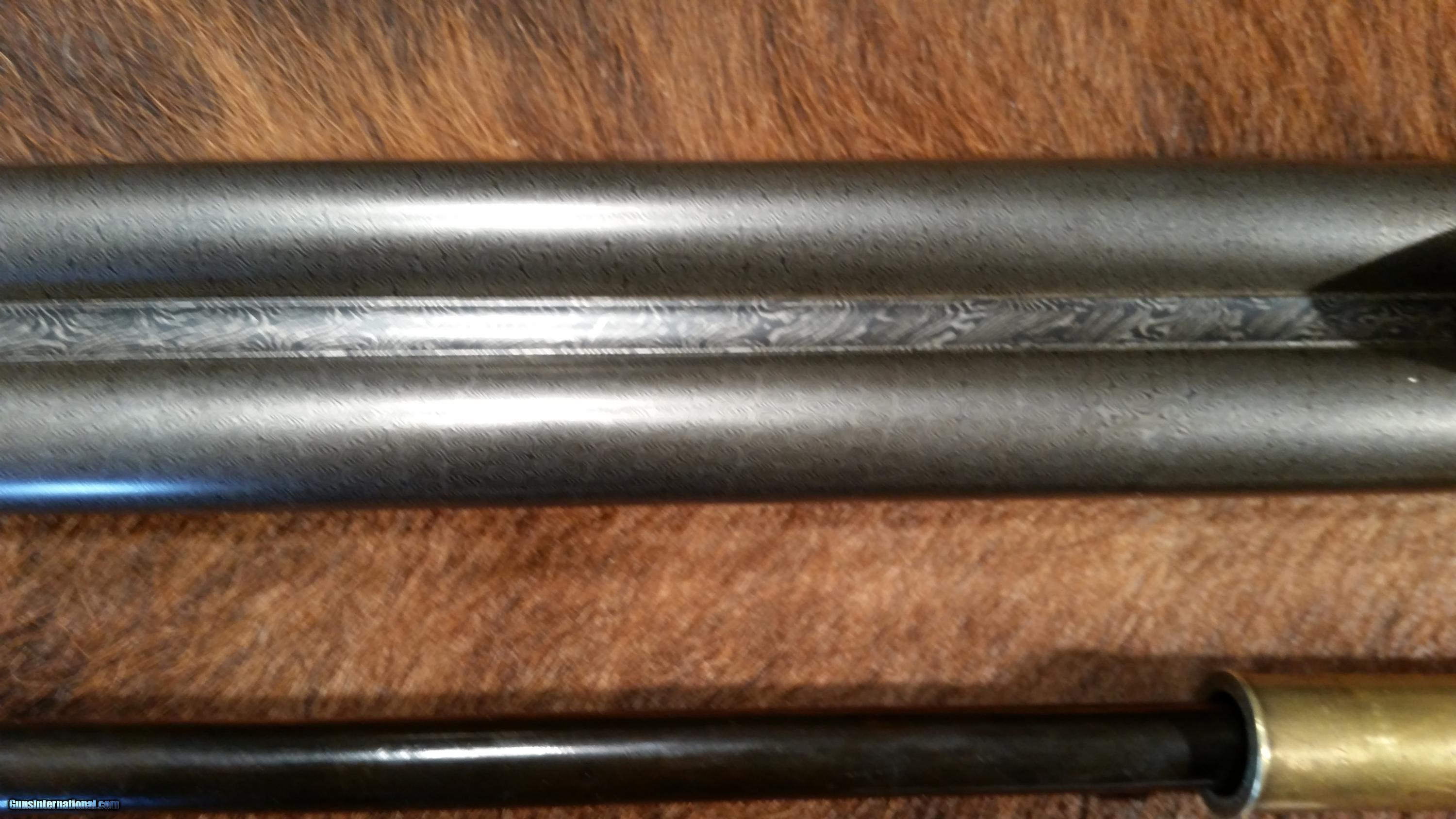 Description: L.c. Smith Quality 6 - 10 ga. 32” fine damascas bls., marked XXX. The Houchins book has a short section on these XXX guns, they are very rare. There are no records on these early Syracuse guns, but the engraving pattern on this gun is quality 6. I have showed this gun to many very serious collectors and all agree. Serial no. suggests ca. 1887. Bls have had a professional rebrown and hold 100% of that finish. No dents, or pitting outside. Some pitting inside. Frame is untouched from origin, so has a gray/brown patina. Opening lever slightly to the right. Wood is, I believe, circassion walnut of very high quality, and is original to the gun. There is a repair to the wood to the left of the top lever, the wood has been professionally refinished and recheckered . I think the refinished wood is outstanding. The buttplate is the extra thick type, and original to the gun. I’m including a period cleaning rod made for a 10 ga. Gun. It has a dummy 10 ga brass shell case that fits the chamber and allows for the the expanding brush head to expand as it leaves the chamber to clean the bore. I’ve never seen a rod like this. The rod is marked “Budds Pat. 1876”. Also included is a good quality wood and canvas case w/brass corners fitted for the 32” bls. This gun is a very early L.C. Smith Syracuse of the second highest quality made at the time.Only the quality 7 gun is a better grade. Very few of these guns exist today and even fewer in this condition. I’m sure this gun will be of interest to the most serious of collectors. SOLD Antique: Yes Manufacturer: LC Smith Model: Quality 6 Serial Number: 19212 Bore: 10 ga Chambers: 3 Condition: very goodvery good Metal Condition: very good Wood Condition: excellent as refinished Bore Condition: some pitting Barrels: 32 Barrel Type: damascus Action: sidelock Triggers: double Gauge Info: 10 Stock: circassion walnut Fore End: splinter Butt Pad: thick hard rubber original to the gun LOP: 14 1/8 |