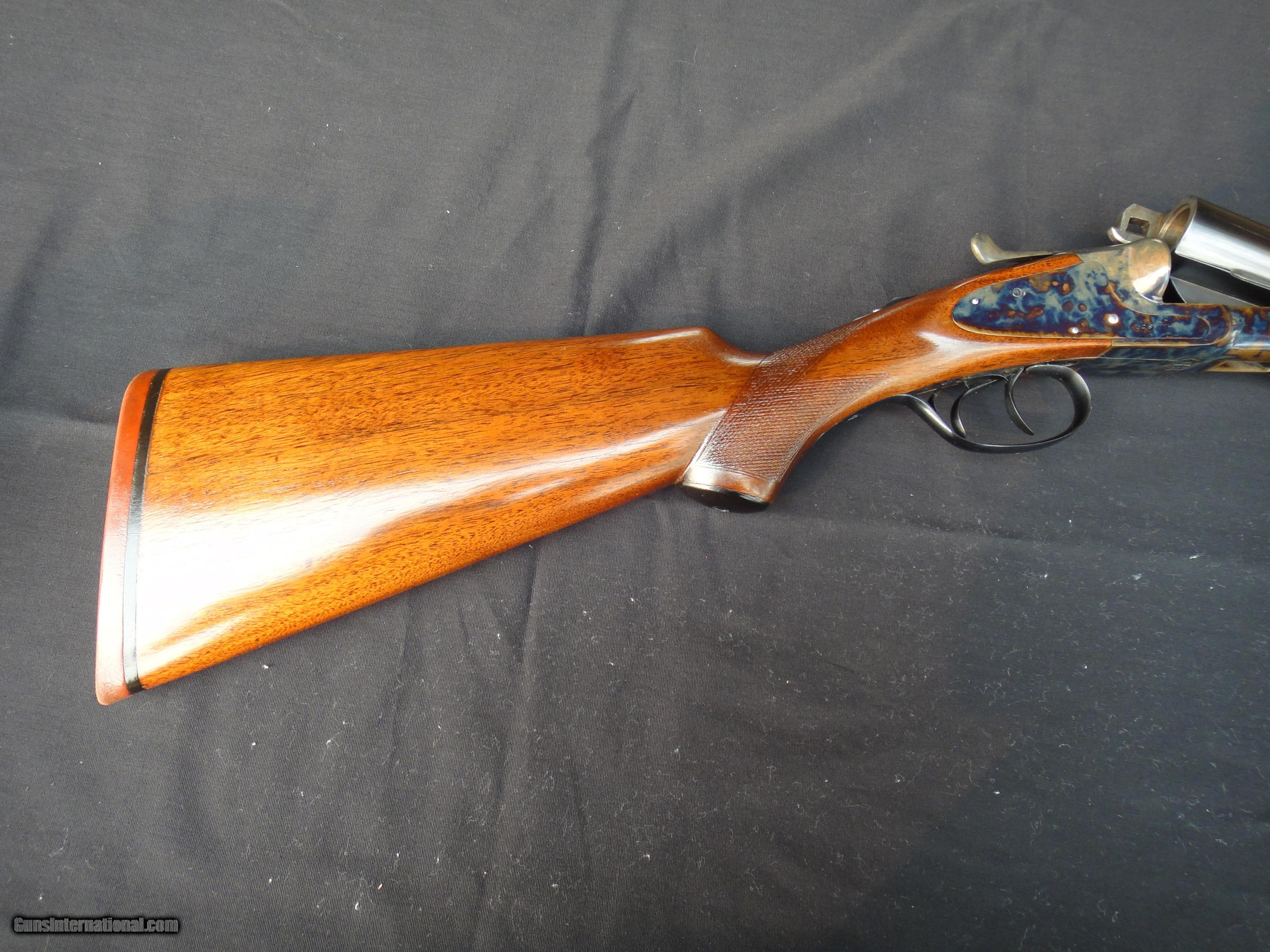 Description: LC SMITH 12 GAUGE EJECTOR FIELD GRADE, RESTORED TO LIKE NEW CONDITION WITH BONE CHARCOAL CASE COLORS, RUST BLUED BARRELS, AND HOT BLUED FURNITURE. 30" BARRELS WITH PERFECT RUST BLUED FINISH. SINGLE BRASS SIGHTING BEAD. 14 1/2" LOP OVER NEW THIN VINTAGE STYLE PAD. TRIGGER GUARD, TRIGGERS, SAFETY, ETC., HAND POLISHED TO A HIGH LUSTER AND HOT BLUED. M/F CHOKES, 1 3/4" DAC, 7 LBS, 9OZS. GUN LOCKS UP TIGHT LIKE NEW AND FUNCTIONS PERFECTLY WITH POWERFUL EJECTORS TOSSING EMPTY HULLS WELL BEHIND THE SHOOTER. 2 3/4" CHAMBERS AND MIRROR SHINY BORES WITH NO DAMAGE OR PITTING. THREE POSITION AUTOMATIC SAFETY FUNCTIONS FLAWLESSLY. MATCHING NUMBERS WITH ALL ORIGINAL LETTERING INTACT AND CRISP. SLIGHT DING OR MANUFACTURING ODDITY ON RIGHT CORNER OF BARREL EXTENSION. OTHER THAN THAT, THIS GUN COULD ALMOST PASS FOR FACTORY NEW. I WILL LET THE PHOTOS TELL THE REST OF THE STORY. IF YOU ARE LOOKING FOR A VINTAGE DOUBLE TO SHOOT AND HUNT THAT LOOKS ALMOST NEW, BUT WITHOUT THE RISK OF PUTTING WEAR ON A GUN COSTING THREE OR FOUR TIMES AS MUCH, THEN THIS MAY BE THE GUN FOR YOU. 3 DAY NON-FIRING, NON-DISASSEMBLY INSPECTION PERIOD RUNS FROM RECEIPT BY YOUR FFL. IDAHO RESIDENTS ADD 6% SALES TAX. YOU CAN VIEW MY RESTORATION SERVICES BY GOOGLING CLASSICCASECOLORSLLC. PLEASE FEEL FREE TO ASK ANY QUESTIONS YOU MAY HAVE. $1,200 PLUS $45 INSURED GROUND SHIPPING TO CONUS. SOLD Curio/Relic: Yes |