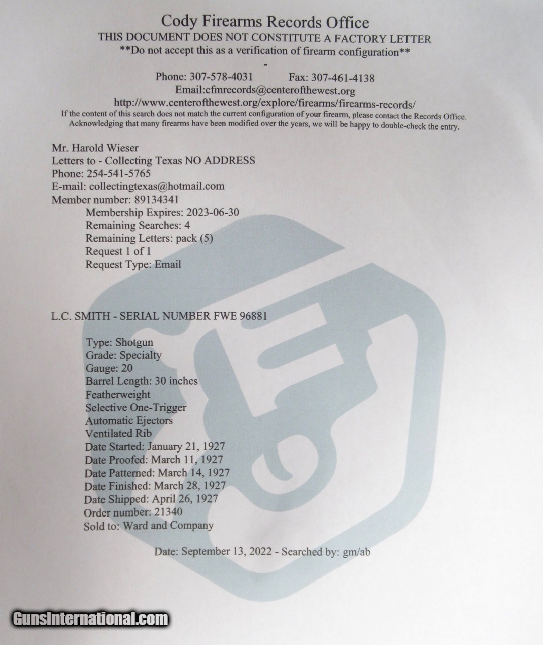 please mention that you saw their listing on GunsInternational.com