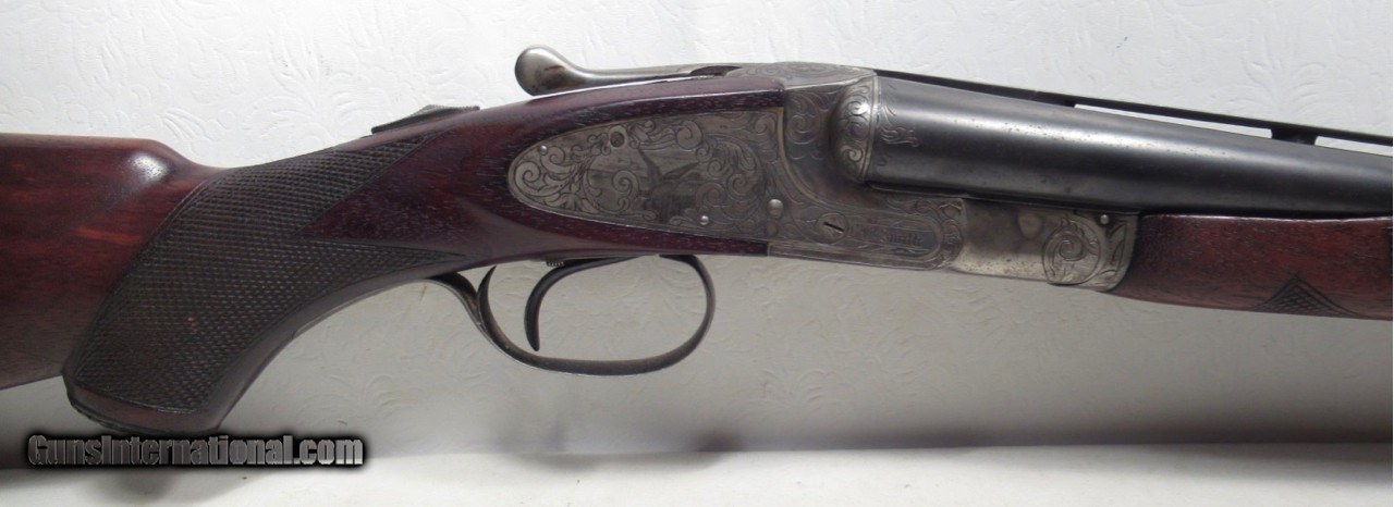 Description: L.C. Smith Double Barrel Shotgun; Serial No. FEW 96881; Cody Firearms Record (Letter on Order) Lists All Features; Scarce 30” Barrels; Perfect Mechanics and Bores; Strong Ejectors; Scarce Vent Rib; Choked Full & Improved Cylinder; 14 ¼” Pull to Jostam Butt Pad which is not original to gun; DAH 2 ¼”; DAC 1 ¼”; Lots of Metal Finish Present (See Photos); Nice Sharp Engraving; Beaver Tail Fore-end, probably not original to gun; Nice Scarce 95 Year-Old L.C. Double Barrel Shotgun; See All Photos for Condition; No Texts; Call (254)541-5765 or Email Only; PERSONAL PROPERTY of Harold Wieser; Price: $5,975 + $75 S&H Via USPS PRIORITY MAIL; Payment Address: Harold Wieser - 1466 U.S. Hwy 77 - Rosebud, TX 76570; SEND PAYMENTS VIA USPS PRIORITY MAIL; BEWARE of SCAMS!!! – DO NOT SEND MONEY or CORRESPONDENTS ELECTRONICALLY UNLESS YOU HAVE SPOKEN to HAROLD WIESER FIRST! 254-541-5765 SOLD Manufacturer: L.C. Smith Model: Specialty Grade Double Serial Number: FEW 96881 |