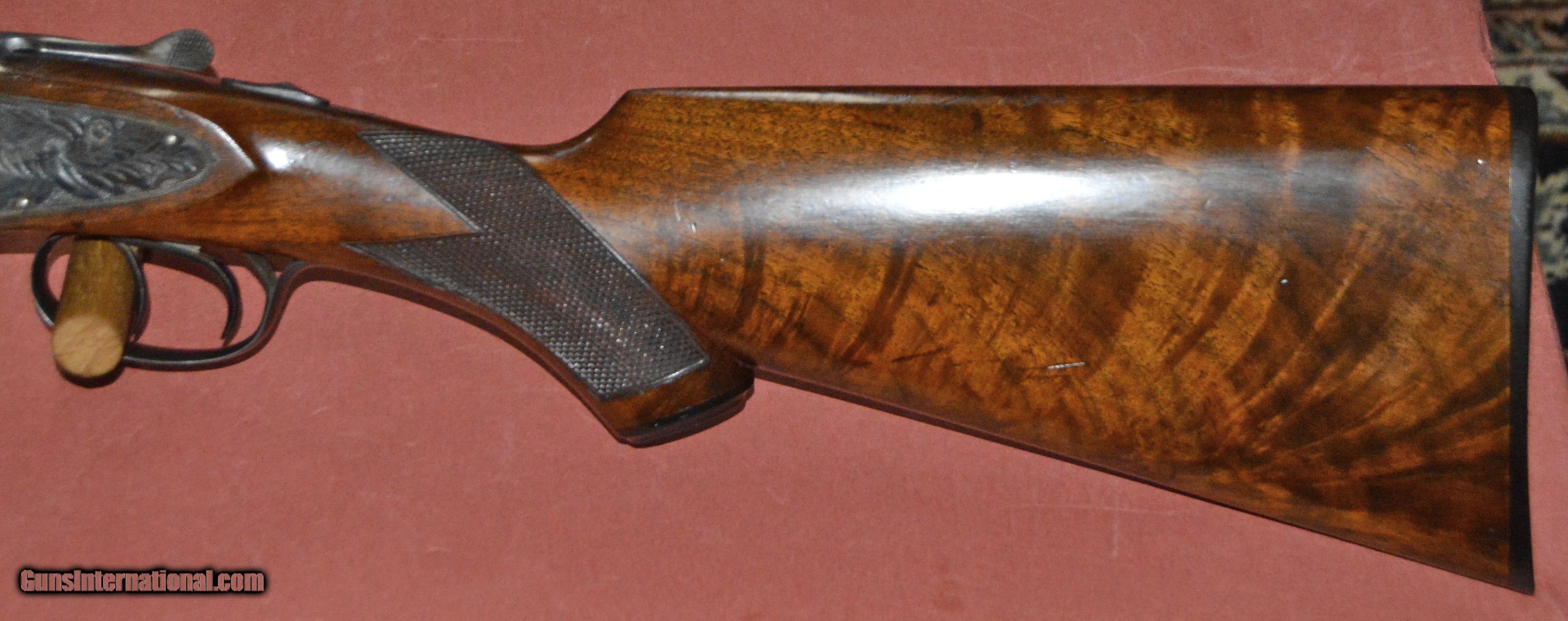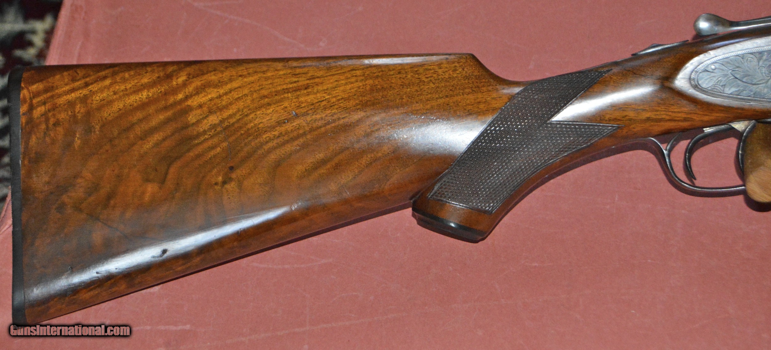 Description: Extremely rare 10 gauge L.C,Smith Ideal Grade with beautiful damascus barrels.Built in 1919,this gun is in true collector condition.It retains 100% of the original case colors and 100% of the original damascus pattern.The 30" barrels have mint bores and are excellent wall thickness.The chokes are full and full and the chambers are 3".It has double triggers,ejectors,and a pistol grip stock with the original buttplate.The weight is 9-0.The stock retains the original finish and has one small repaired hairline crack on the right side of the lock that is not noticeable.According to the factory letter,this is one of only 4 Ideal damascus 10s built.This is a rare original Smith in very high condition.It would also be a really fun gun to shoot in a vintager clays event.It would also make a great turkey gun.C&R eligible. SOLD Curio/Relic: Yes Manufacturer: L.C.Smith Model: Ideal Serial Number: 4725RE Chambers: 3 Ejectors: yes Metal Condition: mint Wood Condition: excellent Bore Condition: mint Barrel Type: damascus Action: double barrel Triggers: Double Gauge Info: 10ga. Manufacture Date: 1919 Choke Left: full Choke Right: full Minimum Wall Thickness Left: ,038" at muzzle Minimum Wall Thickness Right: ,038" at muzzle |