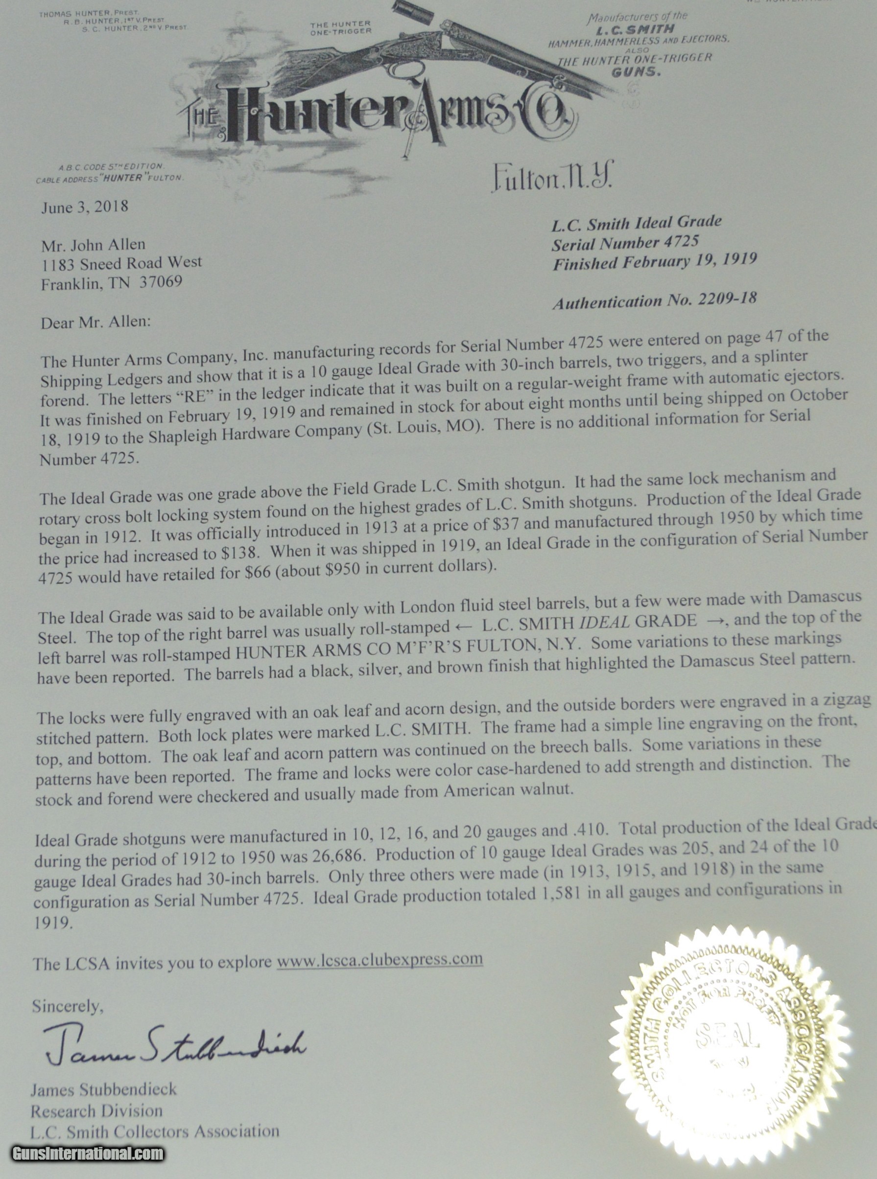 Rare 10ga.L.C.Smith Ideal Grade Mint Condition