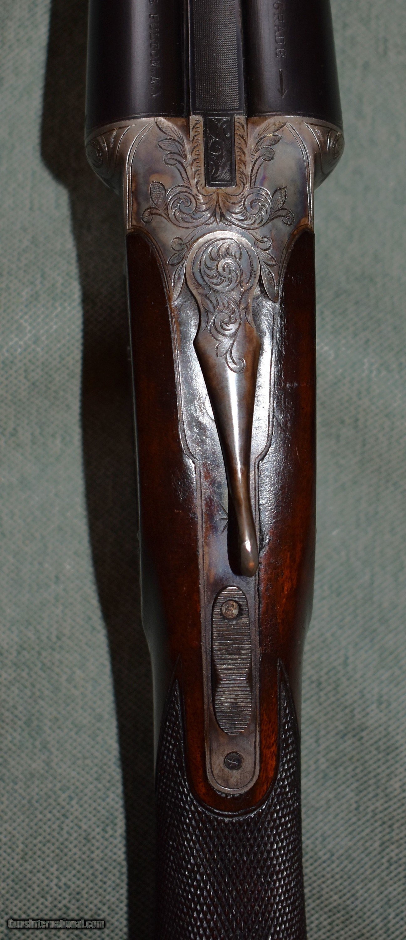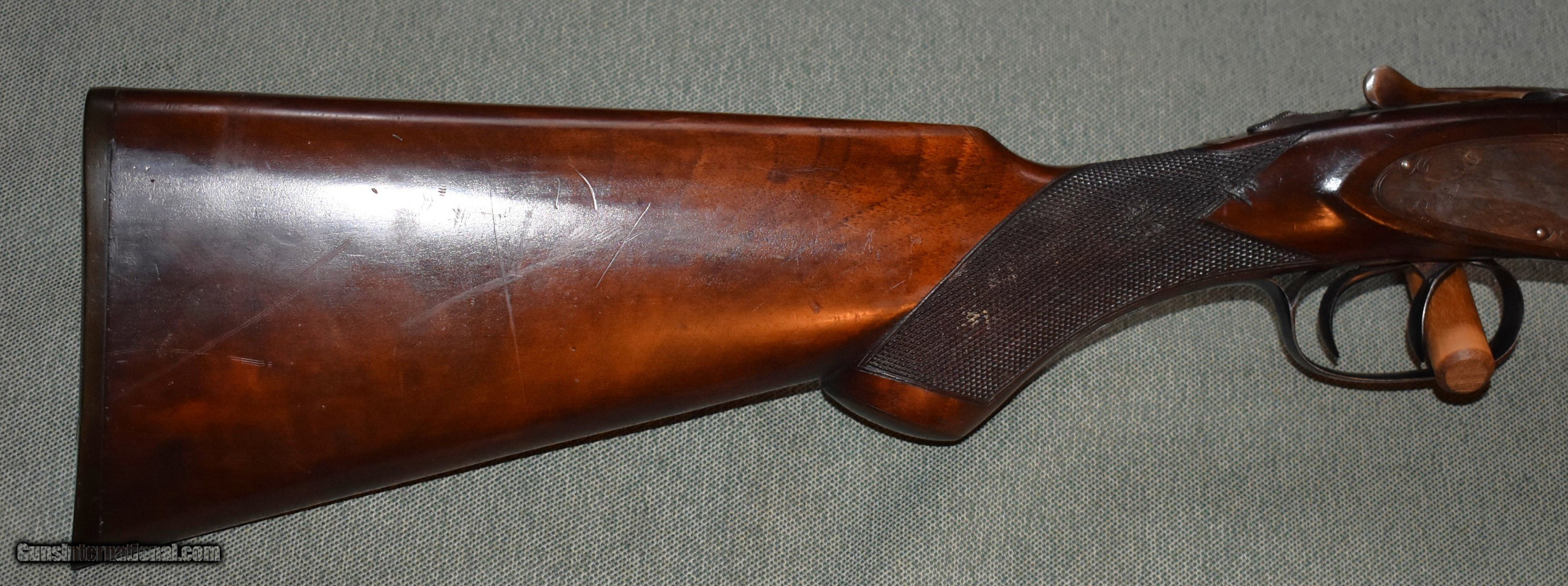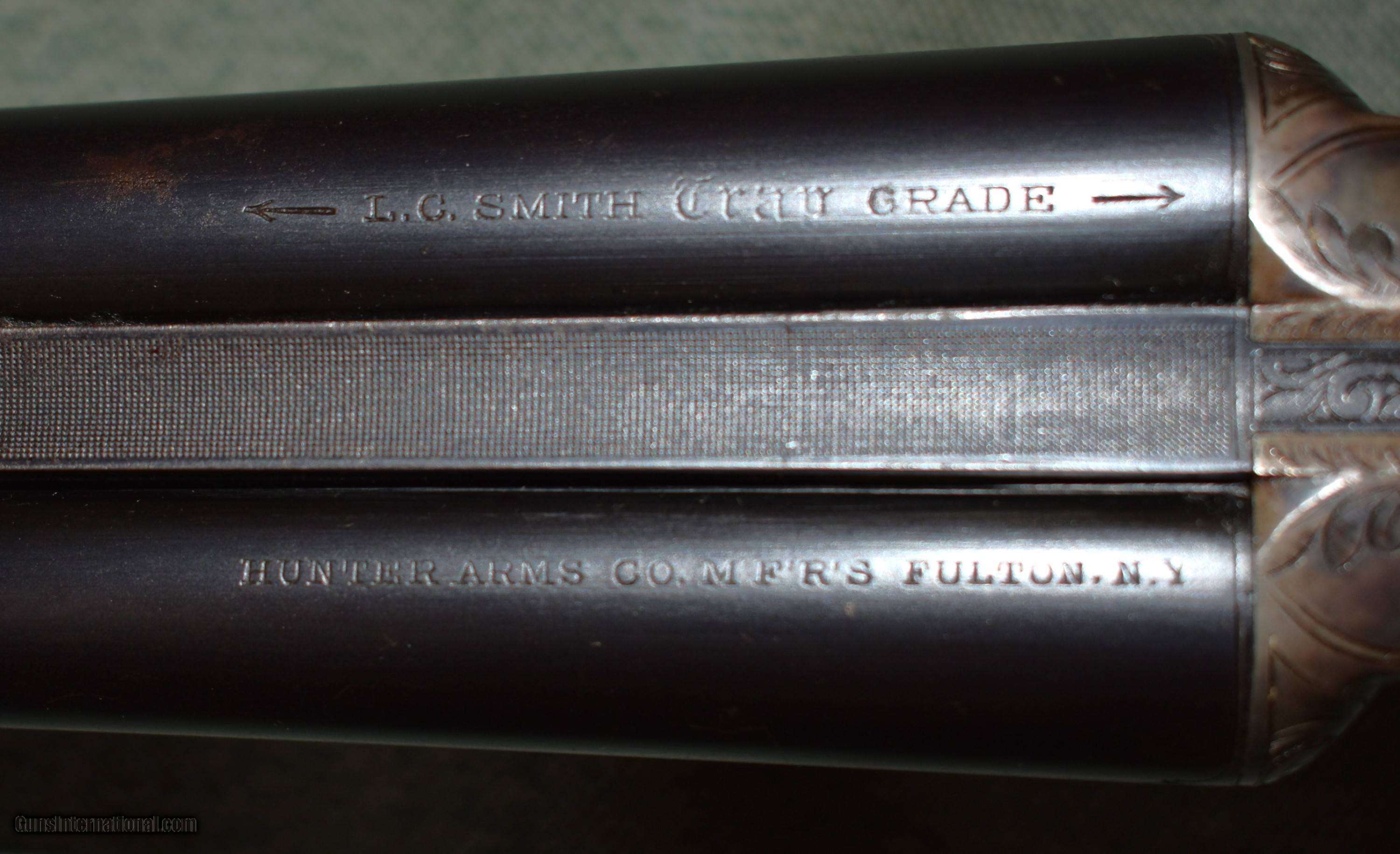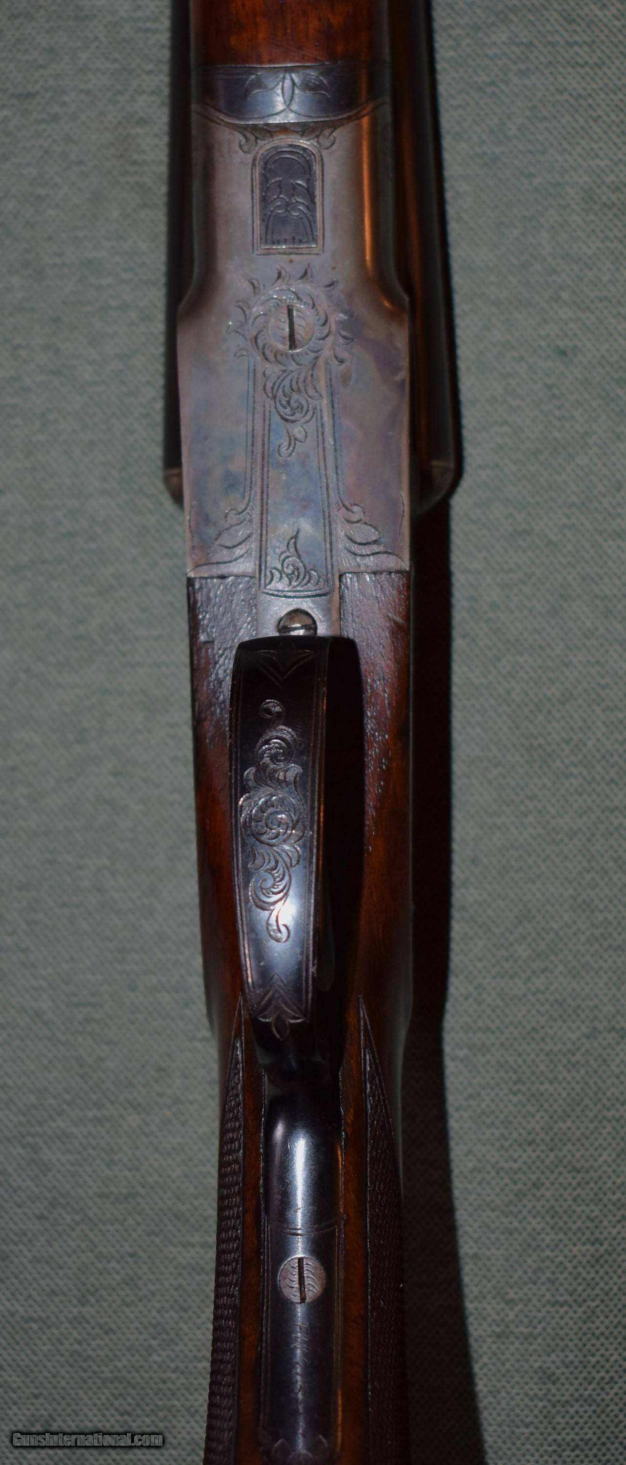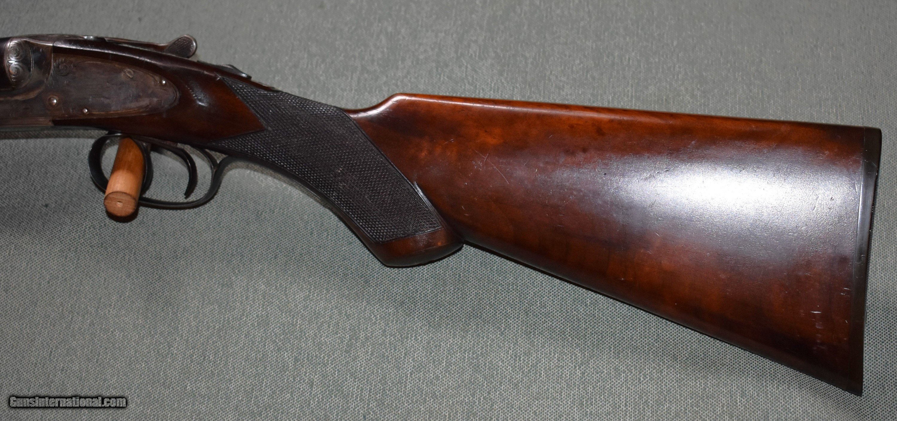 Description: L.C.Smith 20 gauge trap grade built in 1919. This gun is in excellent original condition retaining 80% of the original case colors,and 95% of the original barrel blue and wood finish. The barrels are 26"Armor steel with mint bores and are choked perfectly for upland shooting, skeet and modified. The gun is built on a featherweight frame and weighs just 5-12. The barrels are on face and lock up tightly with the top lever to the right. The engraving of trap shooters on the firing line is sharp and crisp.The screws are all clean and unmarred. This is a very unusual Smith in fine condition and a scarce configuration. A great gun for quail,grouse,or woodcock. C&R eligible. SOLD Curio/Relic: Yes Shotgun Gauge: 20 Gauge Manufacturer: L.C.Smith Hunter Arms Model: Trap Grade Serial Number: FW7152 Barrel Length: 26 Chambers: 23/4 Ejectors: extractors Condition: excellent Metal Condition: excellent Wood Condition: excellent Bore Condition: mint Barrel Type: Armor Steel Action: Double Barrel Triggers: Double Butt Pad: Factory Buttplate Weight: 5=12 Manufacture Date: 1919 Choke Left: Modified (.023") Choke Right: Skeet (.003") Engraving: Standard Trap Grade |
