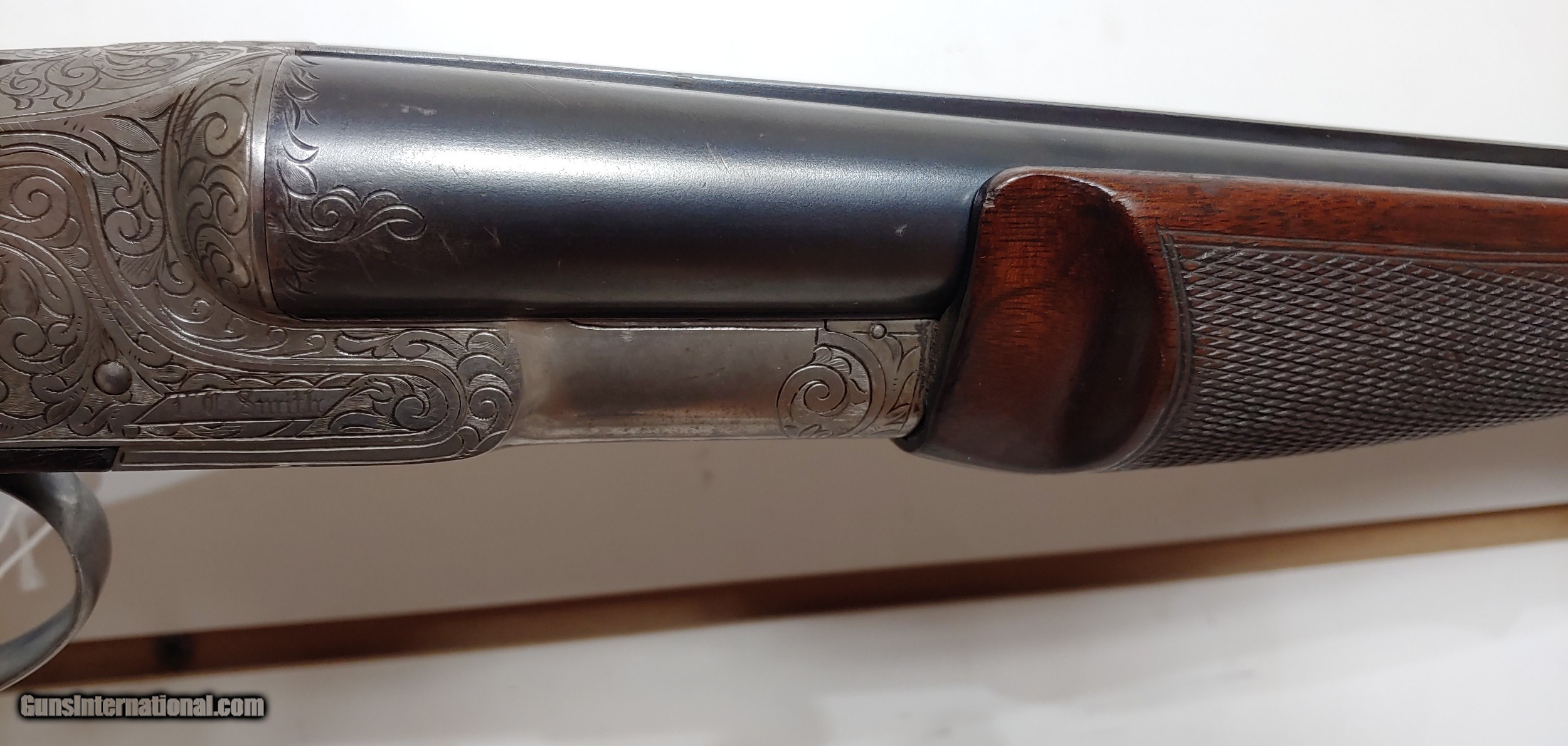 Description: Used LC SMITH Specialty Grade 12 Gauge Trap 30 inch barrel Full and Full Chokes Stock re-finished comb has been cut drop of comb and heel 1 1/2 " and 2 1/4" Very good condition Buyer Pays Shipping date looks like 1921 according to (://doublegunshop/dgsnos5.htm) more info from (://lcsca.clubexpress/content.aspx?page_id=22&club_id=43784&module_id=246438) Specialty (1912-1950) The 1913 catalog states "A fine gun in all details, built to last a lifetime. Handsomely engraved . . . with fine lines of the best weapon and at a most moderate price. A thoroughly sound, serviceable gun, well fitted. Every attention has been paid to produce in this our Specialty grade a well-balanced and good shooting-gun and we have every confidence in recommending it to sportsmen who are desirous of having a high quality gun and do not feel justified in purchasing our highest." Base price in 1913 was $64. The Hunter One-Trigger added $25 and ejectors added $11. The base price was $131 in 1945. As with the lower grades, it was available in 10, 12, 16, and 20 gauges with the 410 being available later. Barrels were Nitro Steel, or Damascus Steel could be ordered. Common barrel lengths were 26, 28, 30, and 32 inches and were "bored any way you choose." The nicely figured walnut stocks were available in full pistol, half pistol, and straight grips. L.C. SMITH was engraved on the lock plates. A pair of quail was engraved on the left lock plate, and a waterfowl scene was engraved on the right. The serial number was engraved on the trigger guard extension. The regular rib had a precious metal bar inlaid at the junction of the rib and rib extension. This bar was not present on guns with ventilated ribs or raised ribs. The left barrel was roll-stamped HUNTER ARMS CO. INC. M'F'R'S FULTON, N.Y., U.S.A. The right barrel was roll-stamped L.C. SMITH SPECIALTY GRADE. Most of the Specialty Grade guns were made between 1912 and 1945, but a few (148) were made by the LC. Smith Gun Company between 1945 and 1950. The total production was 6,911 (19 10-gauge, 5,032 12-gauge, 720 16-gauge, 1,100 20-gauge, and 40 .410). Automatic ejectors were placed on 6,012 shotguns. SOLD Serial Number: sr449.4 |