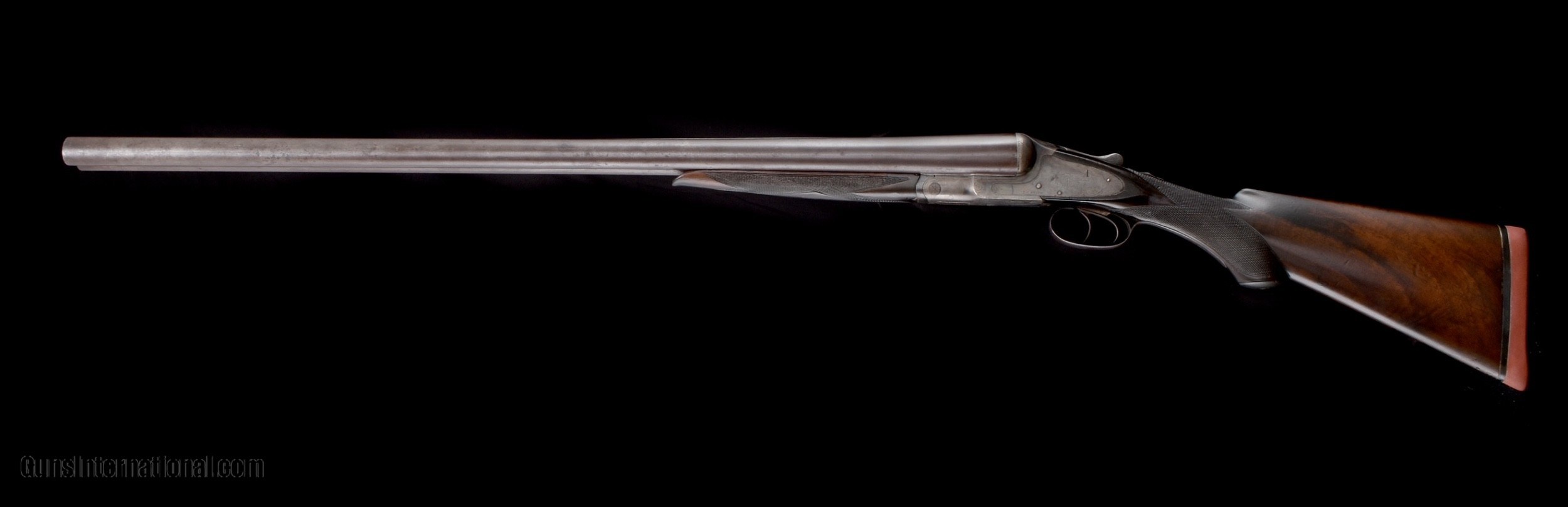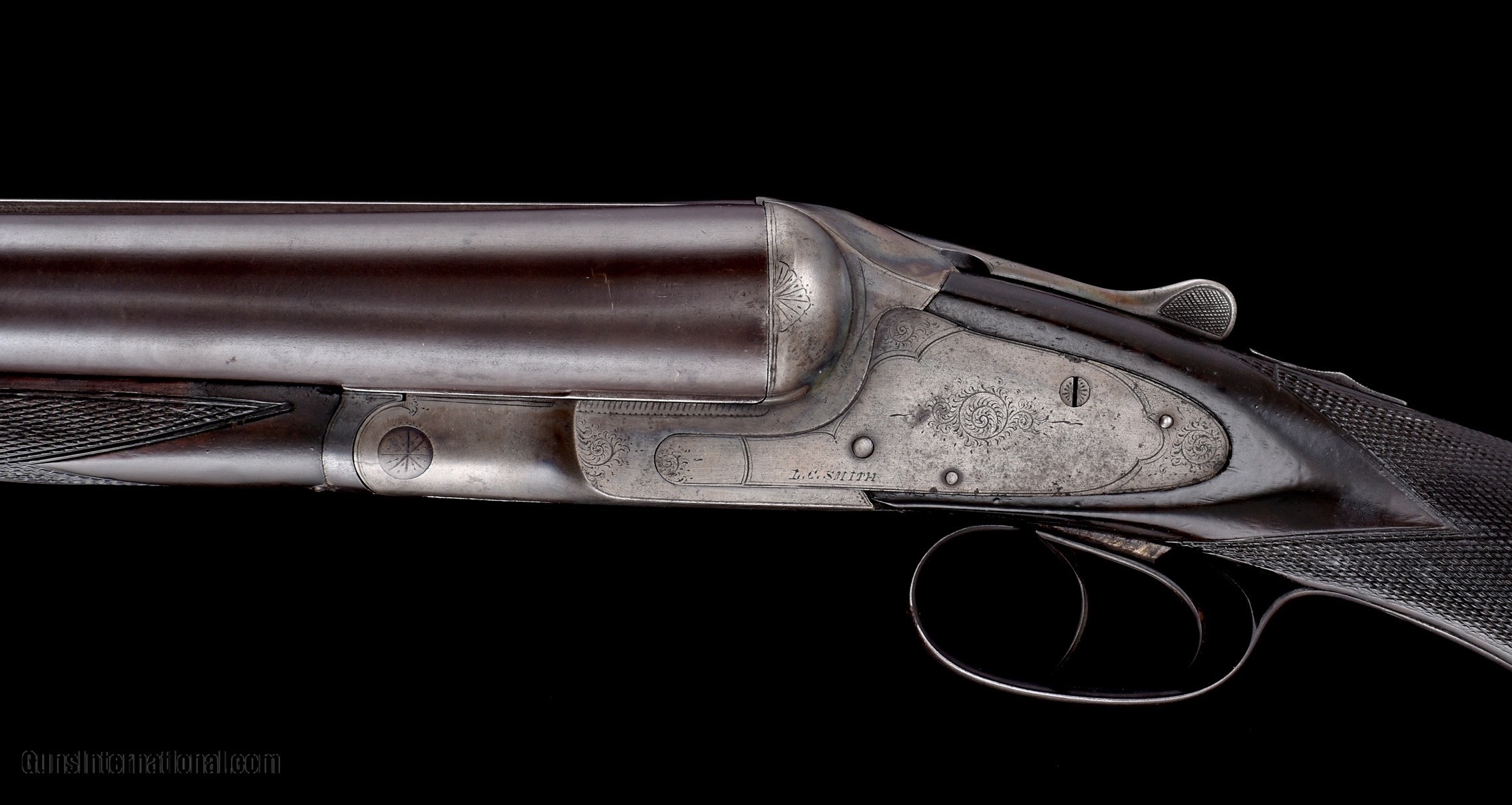 Description: Rare L.C. Smith Grade 2 8ga! These guns are almost never offered for sale because they are rare and hard to find. These rarely change hands! This gun made with 32" Damascuc barrels, splinter forend, double triggers, extractors. The casehardened frame is lightly scroll engraved in early Grade 2 pattern. Capped pistol grip buttstock with two point pattern checkering and the stock terminates with a modern silver's type pad. Overall the gun remains in nice condition. The barrels have toned brown with some of the original pattern remaining. The action retains about 30% original case color as seen in the photos. The stocks are very good with some minor repairs evident and checkering renewed long ago. The pad is a professionally fit modern replacement. Bores are very good with some orange peel in the right, left being a bit brighter. Mechanics are very good. Gun is tight when assembled. This is really a clean example! This fine L.C. Smith 8ga is priced at $11,900 plus shipping to your FFL. Please dont hesitate to contact me with any questions or reasonable offers at (704) 280-2382 or via PM on this site. SOLD Curio/Relic: Yes Shotgun Gauge: 8 Gauge Manufacturer: L.C. Smith Model: Grade 2 Serial Number: 41727 Barrel Length: 32 Ejectors: Extractors Condition: Very good Metal Condition: Very good Wood Condition: Very good Bore Condition: Very good Barrel Type: Damascus Triggers: Double Triggers Stock Comb: 1-7/8 Stock Heel: 3 Fore End: Splinter Butt Pad: Silvers Type LOP: 14 Weight: 12lbs 9oz Choke Left: Mod Choke Right: Mod |