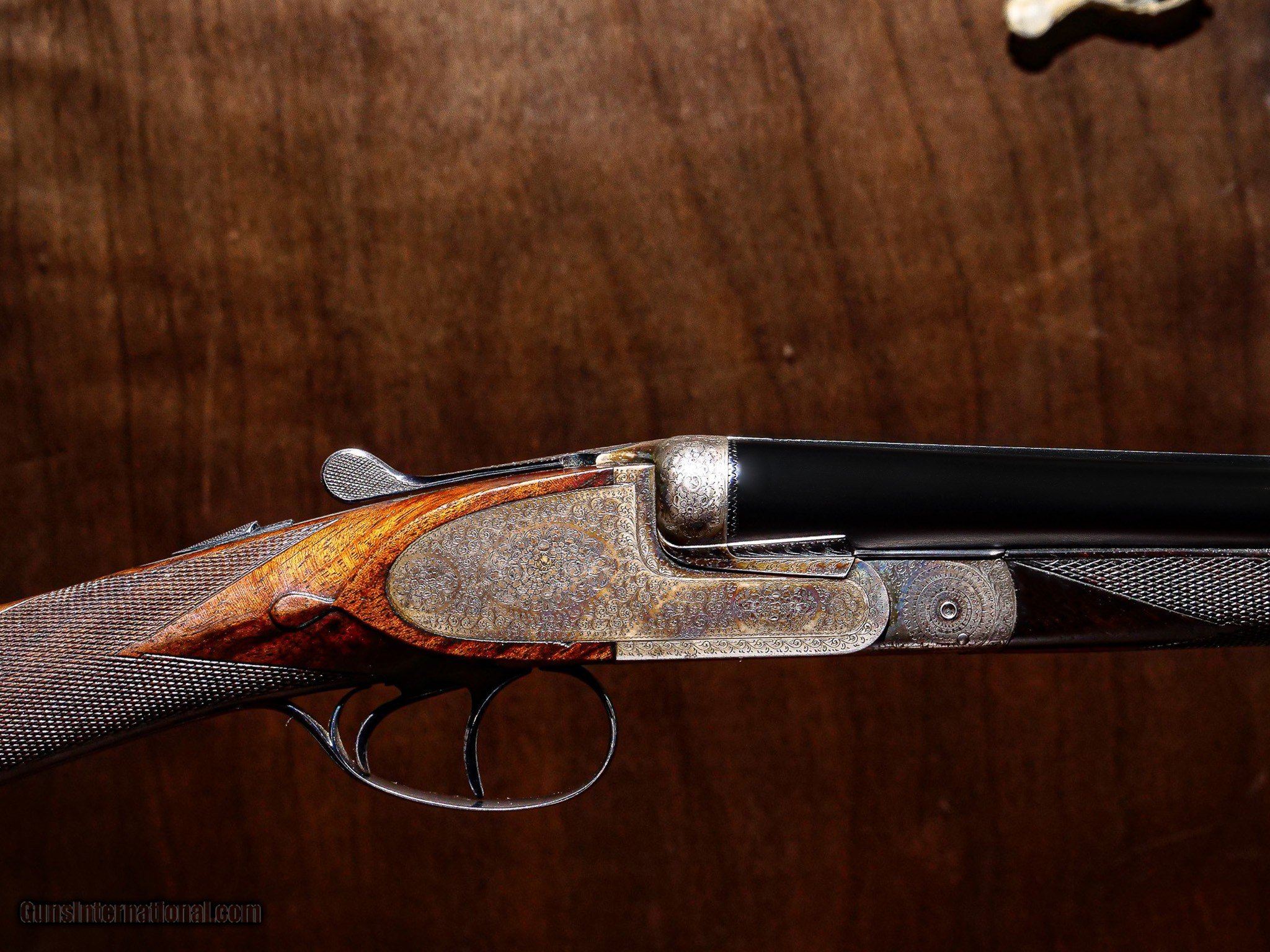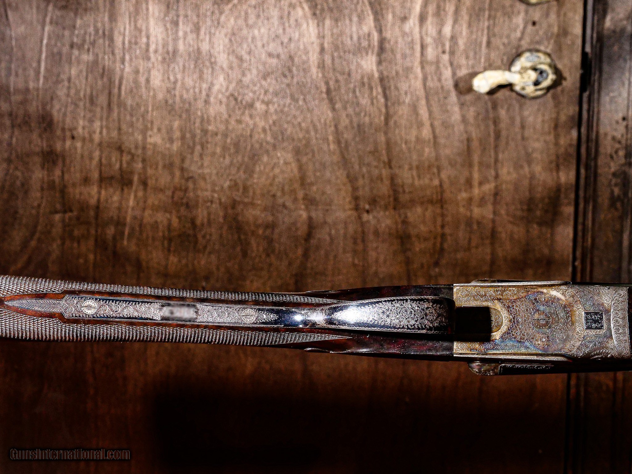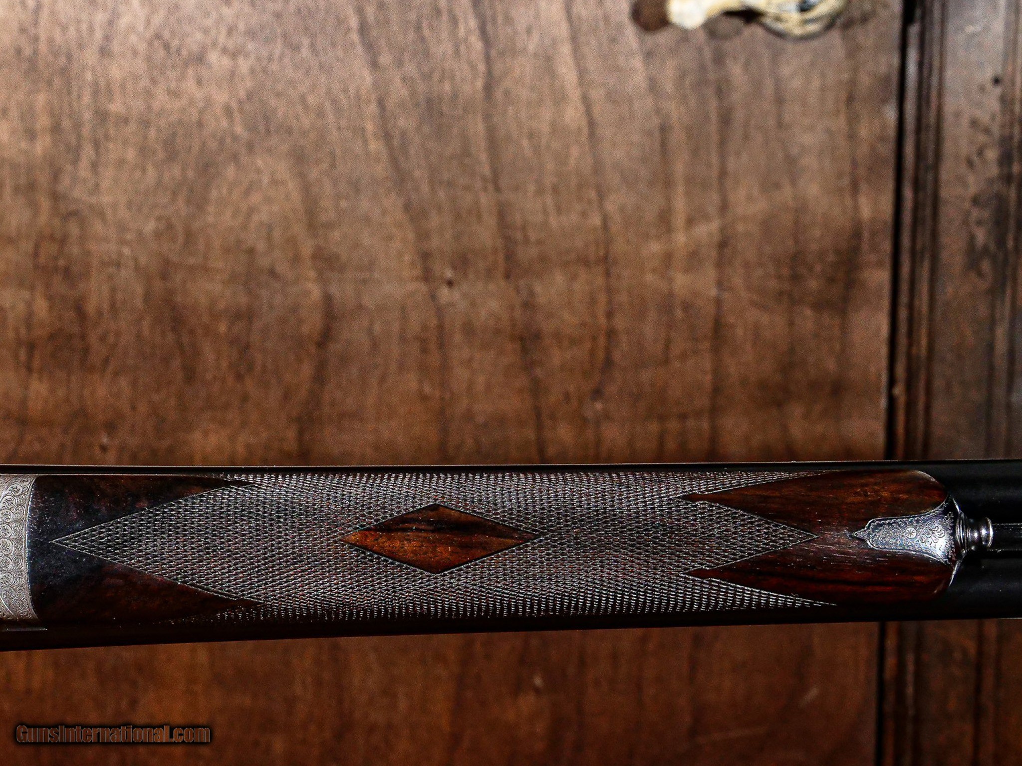 Description: Aug. Lebeau - RARE Miniature Frame Gun, SxS, Belgian Proofed, 32ga. 28" Barrels. Rare 32-gauge miniature frame gun. Double trigger, straight stock, checkered butt. 99% original barrel blue, case color, and wood finish with minor handling marks. Sculptured frame. Belgian proofed. Just a wonderful, extremely high-grade gun that is 100% original. With the most beautiful rose and scroll engraving. With all its prewar finishes intact. Inv: 88866 4 lbs. 14 oz. 14" x 1 ½" x 2 ¼" $12,500.00 The largest, most diverse, high-grade shotgun and firearms inventory in history. There is no one even close and a service department to back up everything we sell with our unparalelled warranty to support our customers exclusively. If someone tells you they have a larger inventory, just look for yourself. SOLD |