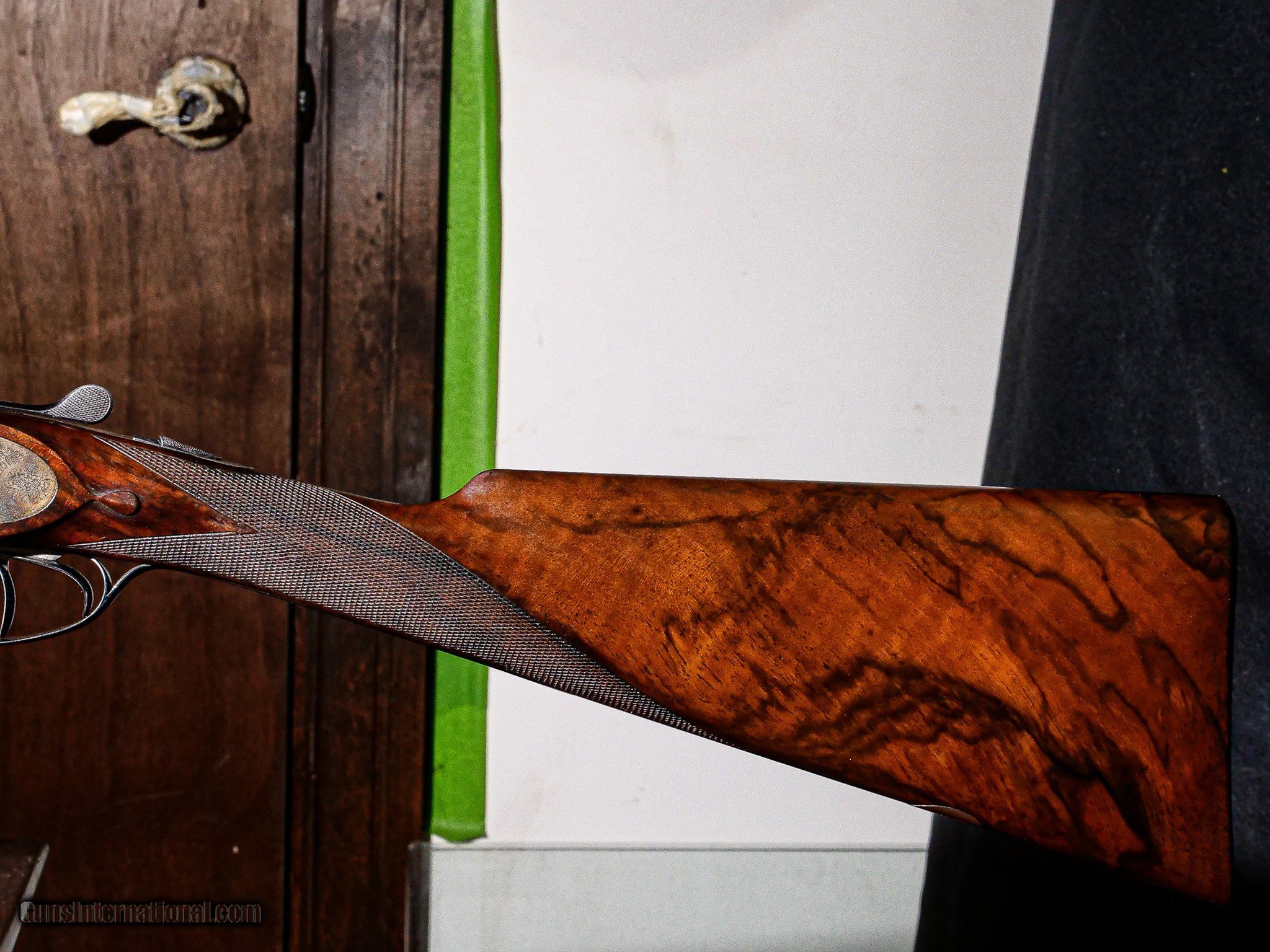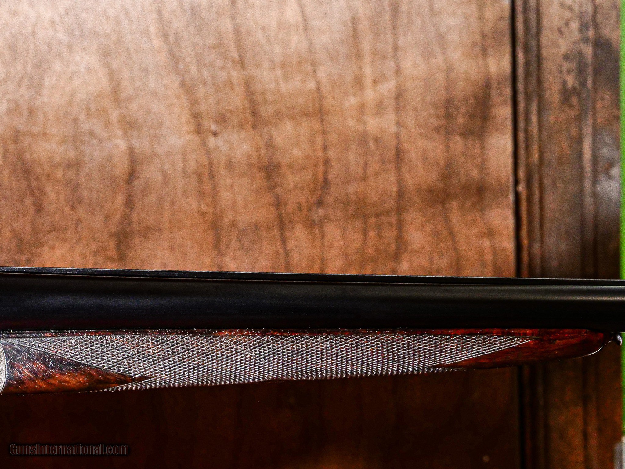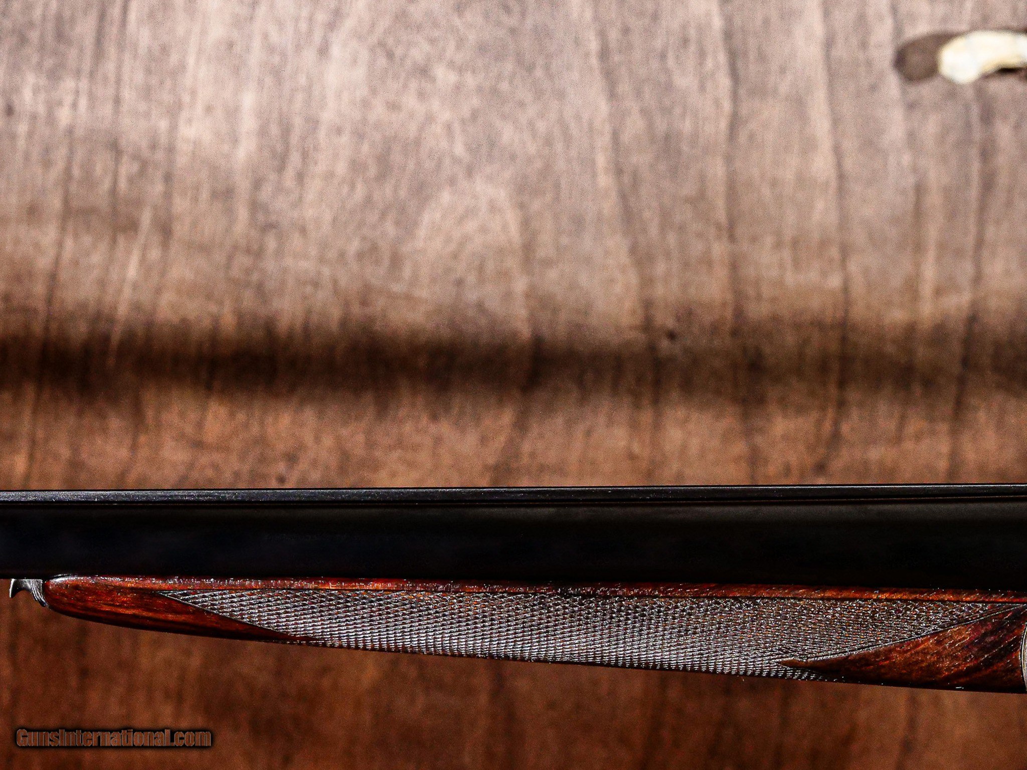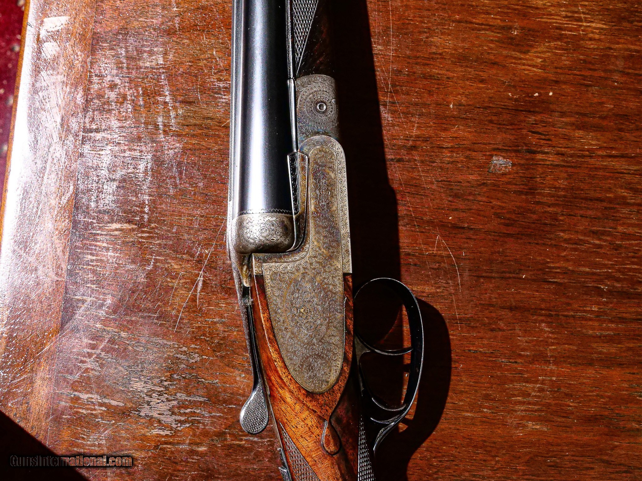 Description: Aug. Lebeau - RARE Miniature Frame Gun, SxS, Belgian Proofed, 32ga. 28" Barrels. Rare 32-gauge miniature frame gun. Double trigger, straight stock, checkered butt. 99% original barrel blue, case color, and wood finish with minor handling marks. Sculptured frame. Belgian proofed. Just a wonderful, extremely high-grade gun that is 100% original. With the most beautiful rose and scroll engraving. With all its prewar finishes intact. Inv: 88866 4 lbs. 14 oz. 14" x 1 ½" x 2 ¼" $12,500.00 The largest, most diverse, high-grade shotgun and firearms inventory in history. There is no one even close and a service department to back up everything we sell with our unparalelled warranty to support our customers exclusively. If someone tells you they have a larger inventory, just look for yourself. SOLD |