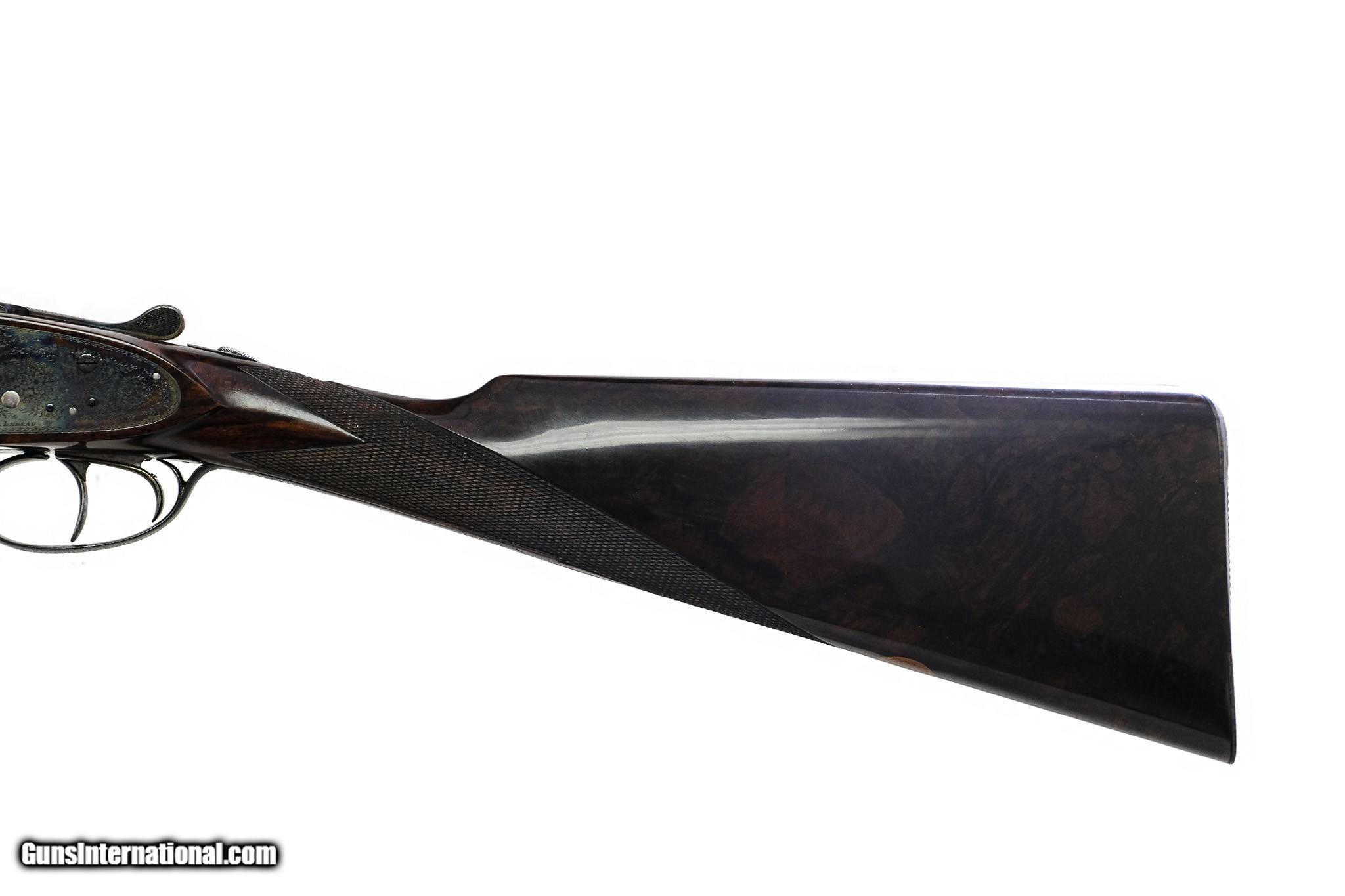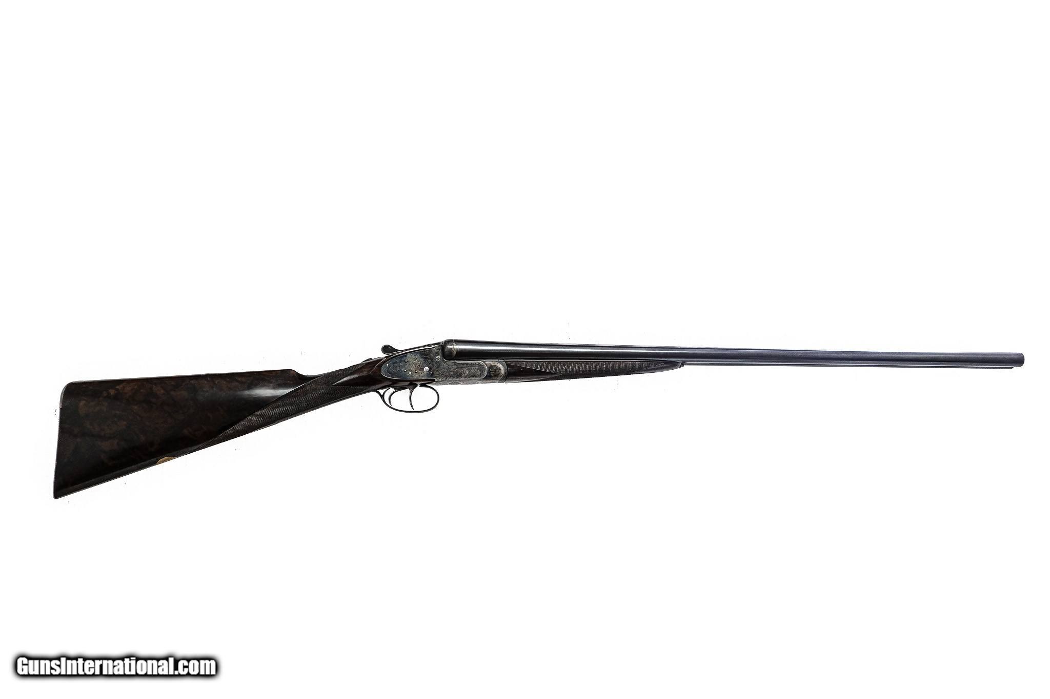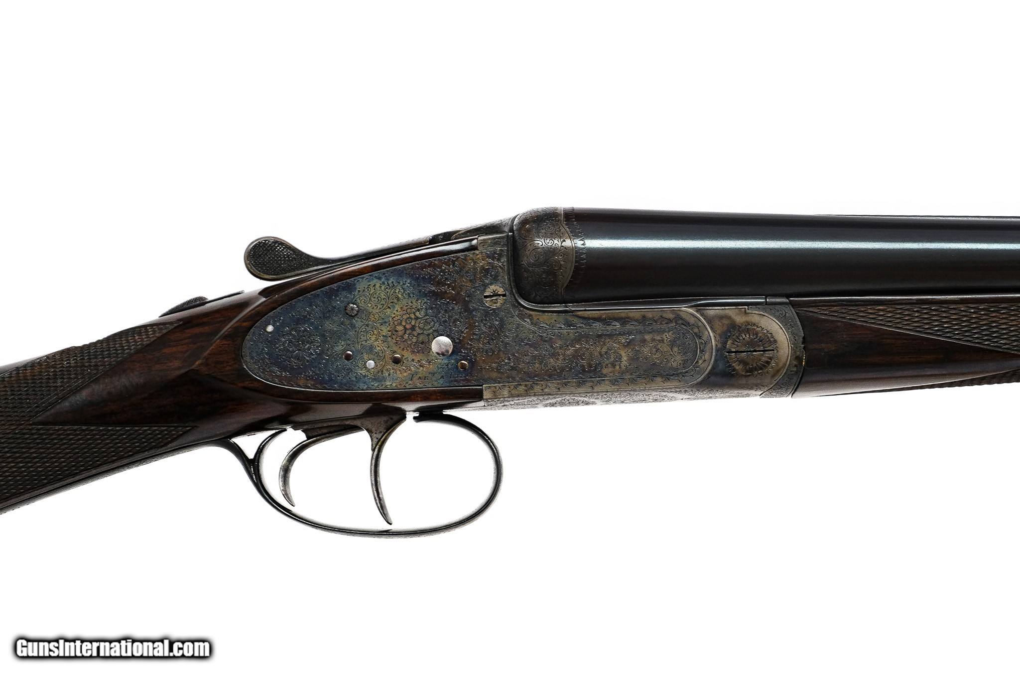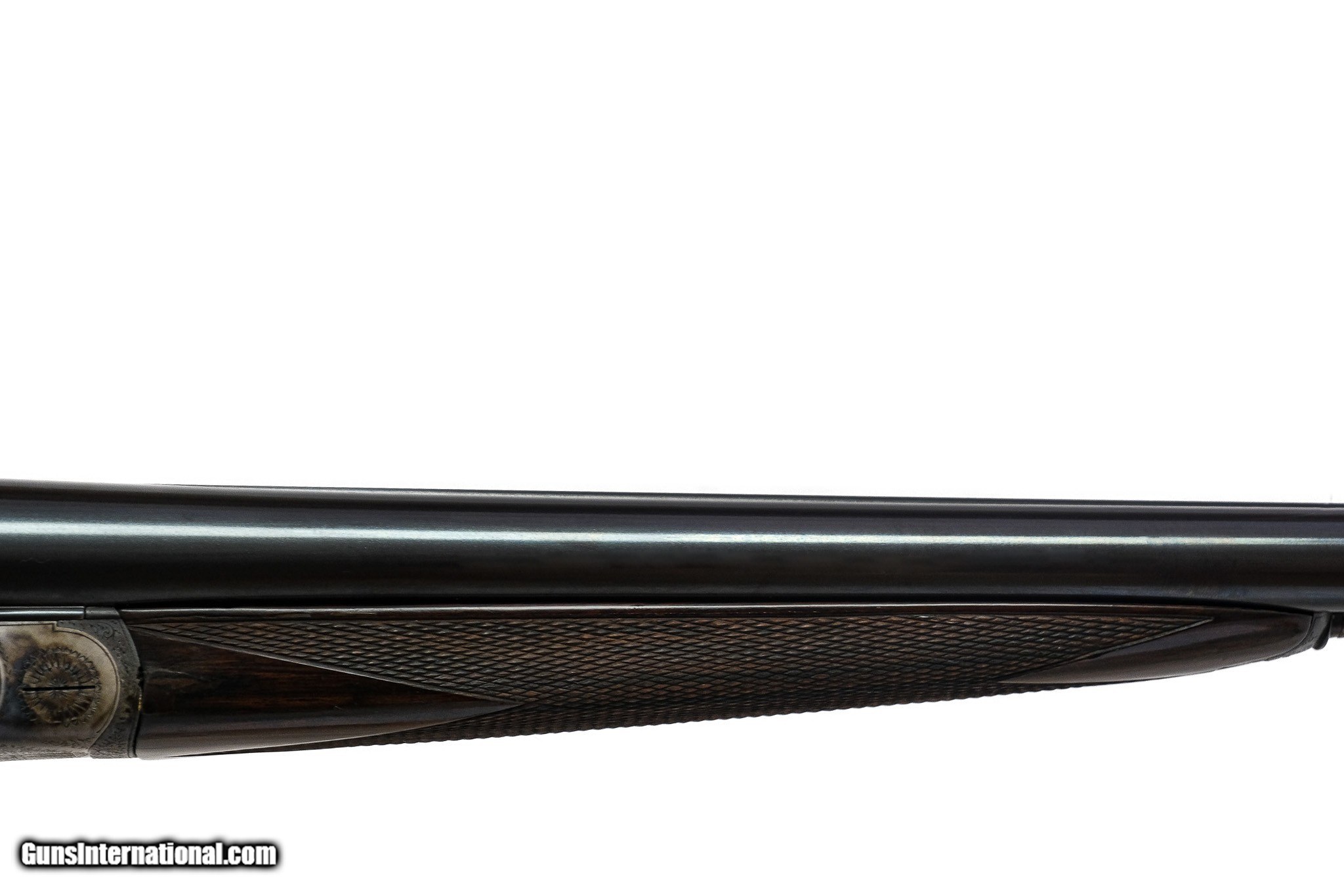 Description: August Lebeau - SxS, 20ga. 28" Chopper Lump Barrels Choked IC/IC. Best quality chopper lump barrels, splinter forend, double trigger, automatic ejector, hidden third fastener, side clips, checkered butt, the very highest quality English rose and Scroll engraved, the highest quality marble cake Turkish walnut, with heel and toe plates, this magnificent highest quality gun made by the company retains 98% Case color and wood finish, shows no wear! Even the triggers have all the case color on them , perfect screws, all the internal parts of this gun are gold plated. A 20ga Lebeau is very seldom found and the cost of this gun new exceeds $100,000, in a very high-quality English leather case. Inv: 76690 6 lbs. 2 oz. 14 5/8" x 1 ½" x 2 ¼" $29,995.00 SOLD |