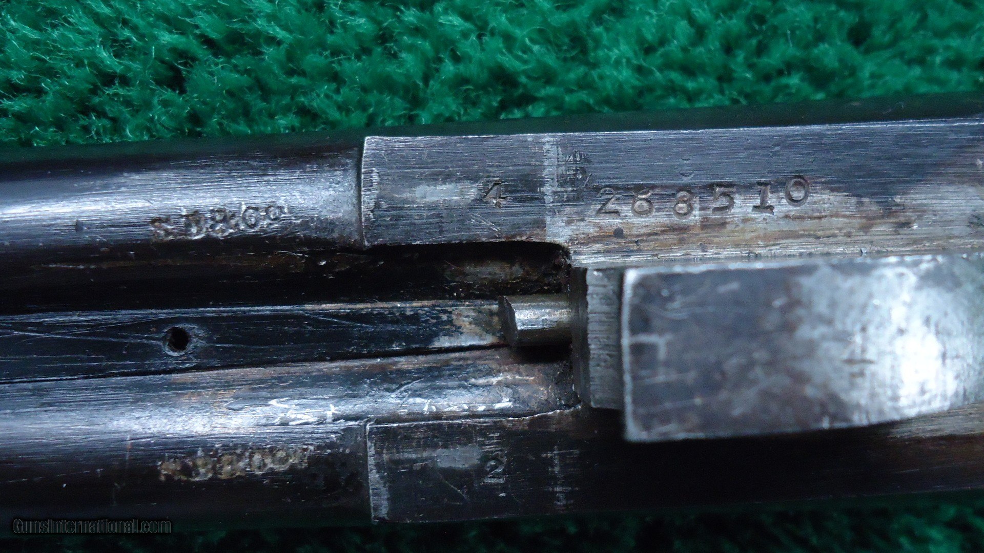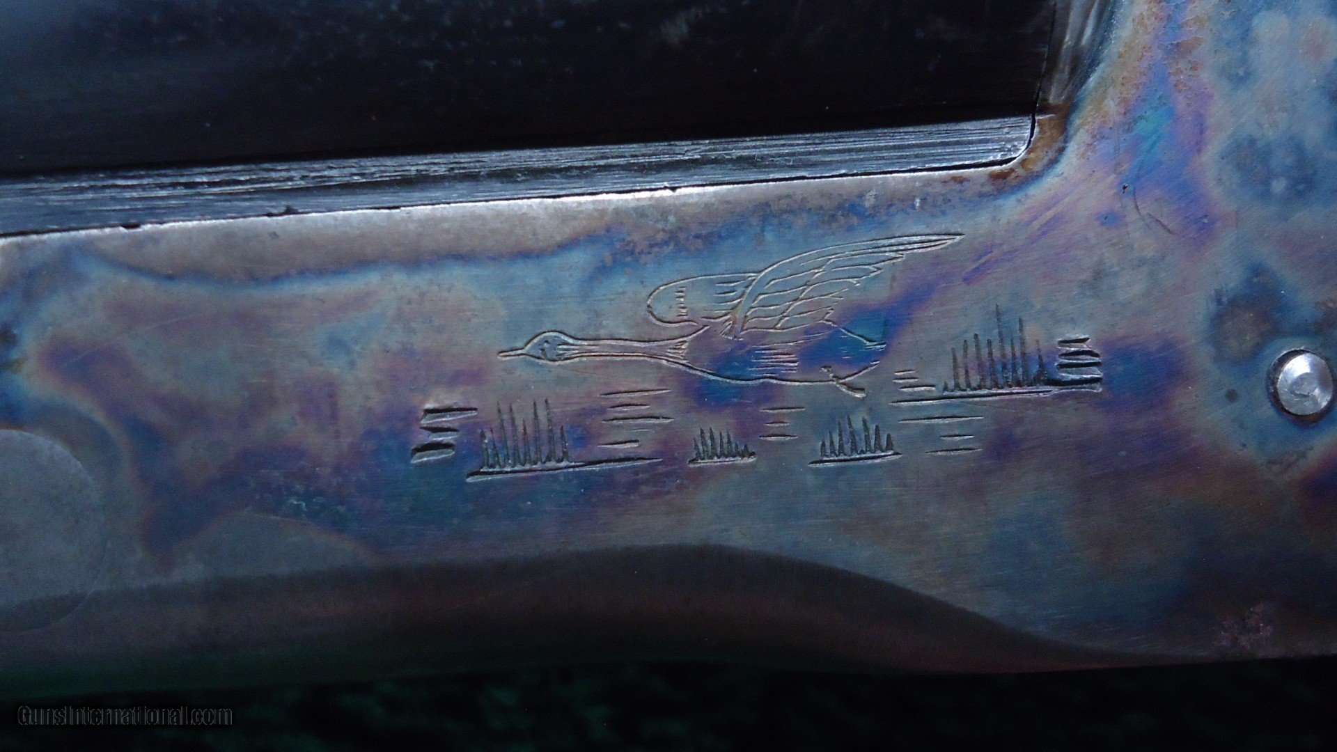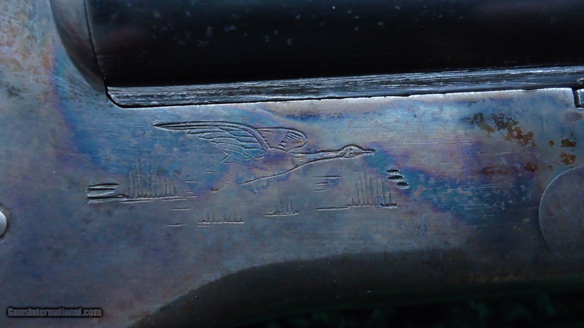 Description: The 26 inch barrels are choked Modified and Full with 2-3/4 inch chambers. Bright shiny bores.The barrels and trigger guard have a good amount of blue remaining with some thinning.The right barrel is marked “LEFEVER NITRO SPECIAL” the left “LEFEVER ARMS CO., ITHACA. N.Y.” Case colored frame shows some nice color and a goose in flight on each side. Checkered walnut pistolgrip stock is in good condition with a hard rubber buttplate. Lock-up is tight. Double triggers work properly. DAC - 1-3/4. DAH - 3. LOP - 13-1/4. Weight is 5 pounds 13.8 ounces. These were made from 1921-1948. This is a nice little .410 bore with a lot of original finish left. Leroy Merz Antique Firearms specializes in antique and vintage Winchesters and other fine American firearms. Since 1965 Mr. Merz has taken part in the world of firearms and has been a contributor to many well known reference books. We have hundreds of additional guns in every price range at our home online. Search for Merz Antiques in google. SOLD Curio/Relic: Yes Shotgun Gauge: .410 Gauge |