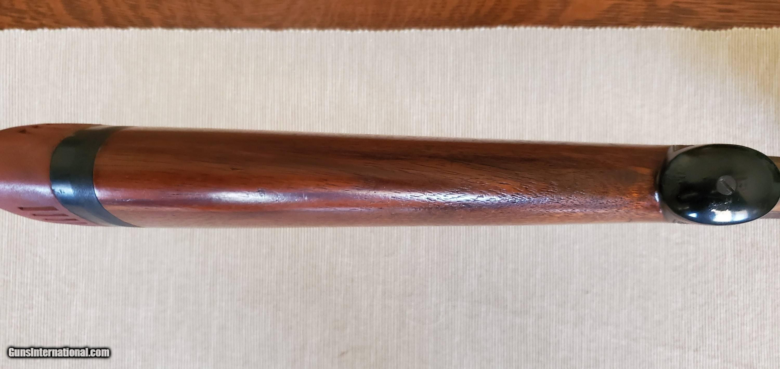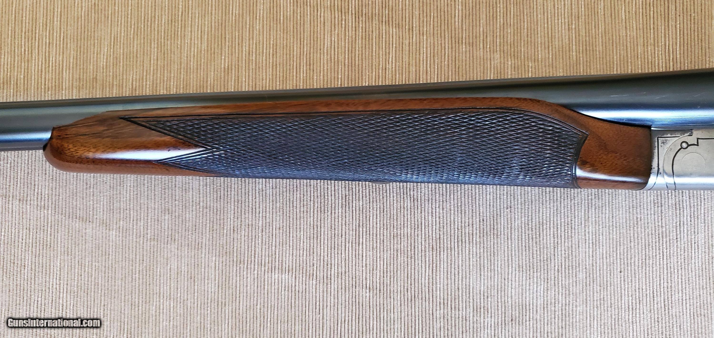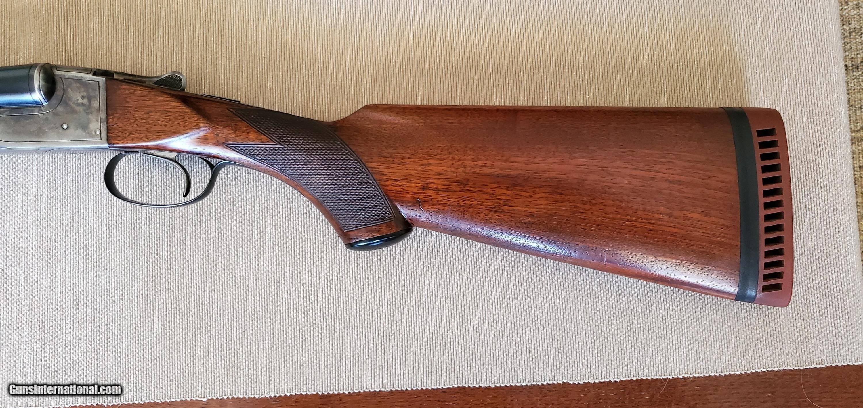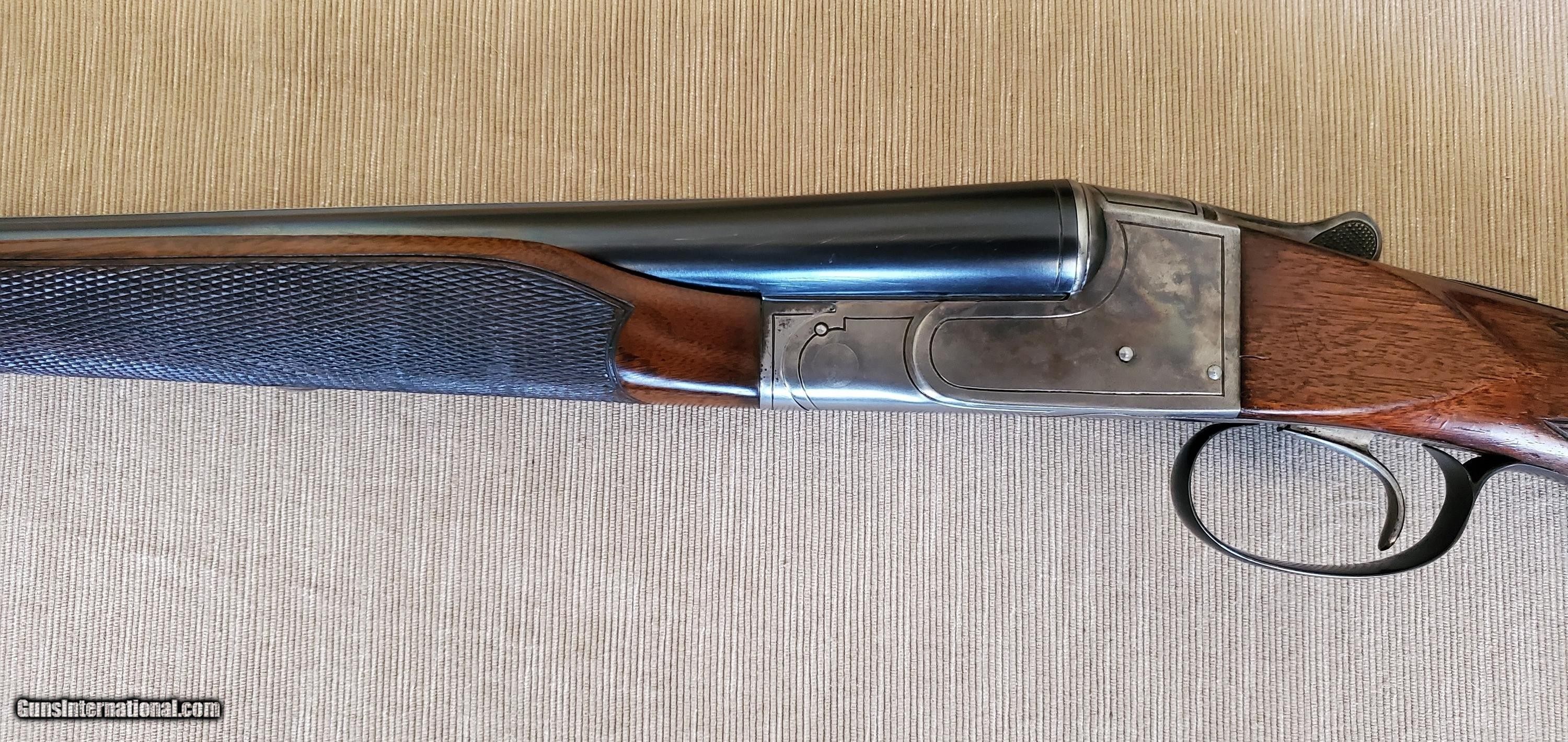 Description: Classic American 20 gauge double made in 1935 (300782) with 26 inch barrels, CYL/IC fixed chokes (by my measurement, but marked Skeet/Skeet on the barrel flats), beaver-tail forearm, single trigger, and 14 1/4 LOP. A fantastic upland gun that weighs just 6lbs 8oz. Bores are shiny with 2 3/4 inch chambers. Tang is right of center. 1.5" DAC and 2.25" DAH. Lefever A Grade shotguns are somewhat rare and were made only from 1934 to 1939. There is a small chip missing at the forward end of the forearm but overall the gun is in excellent original shape with some case colors still visible. Ship to lower 48 FFL; buyer pays $70 shipping. SOLD Shotgun Gauge: 20 Gauge Manufacturer: Lefever Model: A Grade Skeet Serial Number: 300782 Barrel Length: 26 Bore: 20 Chambers: 2 3/4 Ejectors: Yes Condition: Very Good Metal Condition: Excellent Wood Condition: Very Good Bore Condition: Excellent Action: SxS Triggers: Single Stock: Pistol grip Stock Comb: 1.5 Stock Heel: 2.25 Fore End: beavertail LOP: 14 1/4 Weight: 6lbs 8oz Sights: double brass Manufacture Date: 1935 Chokes: fixed Choke Left: Cyl Choke Right: IC Engraving: factory |