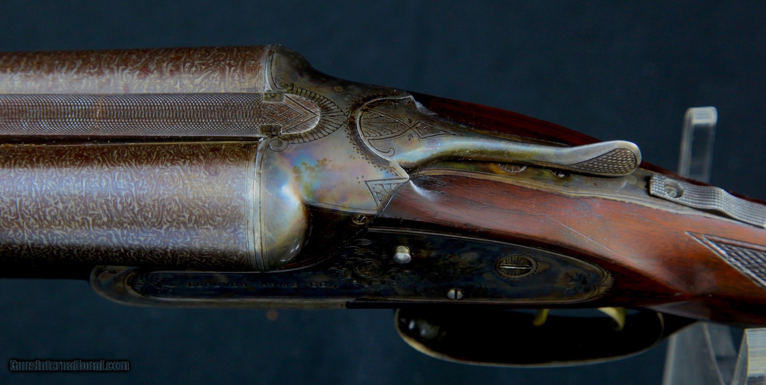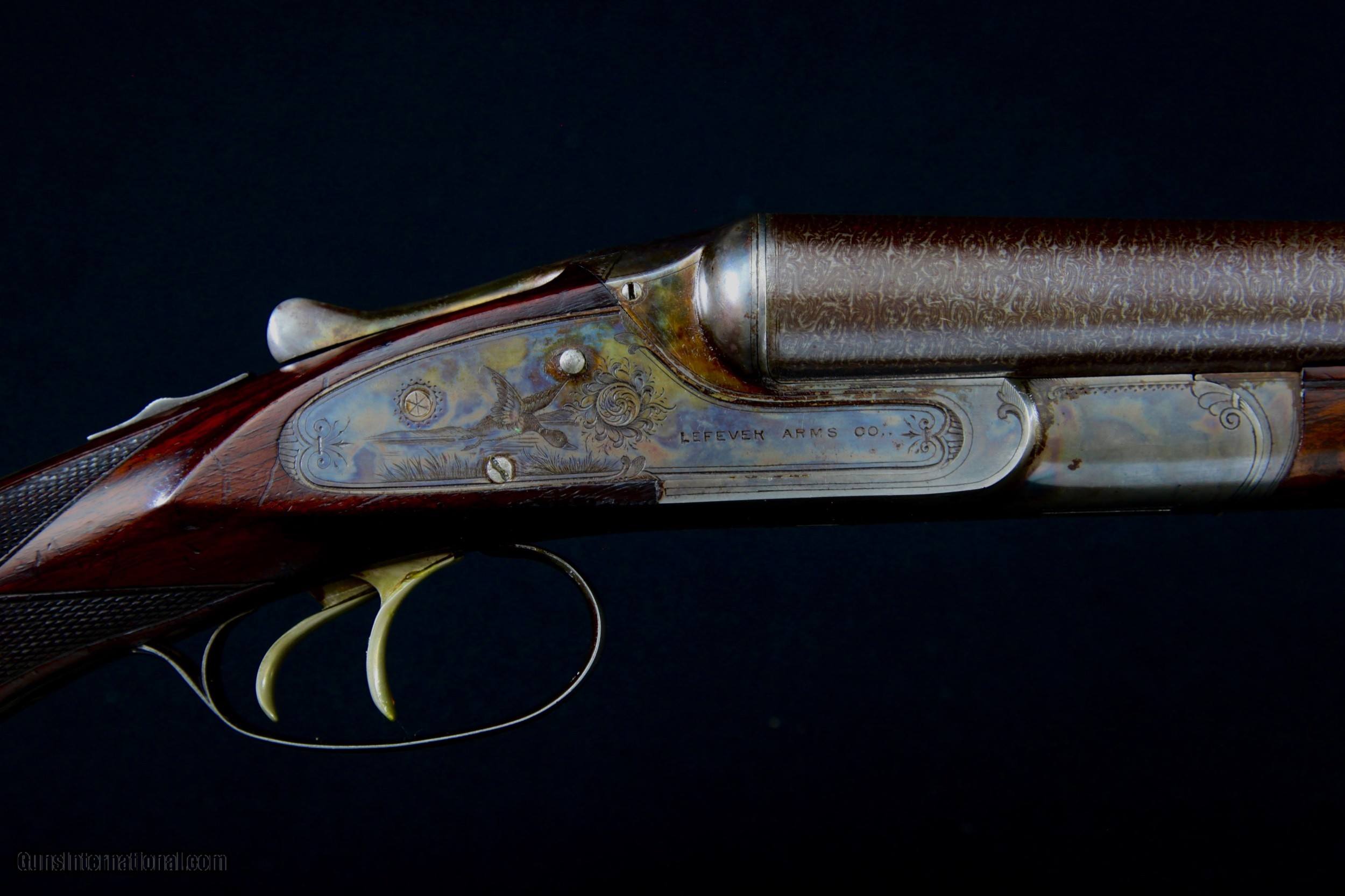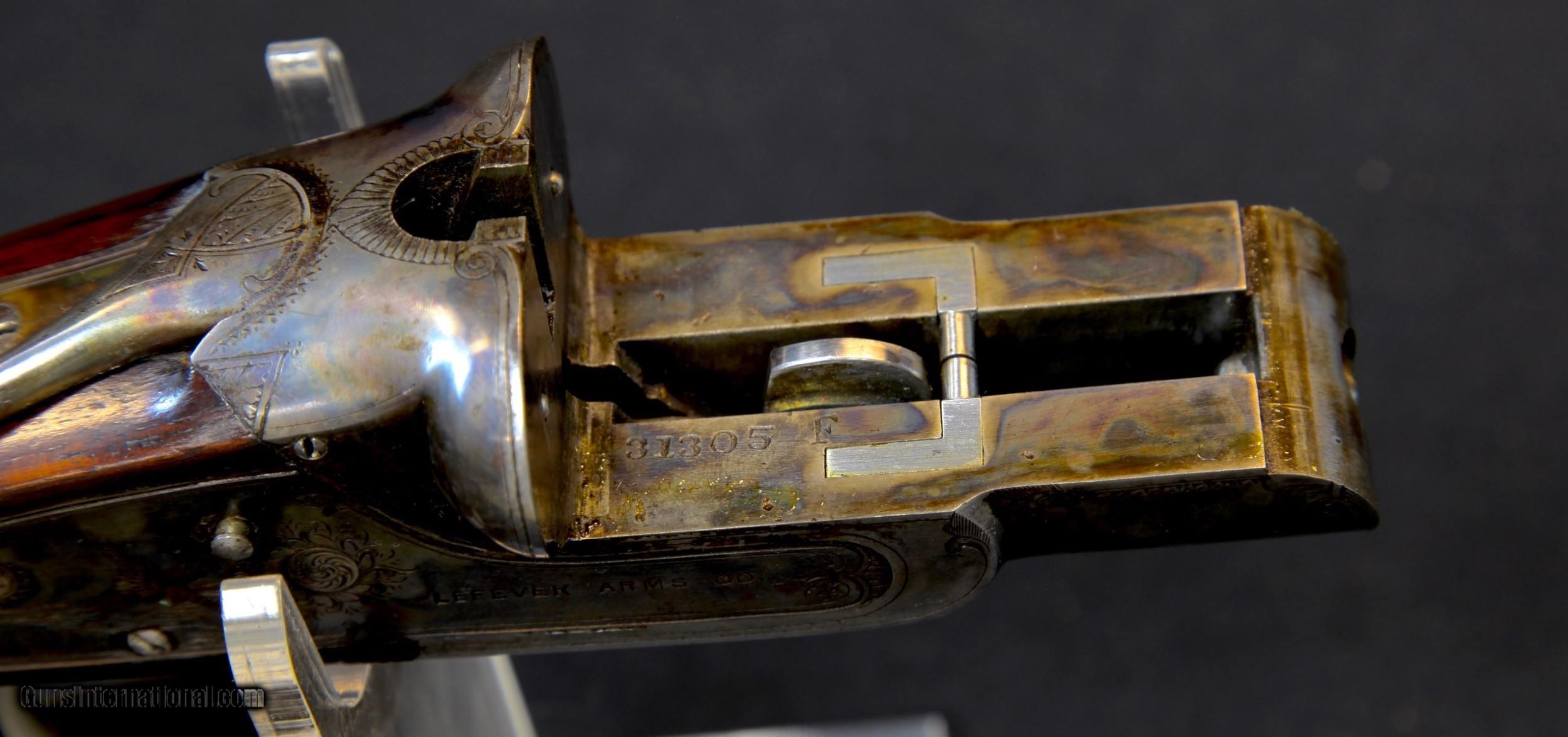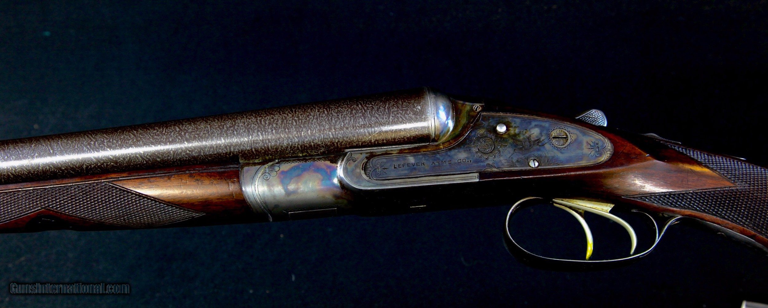 Description: Extremely fine all original gun with 30" damascus barrels. Case hardened ction is engraved in typical mid-range FE Grade pattern. Made with capped pistol grip, splinter forend, double triggers, and auto ejectors. The splinter forend has the original well defined dog's head ebony escutcheon. The capped pistol grip buttstock is of very high quality walnut, much finer than typically found on an FE Grade as seen in the photos. The gun remains in extremely fine all original condition. The barrels retain about 97% bold original damascus pattern with mirror bright bores. The action retains about 85%+ deep rich original case colors as seen in the photos. The stocks are sound and retain nearly all of their original finish. A very comparable steel barreled FE 12ga sold at not long ago for $9200. These completely original high condition Lefevers are impossible to source. This gun is priced at $3995 plus shipping to your FFL. Please dont hesitate to contact me with any questions or reasonable offers via PM on this site or at (704) 280-2382. SOLD Curio/Relic: Yes Manufacturer: Lefever Arms Co. Model: FE Bore: 12 Bore Chambers: 2-5/8 Ejectors: Yes Condition: Excellent Metal Condition: Excellent Wood Condition: Excellent Bore Condition: Mirror bright and shiny Barrel Type: Damascus Triggers: Double Triggers Stock Comb: 1-3/4 Stock Heel: 2-3/4 Fore End: Splinter with ebony dogs head Butt Pad: Original LAC Monogrammed BP LOP: 14 Weight: 7lbs7oz Choke Left: .739 with .039 choke (Full) Choke Right: .742 with .014 choke (lt. Modified) Engraving: Yes Minimum Wall Thickness Left: .029 Minimum Wall Thickness Right: .024 |