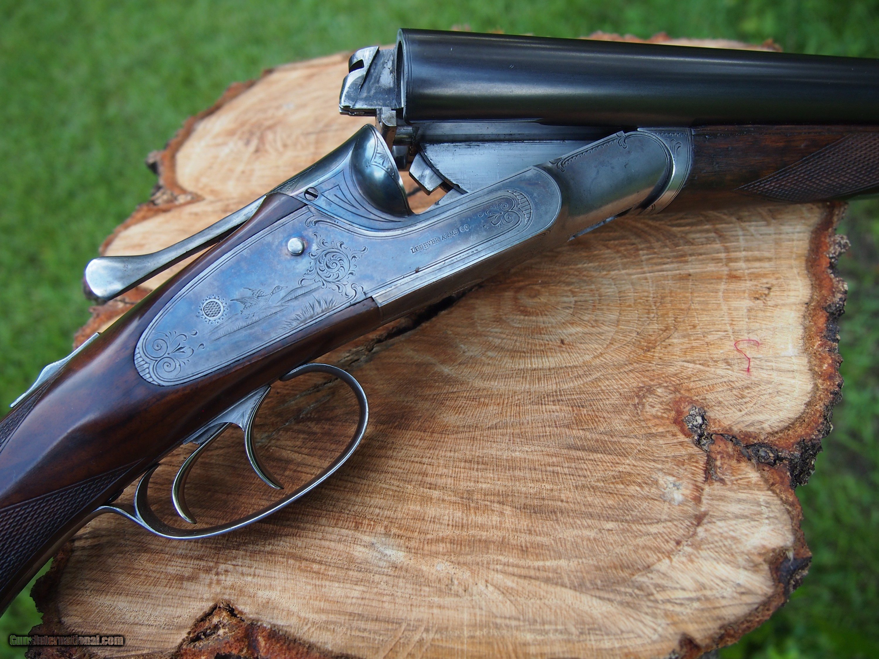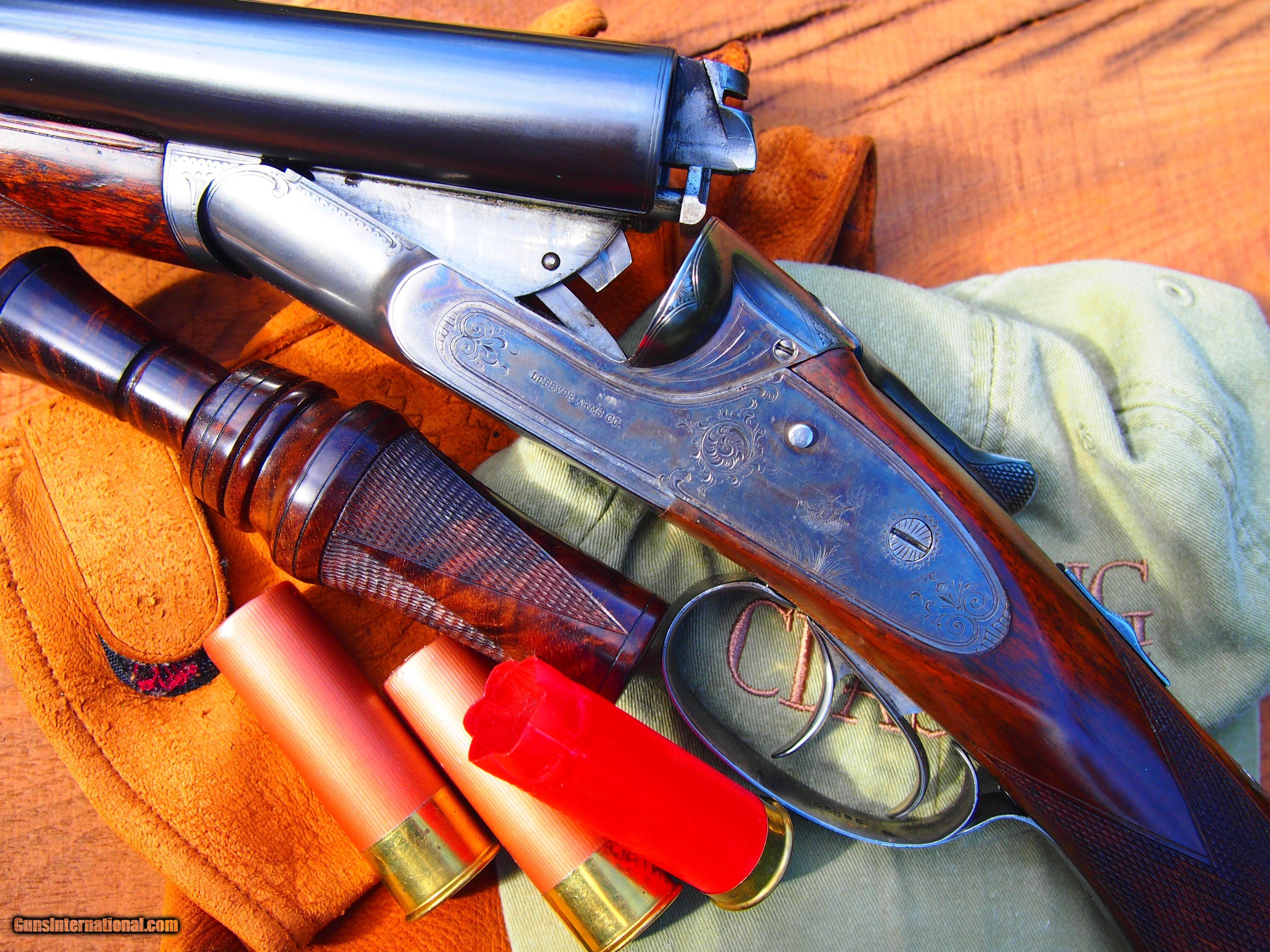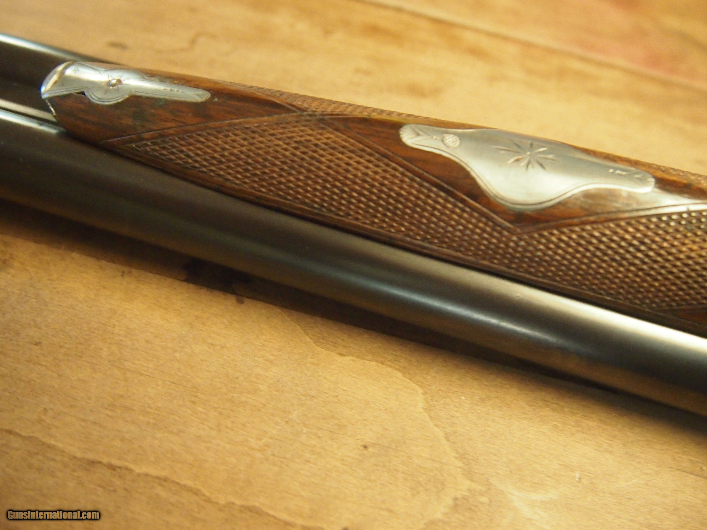 Description: 12 gauge, F grade in excellent condition, tight. On face No dings, dents or rust. 7lbs, 1 oz. Barrels are 30 inches and ring like chimes. Excellent dimensions, 1 1/2X 2 1/4 X14 1/2 to rubber pad. Prince of Wales grip. Double triggers, extractors. 80 % CC, almost all blue except on trigger gaurd. Choked IC/Mod. The nicely figured stock has a small wood extension, and has been refinished. The gun was featured a few years ago in my Shotguns column in Sporting Classics magazine.This outstanding gun has been my go-to field gun for several years and is field ready as is. Here is your chance to buy a wonderful all around upland double for a reasonable cost! SOLD |