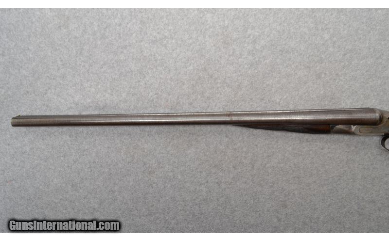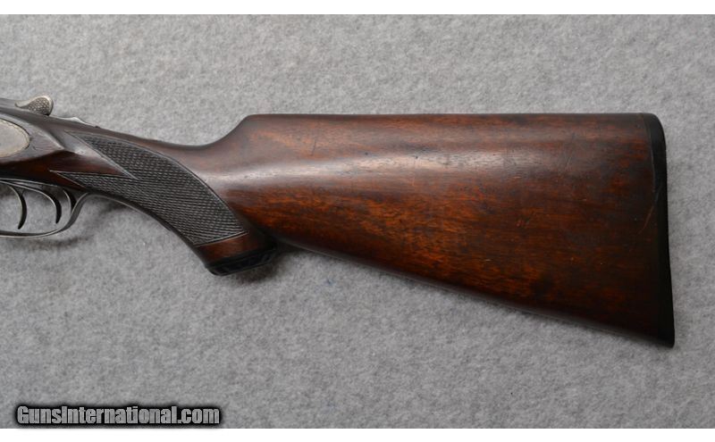 Description: Lefever H grade 12 gauge, 2 3/4 inch chambers with extractors, 28 inch Damascus barrels with solid raised rib and single metal bead. Right barrel choked improved cylinder and left barrel choked modified. The bores are bright. The left barrel has some light freckling in the chamber. Action has some case colors protected in areas, otherwise has turned a dull gray with some light patina. The Damascus barrels show some finish wear, however the pattern is still visible. Stock and fore end show some handling marks, dings, and scratches though none are through the finish. 12 Gauge SOLD Antique: Yes Chambers: 2 3/4 inch chambers with extractors. Metal Condition: Action has some case colors protected in areas. Otherwise, has turned dull gray with some light patina. The Damascus barrels show some finish wear, however the pattern is still visible. Wood Condition: Stock and fore end show some handling marks, dings, and scratches though none are through the finish. Barrels: 28 inch Damascus barrels. Triggers: Double triggers. Stock Dimensions: 14 inch LOP, 2 inch DAC, 3 inch DAH Fore End: Walnut checkered splinter fore end. Butt Pad: Factory black hard rubber butt plate. Sights: Solid raised matte rib with single metal bead. Chokes: Right barrel choked improved cylinder. Left barrel choked modified. Item Location: Mitchell, SD |