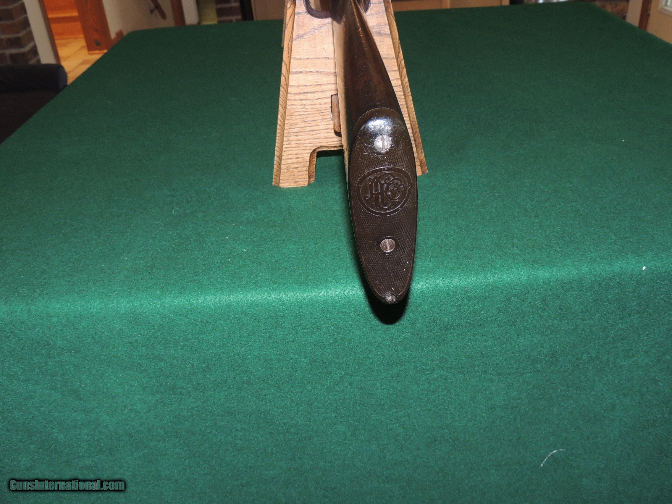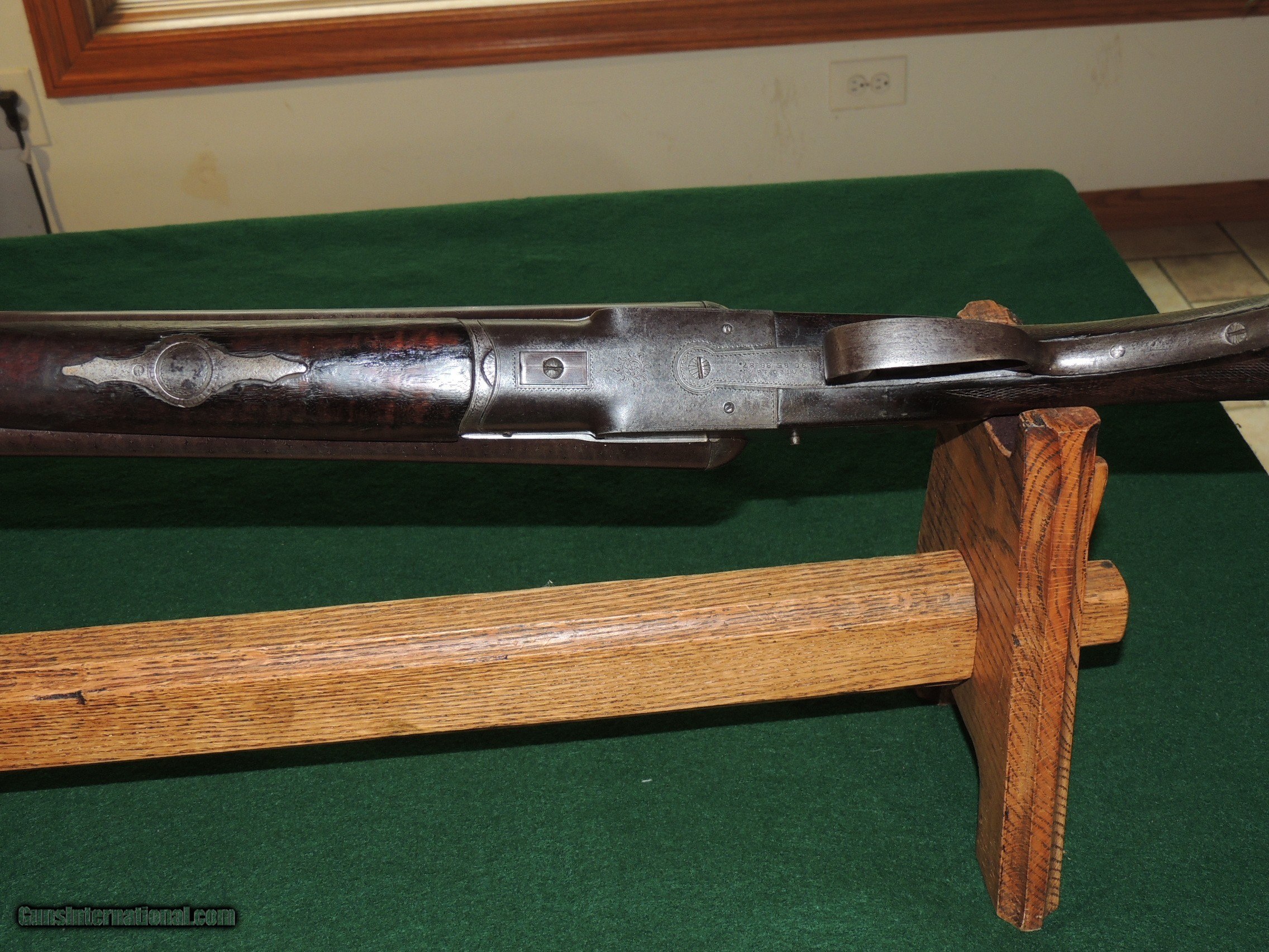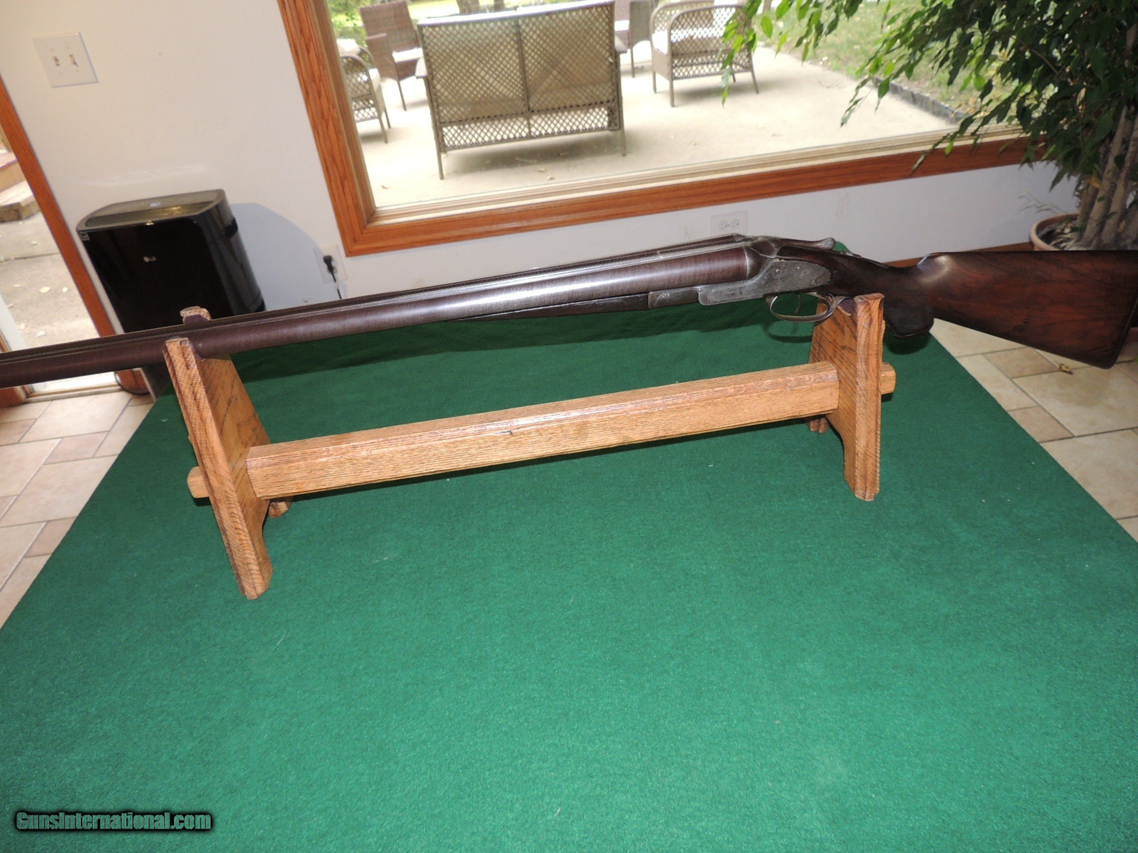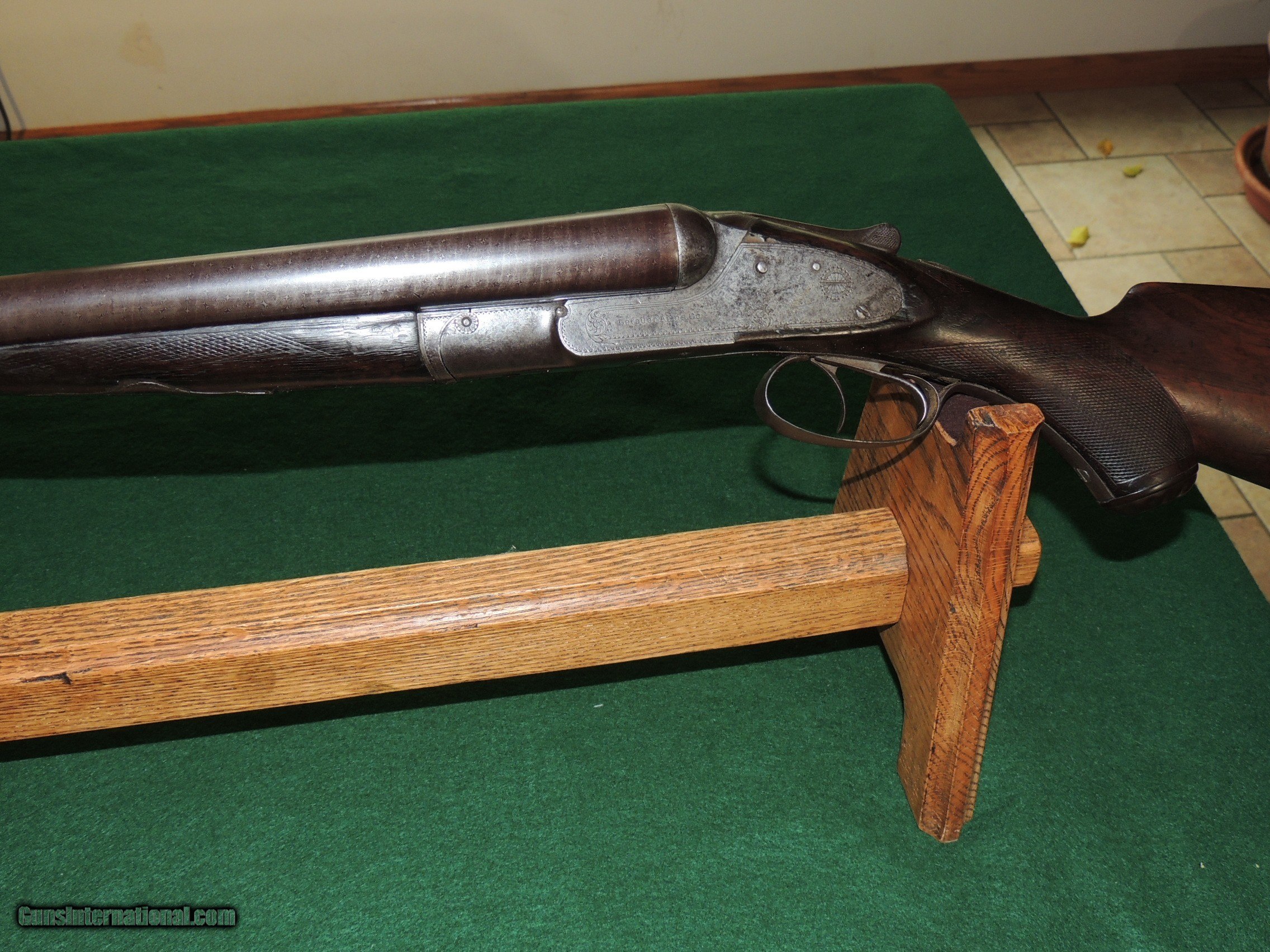 Description: 30” Damascus barrel Super Clean, Extractors, Double trigger, very early gun with pivot lever, push button forend, LOP 14 ½, DAC 2 ¾” DAH 3 ¾”, LeFever butt plate, WT 9# 1 oz. . Solid Gun. SOLD Antique: Yes |