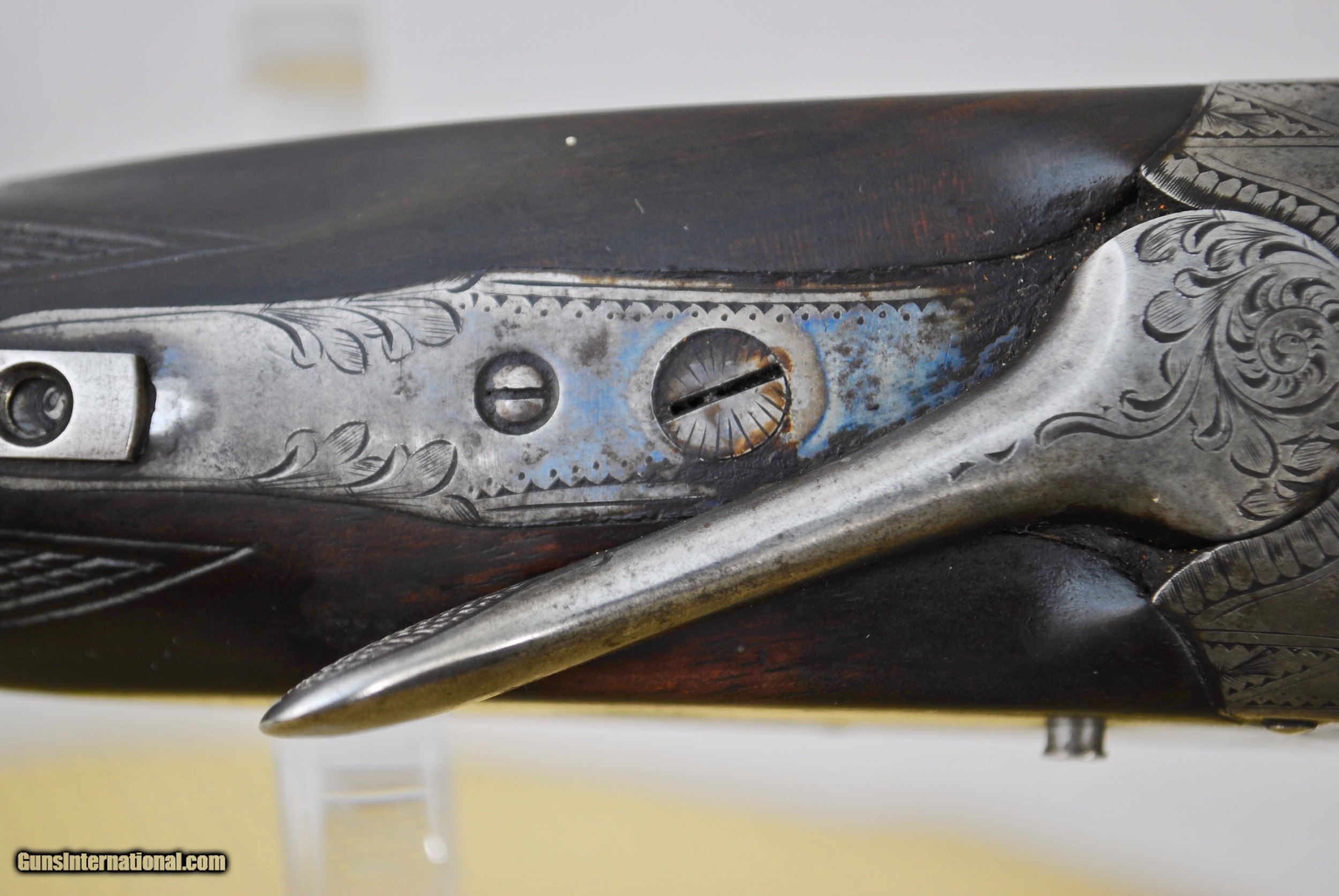 Description: Here is a Lefever E Grade in 12 gauge with 30" Krupp Steel Barrels. This high condition gun has good original case color in protected areas and nice traces of color on the sharply engraved side plates. Well figured wood with no visable cracks. Gun is tight on face. No loose ribs - barrels ring nicely. Extractors. Good bores measuring .730 with Modified Choke (18/1000) in the right barrel and Extra Full (42/1000) in the Left. Chambers are 2 3/4". Well functioning with auto safety. All serial numbers match. Weight of gun is 7 LBS 7 1/2 OZ. C&R is OK. Shipping is $50. Stock dimensions follow. LOP - 13 15/16" Drop at Comb - 1 5/8" Drop at Heel - 2 5/8" For inquiries please call Guy - 407-721-3748 SOLD Curio/Relic: Yes Shotgun Gauge: 12 Gauge |