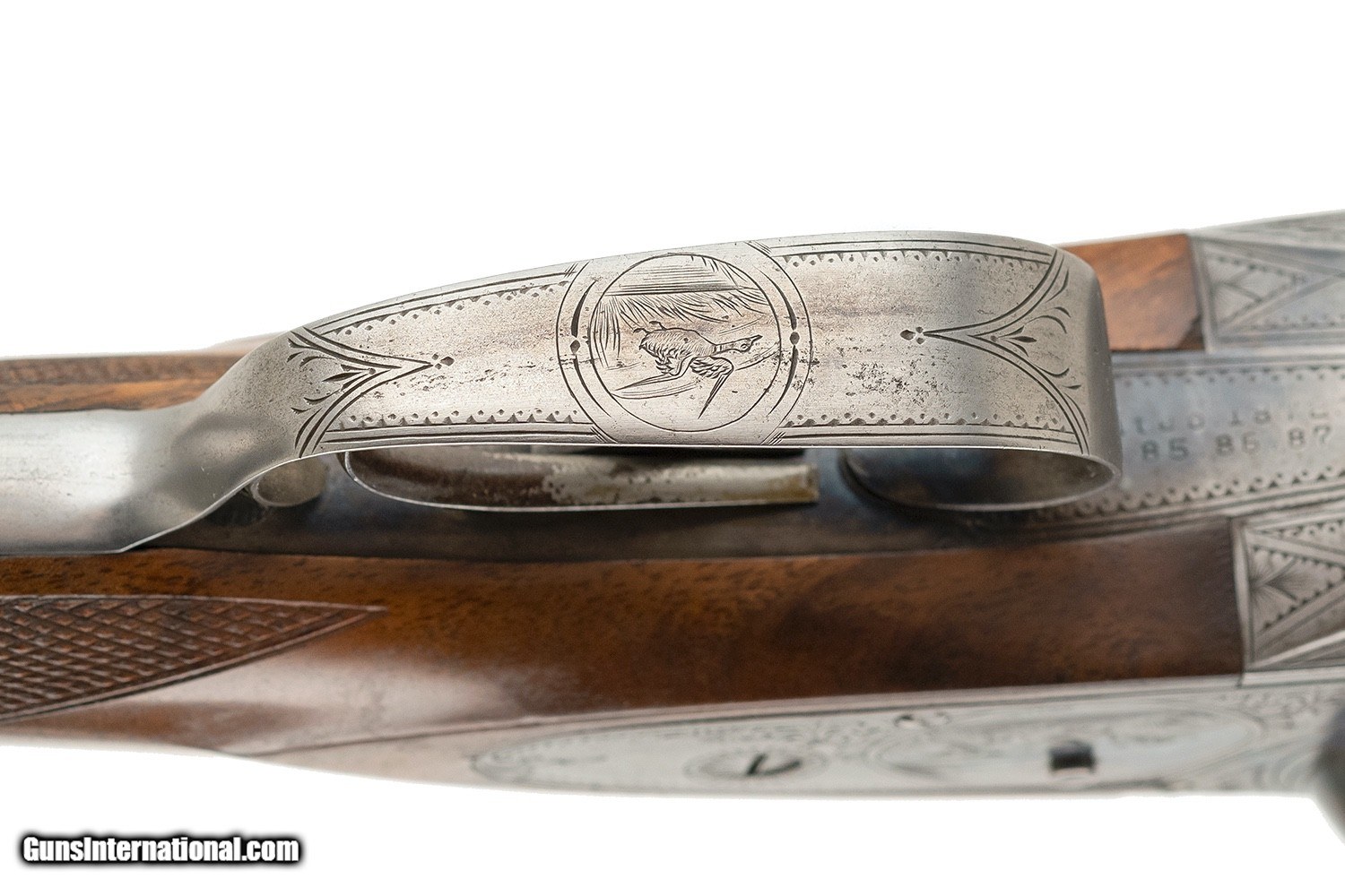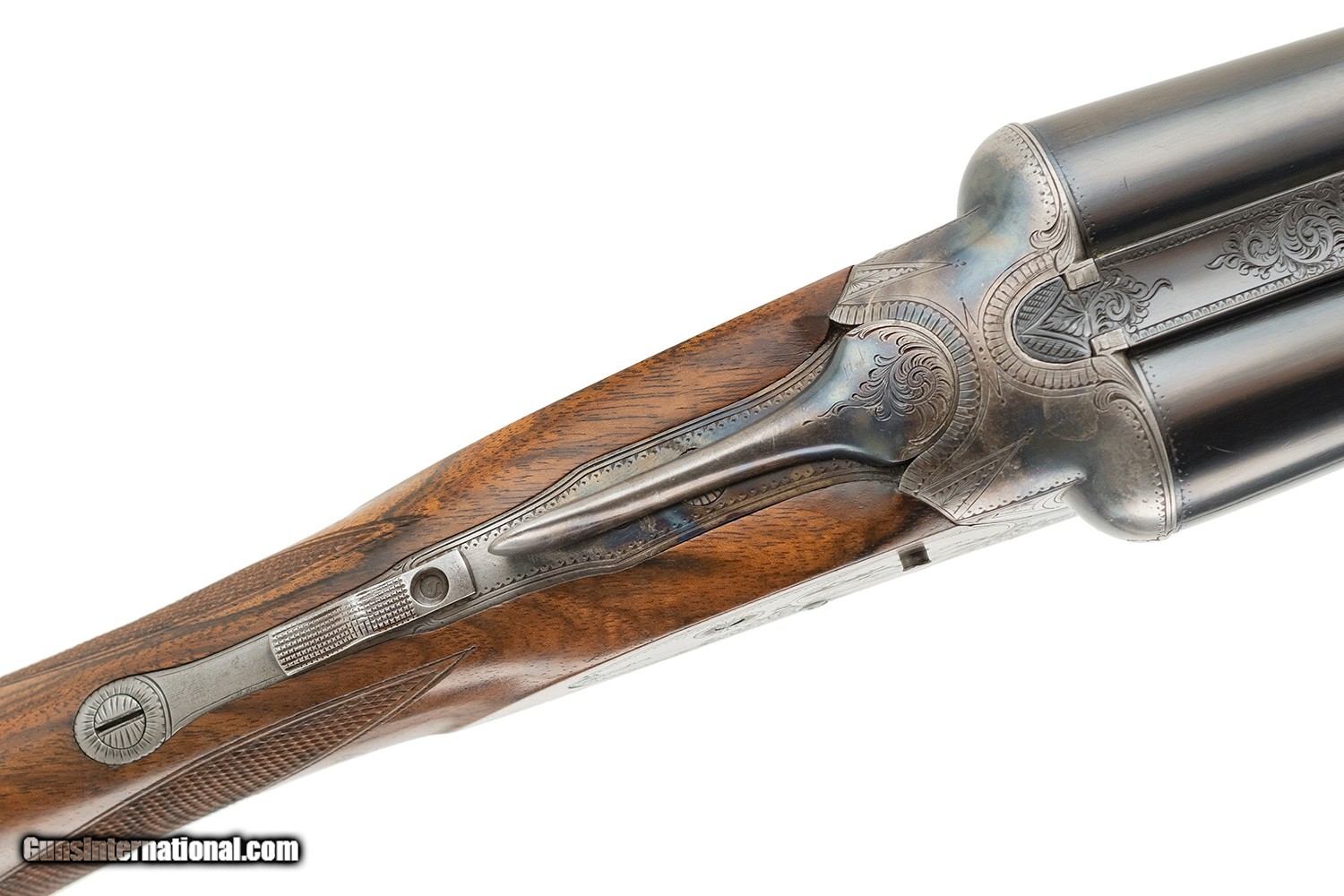 Description: #45XXX BRILEY SLEEVED 30 1/4" SOLID RIB BARRELS (BRILEY SCREW CHOKES - CYL, IC, SKT, LIGHT MOD, MOD) 3" CHAMBERS DOUBLE TRIGGERS EXTRACTORS SPLINTER FOREARM PISTOL GRIP BUTT PLATE EXCELLENT CONDITION WITH SOME LIGHT HANDLING 7LBS 6 OZ 2 1/2" DAH 1 1/2" DAC 14 7/8" LOP SOLD |