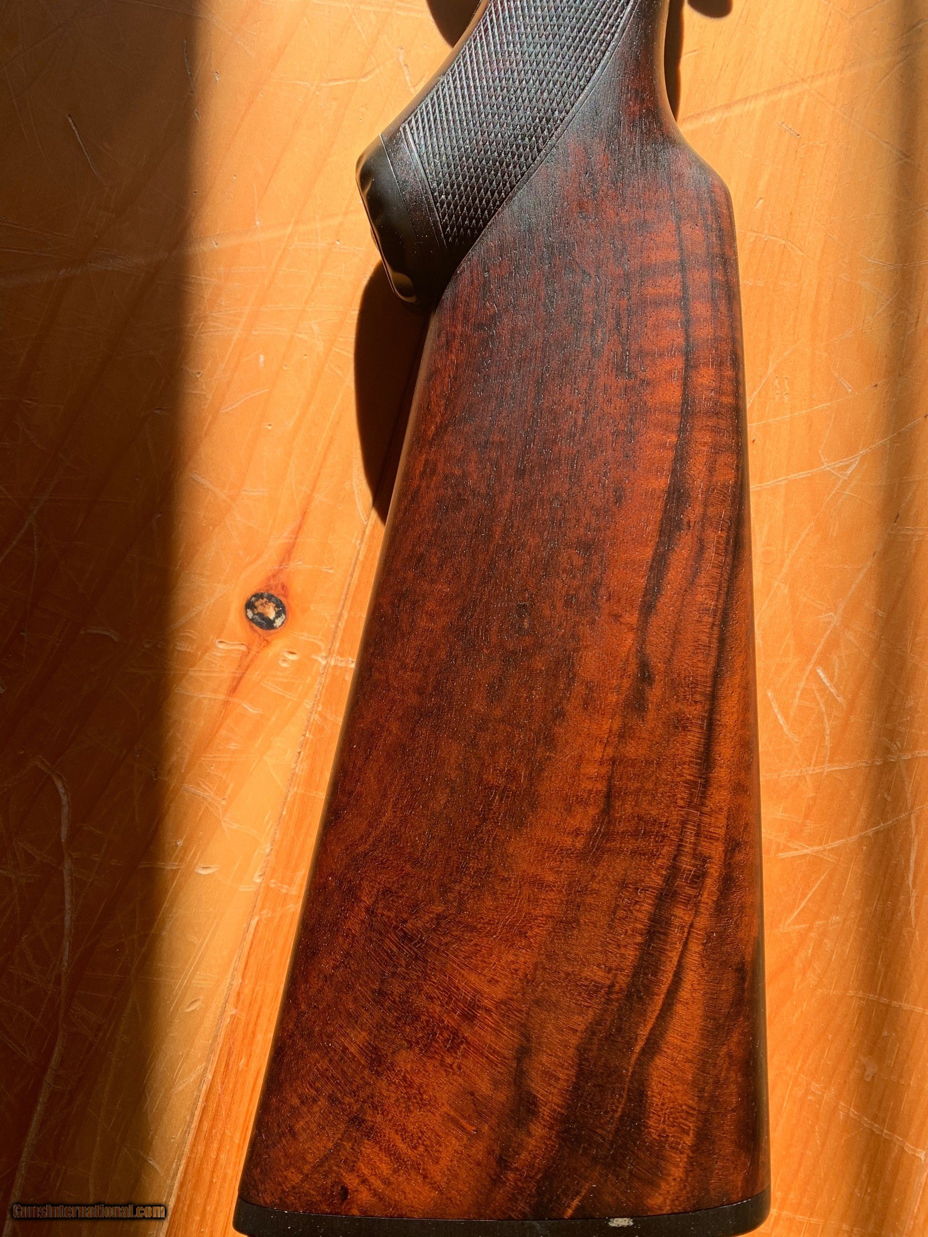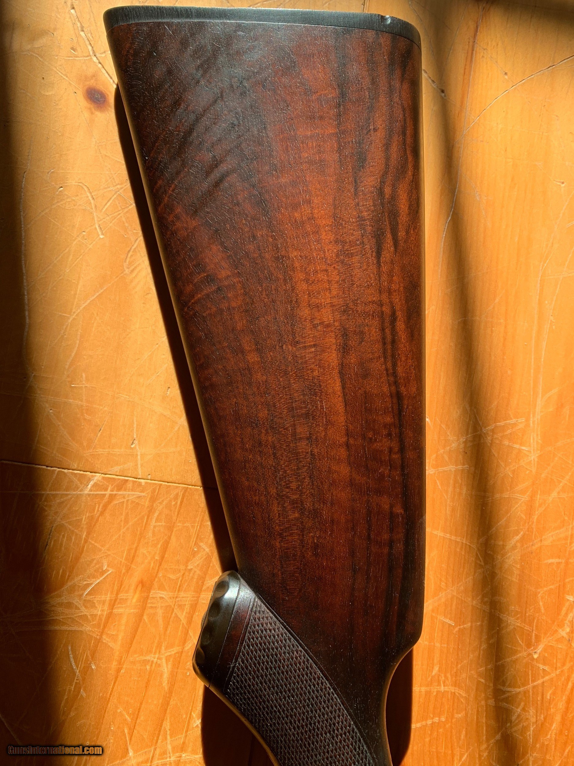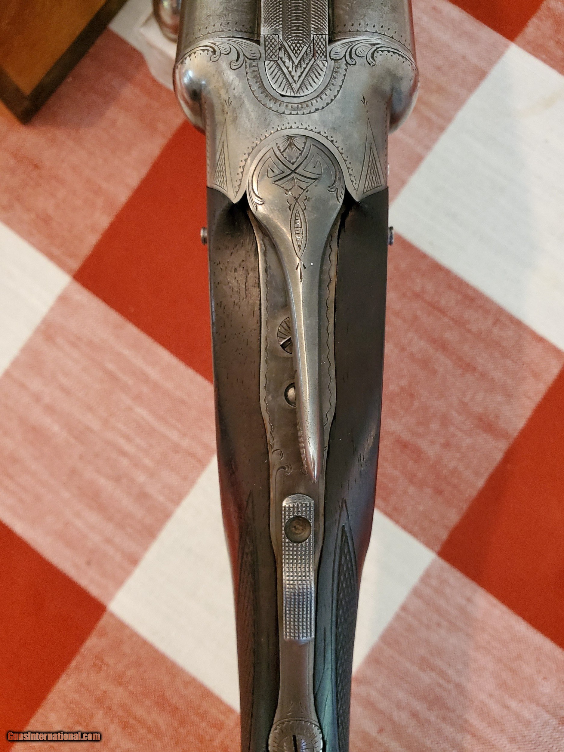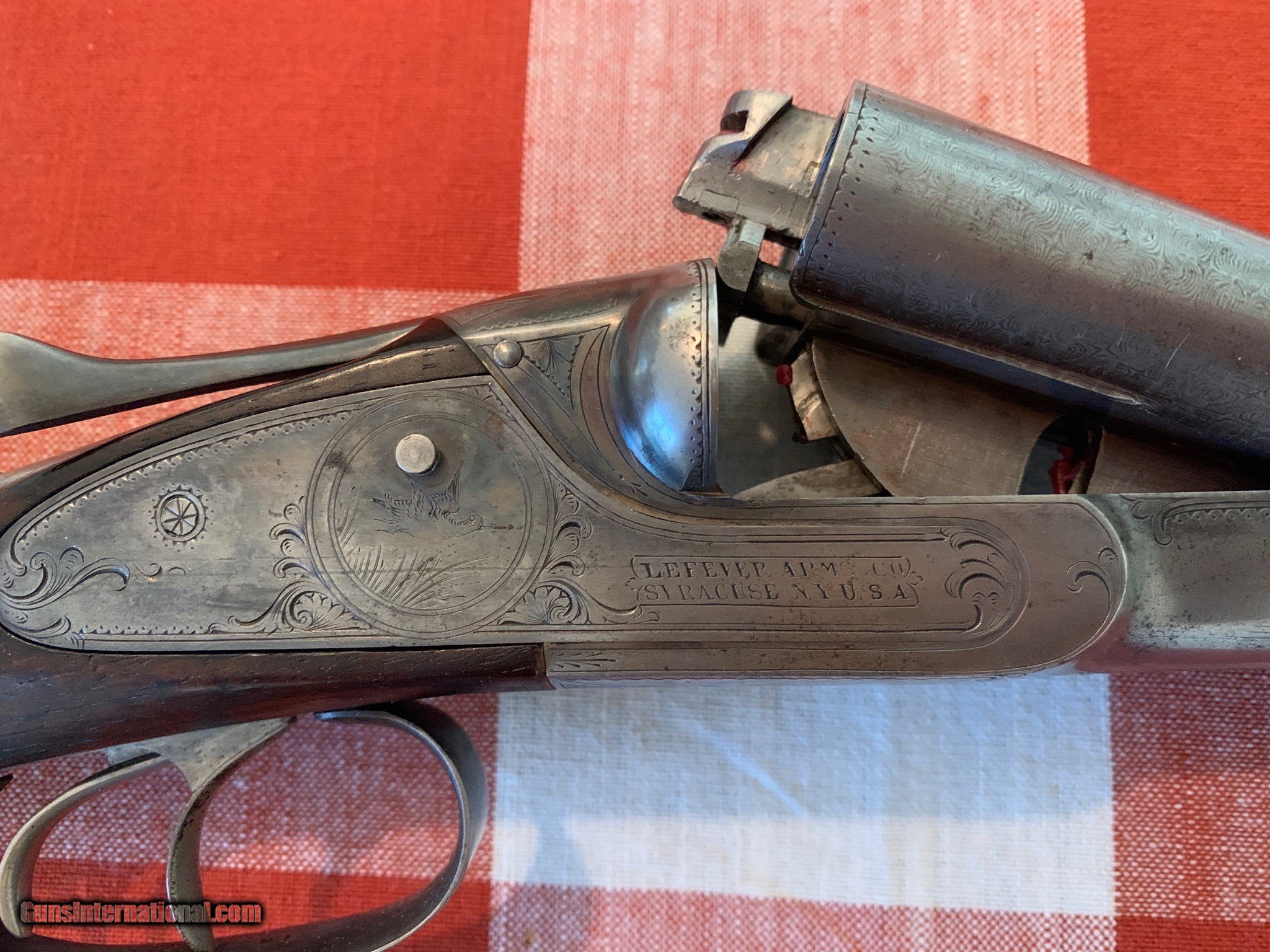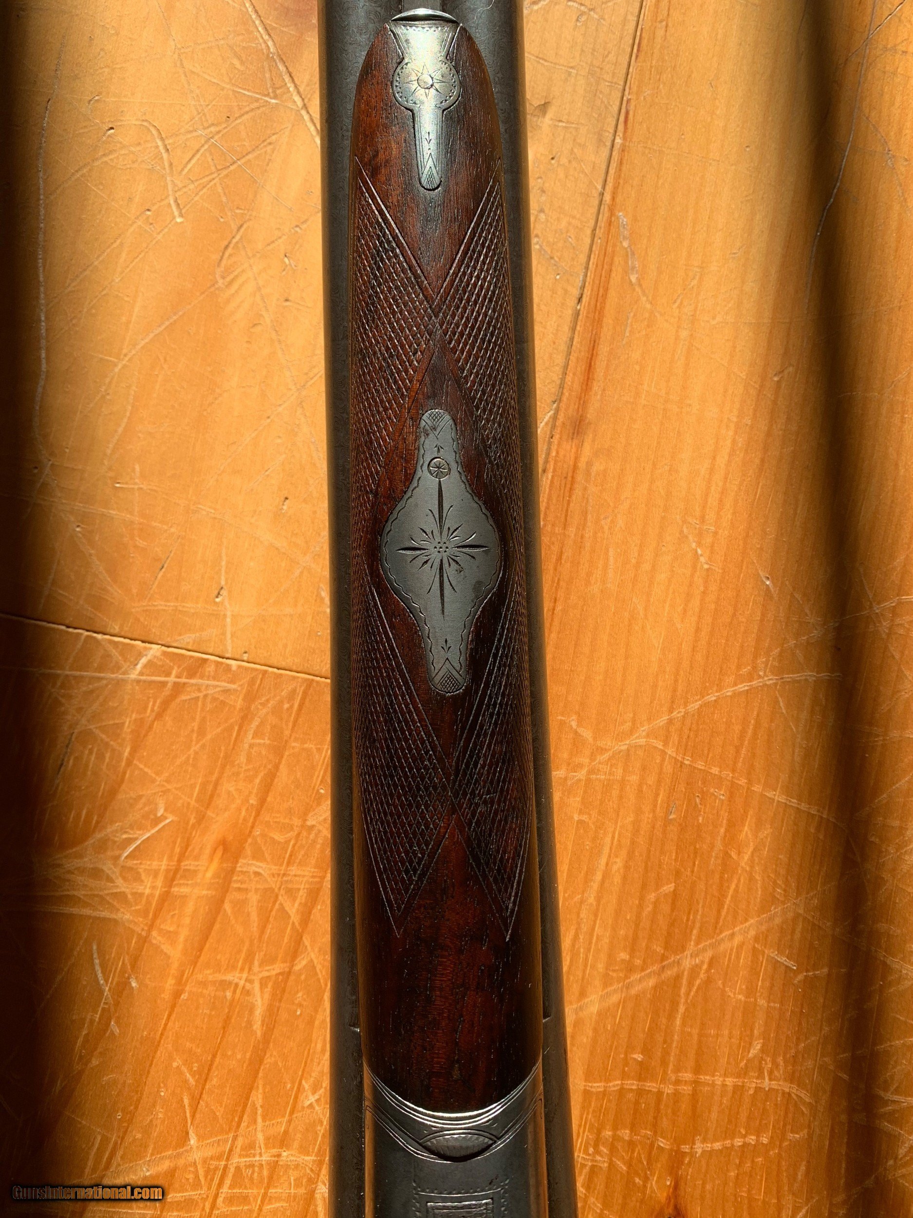 Description: Refinished 16ga Lefever FE weighing in at 6lbs 3oz. A joy to carry in the woods or field, this gun has enough choke to do serious work downrange or paired with vintage, spreader loads in the right barrel can bring down grouse and woodcock with ease. Damascus pattern remains albeit with some light browning/patina towards the end of the barrels. Stock "horn" by triggerplate has been repaired by Craig Libhart of Susquehanna Stockworks. Gun has not been shot since strip and clean by contributing writer to Shooting Sportsman, Dewey Vicknair of Vicknair Restorations. Secure your proper, American-made game gun today! SOLD Manufacturer: Lefever Model: FE Serial Number: 48201 Bore: 16 Chambers: 2.56 Ejectors: Yes Condition: Good Metal Condition: Good Wood Condition: Fair Bore Condition: Good Barrels: 28" Damascus Triggers: Double Gauge Info: 16 Stock Comb: 1.5 Stock Heel: 2.31 Stock Cast: Cast-on LOP: 13.63 Finish: Linseed oil Weight: 6lbs 3oz Manufacture Date: 1903 Choke Left: IM Choke Right: IM Item Location: Union, ME |