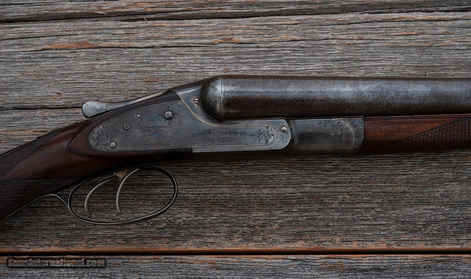 Description: Daniel M. “Uncle Dan” Lefever is credited with making the first successful hammerless side-by-side shotgun made in America and an early brochure boasted “no hammers to obstruct the sight or catch on twigs or brushes.” Solid functional gun. Missing screw in the top tang. SOLD Curio/Relic: Yes Shotgun Gauge: 12 Gauge Manufacturer: Lefever Arms Co. Model: Damascus Caliber Info: 12 Gauge Ejectors: Yes Condition: Preowned Metal Condition: Good Barrels: 30 Action: Sidelock : Side by Side Triggers: Double Gauge Info: 12 Gauge Stock Comb: 1 3/4 Stock Heel: 2 7/8 Stock Cast: On Fore End: Checkered LOP: 13 3/4 Rib: Concave Weight: 8.000000 Chokes: Cyl/Full Case: No |