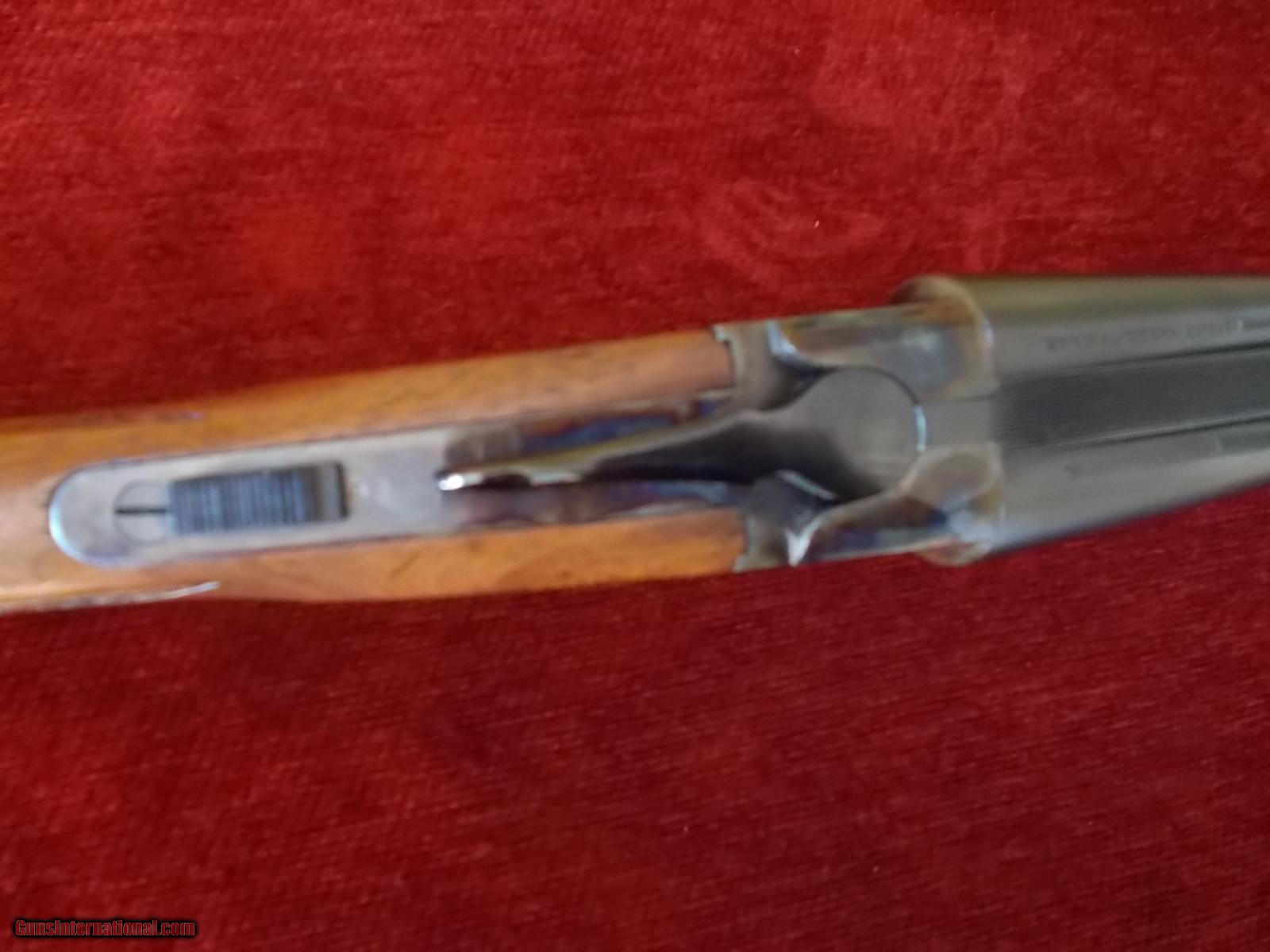 Description: 26" bbls., F/F, DT's, ext., preminum deluxe checkered American walnut stock, 13 1/8" LOP ovber factory buttplate, 99% bbl. blue, 99% CC, very little if any handling , appears in as new condition, modern shooting dimensions with (1" drop), most immaculate condition of any encounterd in 36 yrs., 5/lbs., 11 ozs. SOLD |