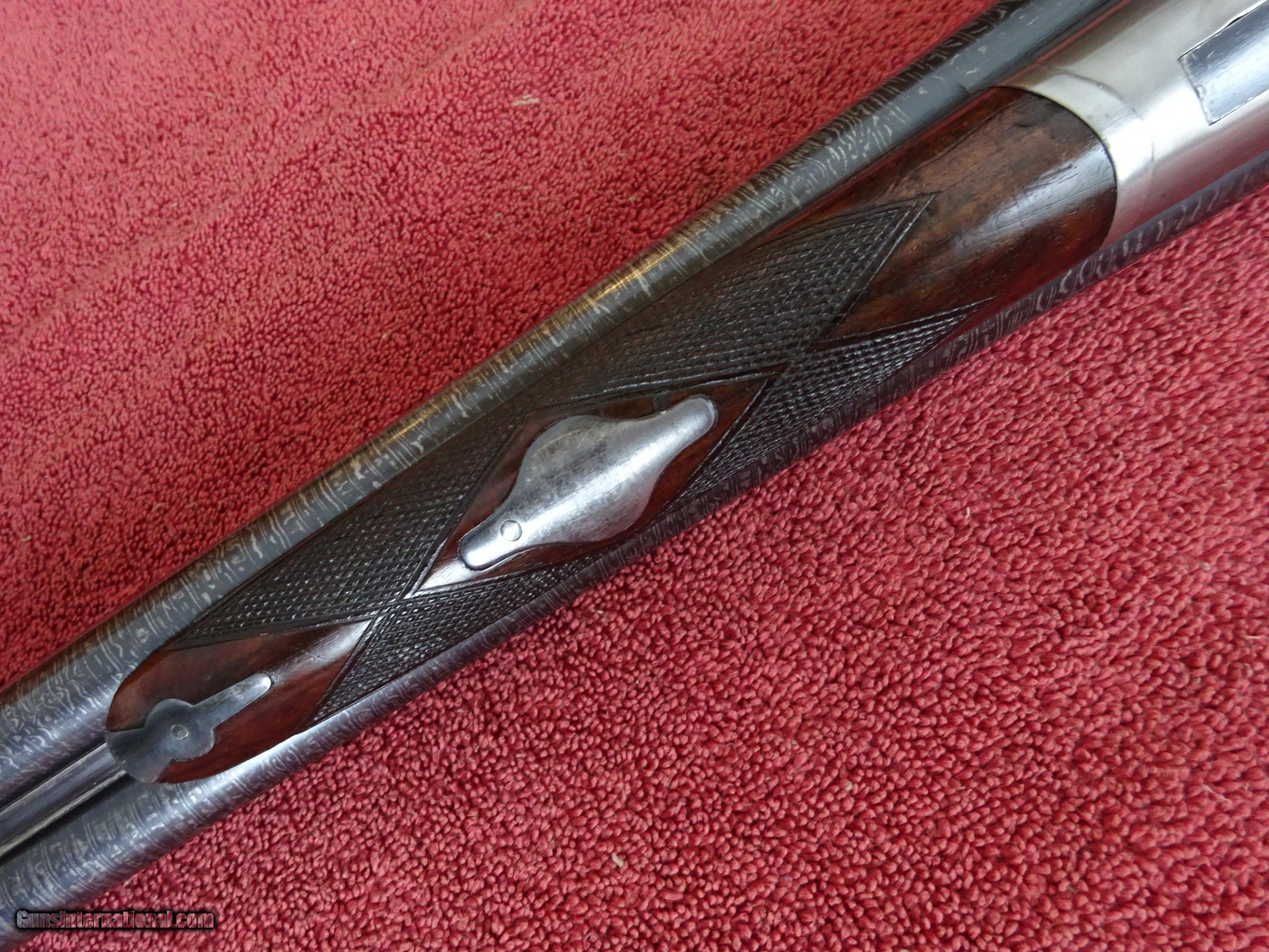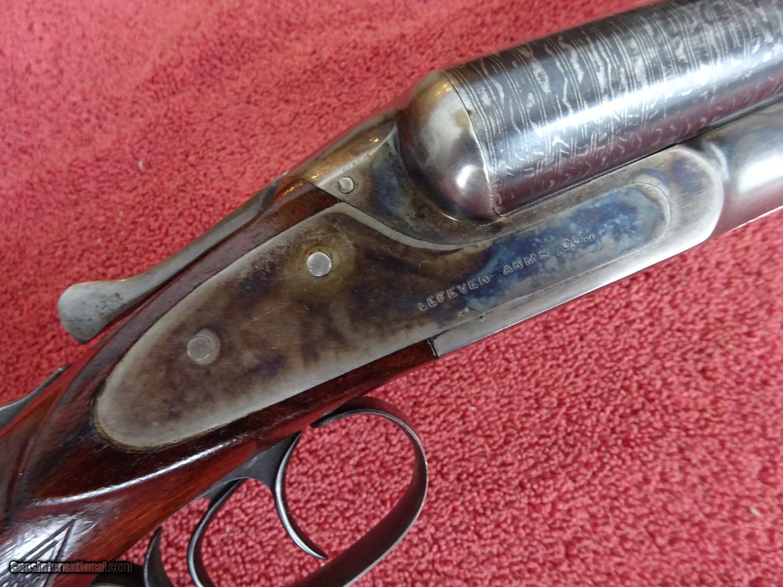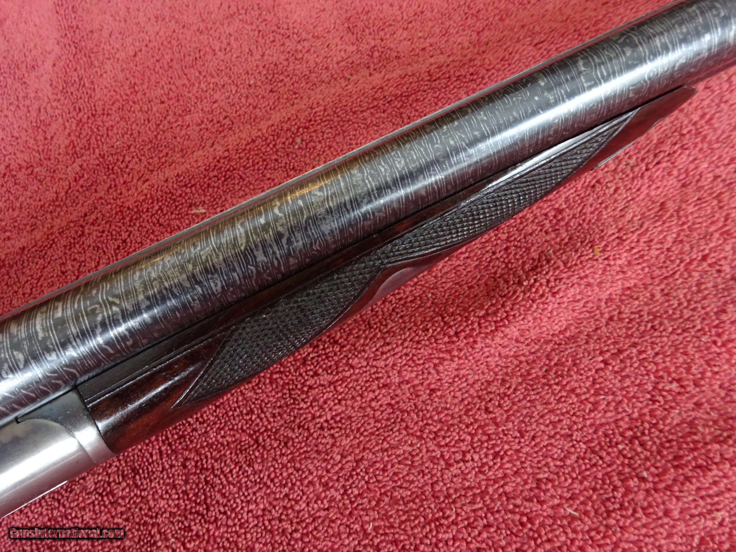 Description: LEFEVER ARMS, SYRACUSE NY, H GRADE 12 GAUGE, 30" DAMASCUS BARRELS. MIRROR BRIGHT BORES, FULL AND FULL, 2 3/4" CHAMBERS, GORGEOUS BOLD BARREL PATTERN, 100% COVERAGE. SINGLE BRASS SIGHT, BARRELS RING NICELY. TOP LEVER TO THE RIGHT, TIGHT ON FACE, BOLD VIVID CASE COLOR OVER MOST ALL OF THE FRAME AND TRIGGERGUARD, PERFECT SCREWS, COCKING INDICATORS. PISTOL GRIP STOCK, SPLINTER FOREARM, EXCELLENT WOOD AND CHECKERING, ORIGINAL GRIP CAP AND BUTTPLATE. DIMENSIONS, 1 1/2" X 2 5/8" X 14 1/8", 7 1/4 POUNDS. WONDERFUL VINTAGERS SPORTING CLAYS GUN. VERY NICE ORIGINAL COLLECTIBLE CONDITION. $1675.00 + $50.00 Insured shipping to an FFL address. See all Pats gun listings on this site! We also have hundreds of pieces of ORIGINAL gun company advertising & memorabilia available for sale on our site SPORTINGCOLLECTIBLES. We have no reprints or reproductions. Email for more information. SOLD Curio/Relic: Yes |