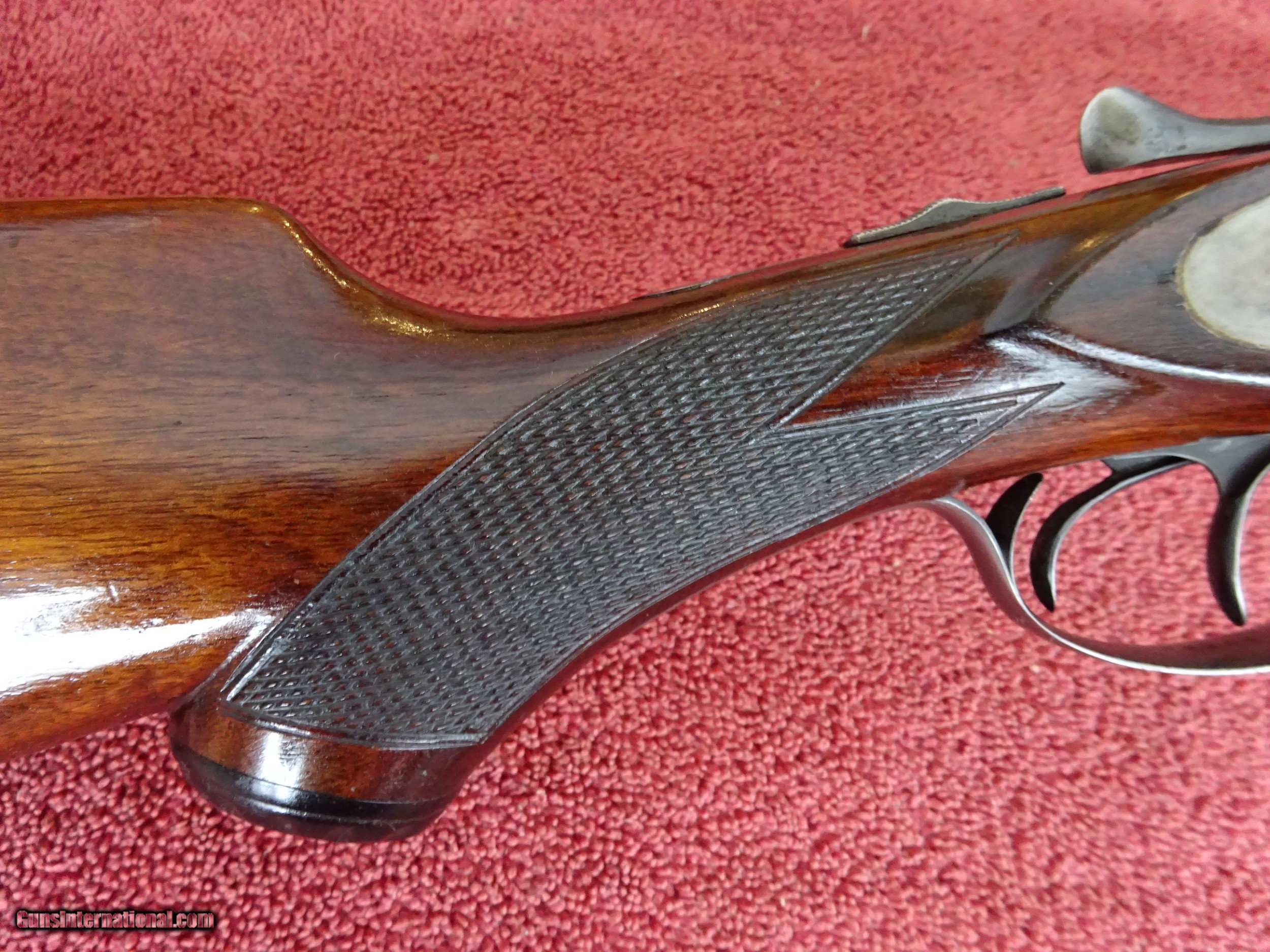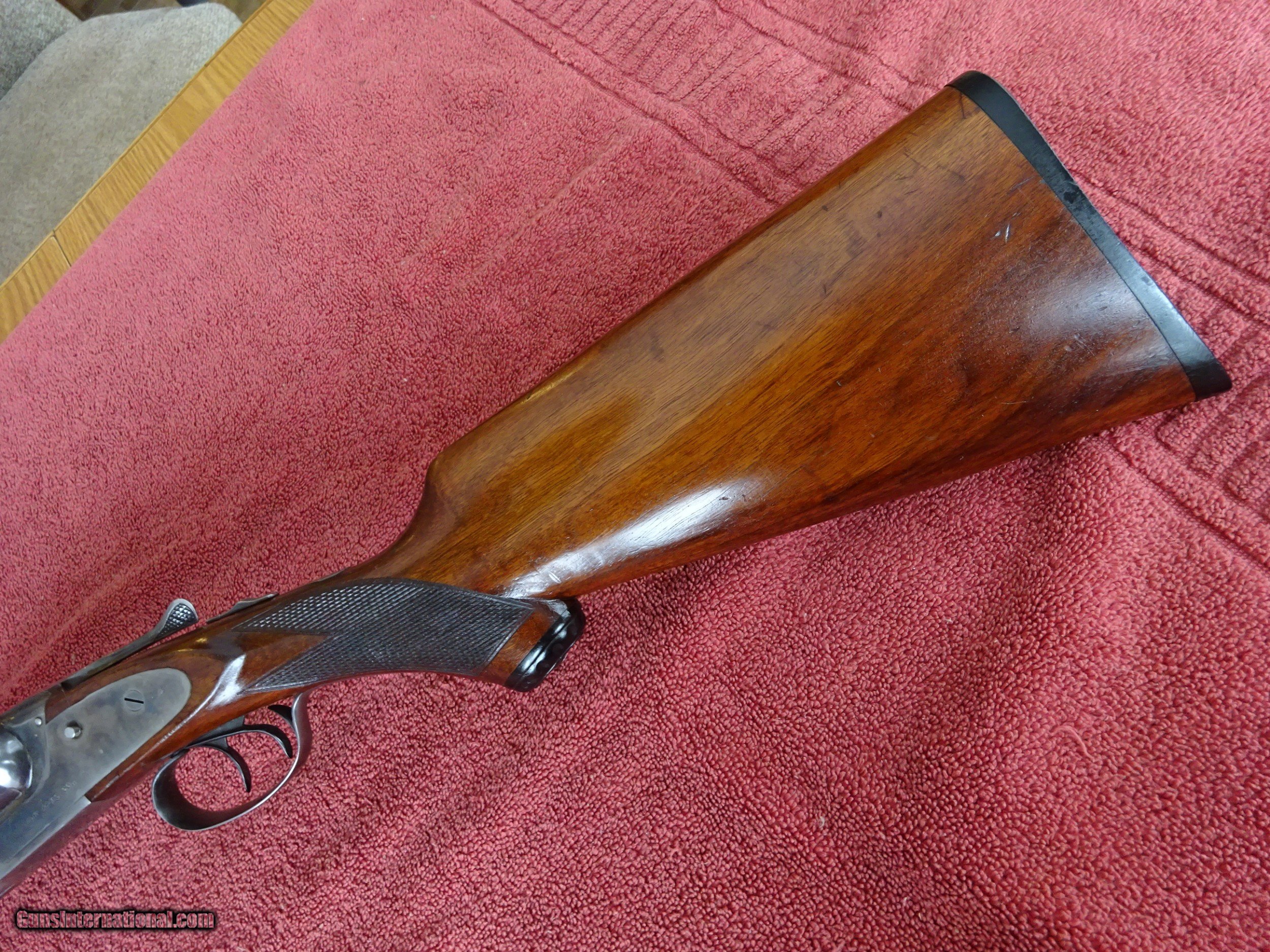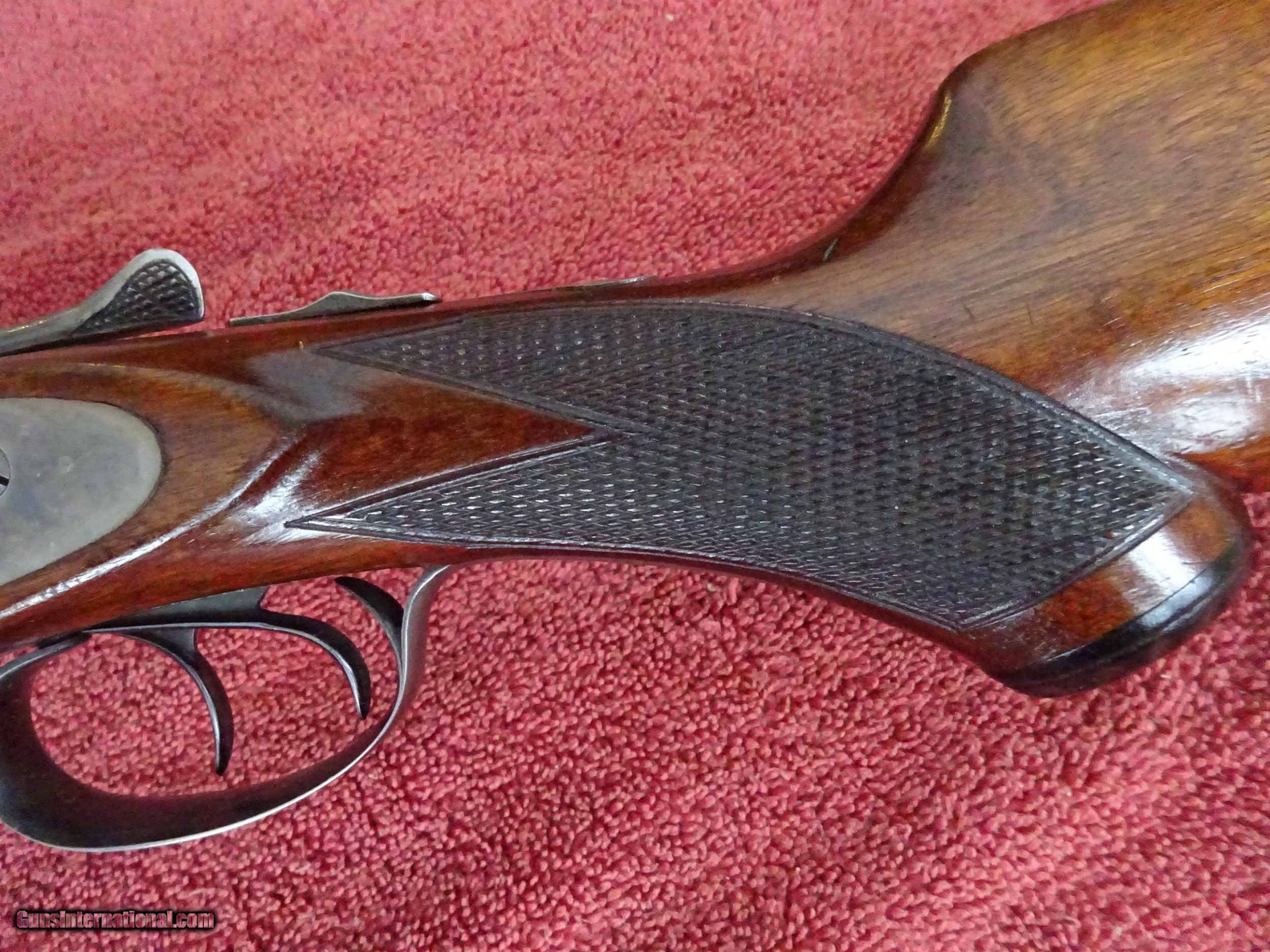 Description: LEFEVER ARMS, SYRACUSE NY, H GRADE 12 GAUGE, 30" DAMASCUS BARRELS. MIRROR BRIGHT BORES, FULL AND FULL, 2 3/4" CHAMBERS, GORGEOUS BOLD BARREL PATTERN, 100% COVERAGE. SINGLE BRASS SIGHT, BARRELS RING NICELY. TOP LEVER TO THE RIGHT, TIGHT ON FACE, BOLD VIVID CASE COLOR OVER MOST ALL OF THE FRAME AND TRIGGERGUARD, PERFECT SCREWS, COCKING INDICATORS. PISTOL GRIP STOCK, SPLINTER FOREARM, EXCELLENT WOOD AND CHECKERING, ORIGINAL GRIP CAP AND BUTTPLATE. DIMENSIONS, 1 1/2" X 2 5/8" X 14 1/8", 7 1/4 POUNDS. WONDERFUL VINTAGERS SPORTING CLAYS GUN. VERY NICE ORIGINAL COLLECTIBLE CONDITION. $1675.00 + $50.00 Insured shipping to an FFL address. See all Pats gun listings on this site! We also have hundreds of pieces of ORIGINAL gun company advertising & memorabilia available for sale on our site SPORTINGCOLLECTIBLES. We have no reprints or reproductions. Email for more information. SOLD Curio/Relic: Yes |