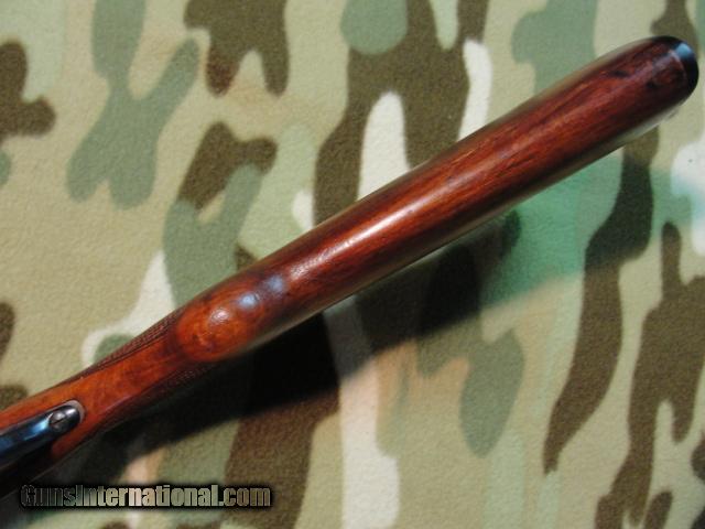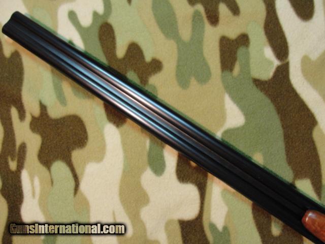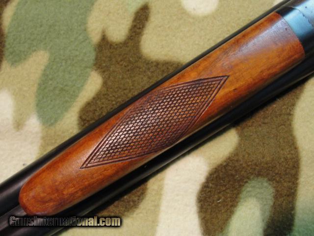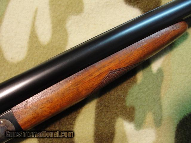 Description: Once in a while we encounter an old gun in superb condition; one that really catches our eye and makes us take notice...this is one of them. 30" barrels lock tight to the receiver, have mirror-shiny bores, 2-3/4" chambers, choked 0.012 and 0.040 (Mod/FULL). Wood and metal finish is just about perfect, with only some small, scattered nicks and handling marks. There are a few corrosion pimples on the outside of the trigger guard and some finish wear on the sides of the standing breeches. Case colors are strong and vibrant, even on the breech face, and there's most of the factory protective varnish remaining on the hardened surfaces. 13-7/8" pull over the factory original butt plate, with 2-3/4" drop at heel. Serial # 2392xx matches on action, barrels, fore end. 12ga gun, made 1926 by Lefever Arms Co, Ithaca, NY. Have a look at the pics, and call or email for additional details. $695+Shipping SOLD Curio/Relic: Yes |