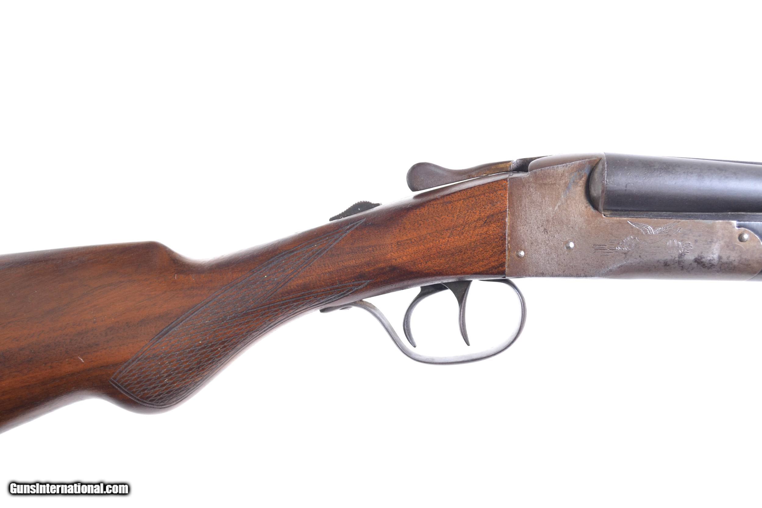 Description: LEFEVER- Nitro Special, 410 26” M/F, Round knob grip, serrated butt plate, splinter forend, extractor, brown patina on receiver. Good overall condition, available for immediate delivery. Inventory # 44373 5 lb., 14 oz. 13 3/8” x 2 “ 3 ¼” Price - $ 1,799 SOLD |