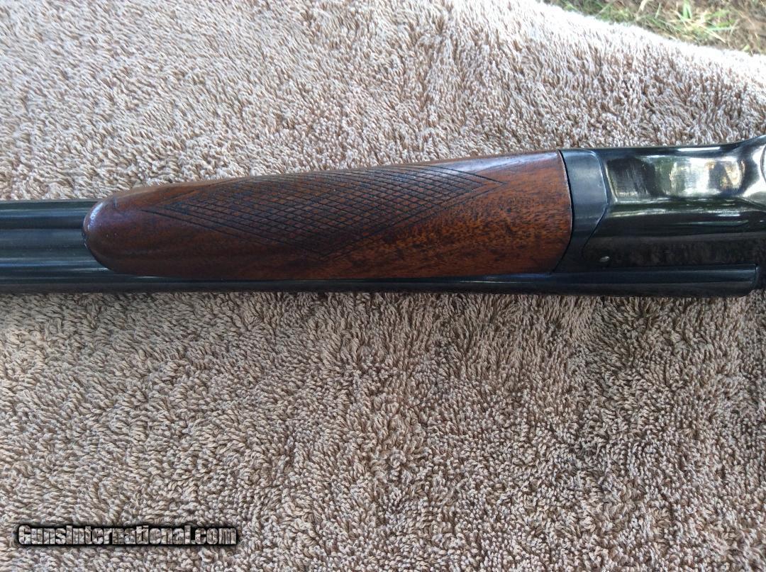 Description: SOLD PENDING FUNDS/APPROVAL This would have been my dream gun as a kid. It’s from 1925 based on its serial number. It has 26 inch barrels with a solid rib, brass bead and choked mod/full. Full seems to be pretty tight – I shot a round of skeet with it and when I managed to hit one, it crushed it like a solid 12 gauge hit with a skeet choke. It has extractors, double triggers, and an automatic safety. The stock has a 13 ½ inch length of pull to the front trigger and no cast. The metal has been refinished and maybe the wood as well - I think quite a while ago and pretty nicely – the lettering is still sharp though there is some waviness to the flat sections. Price is $750 plus actual shipping. Three day inspection with full refund less shipping if returned in the same condition as it was sent. I don’t have a case for it but it will be shipped securely. Feel free to contact me with question, comments, or requests for more pictures. Thanks SOLD |
