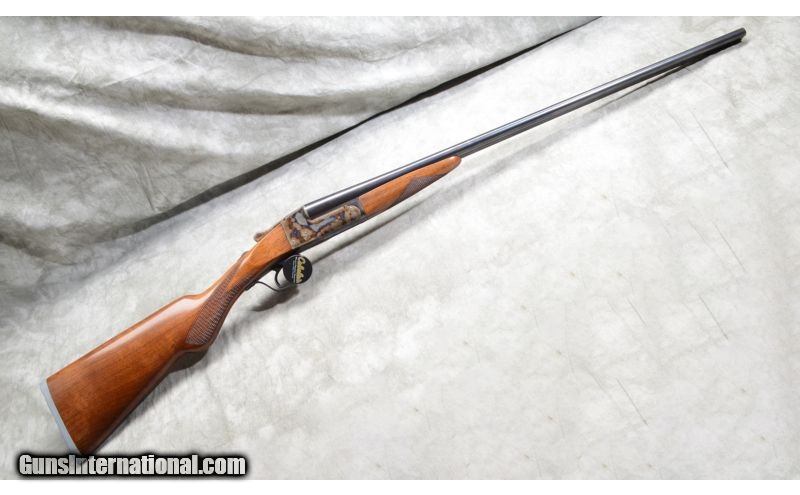 Description: SOLD Caliber Info: .410 Bore. Chambers: Measures 2-1/2 inch. Metal Condition: Very Good. Wood Condition: Very Good. Bore Condition: Shiny and bright. Barrels: 26 Inch - blue. Triggers: Double triggers. Stock: Walnut Prince of Wales. Stock Dimensions: 13 - 5/8 Inch LOP from the front trigger. Fore End: Mattching walnut splinter, Butt Pad: Synthetic palte. Weight: 6 lb. Sights: Gold bead on solid rib. Chokes: Fixed Full and Mod Item Location: Rogers,, MN |