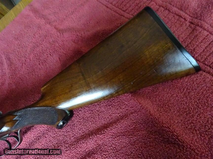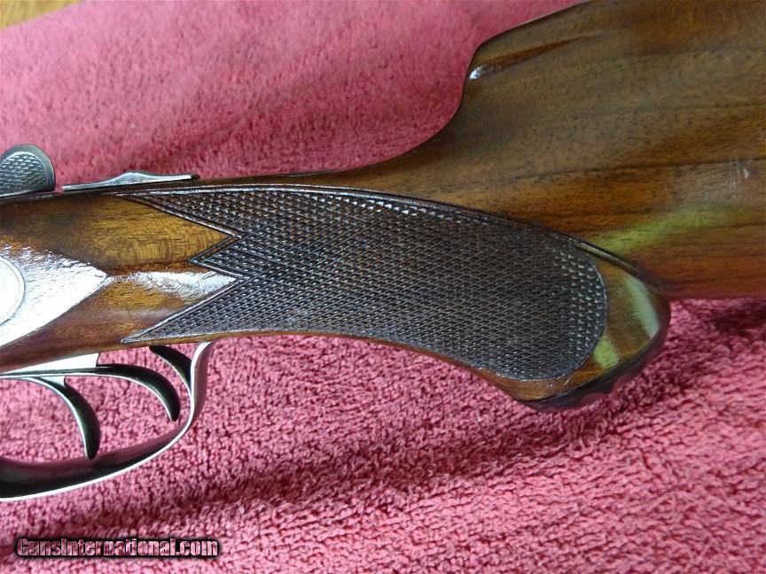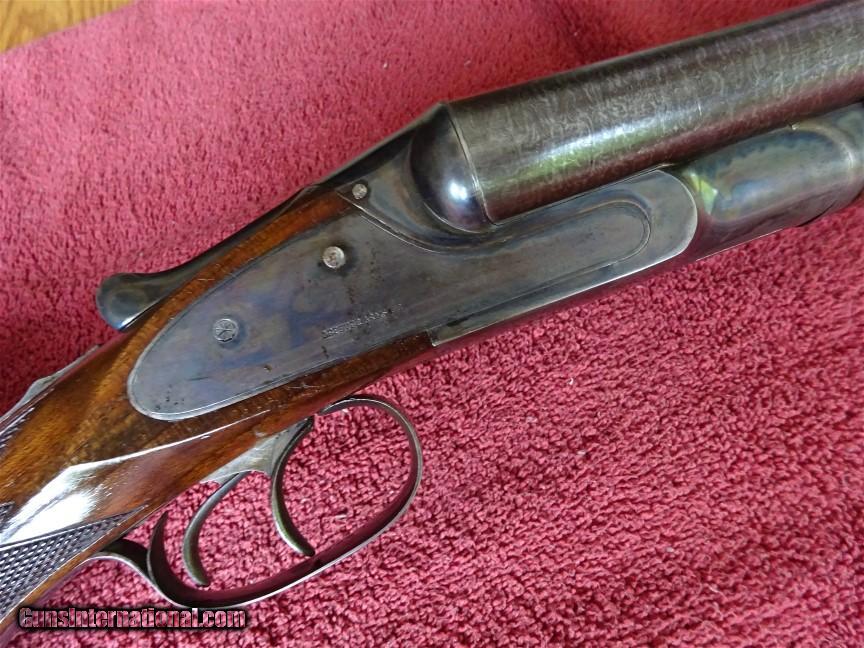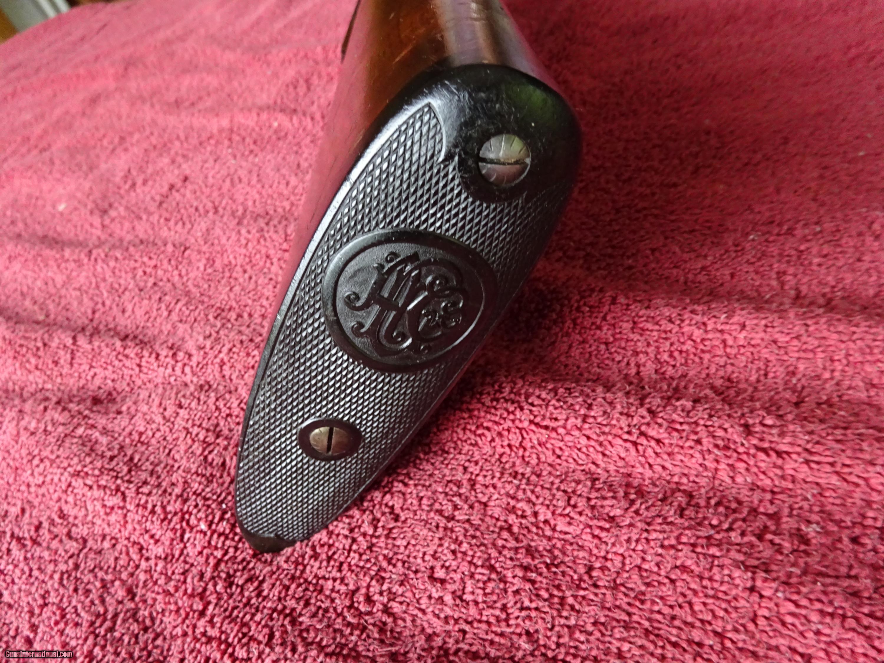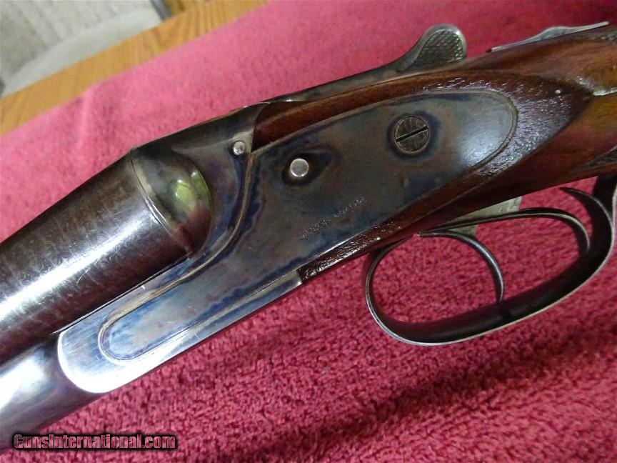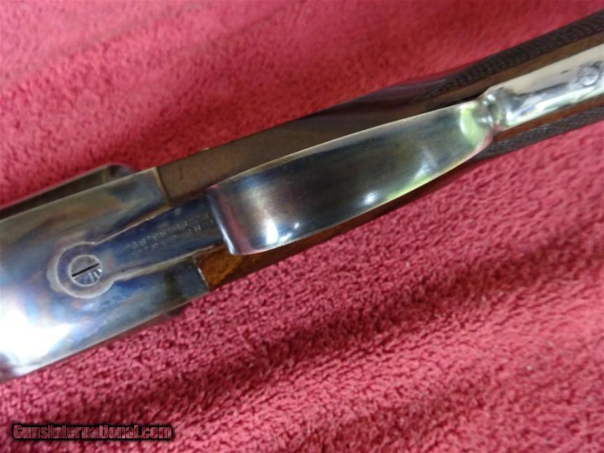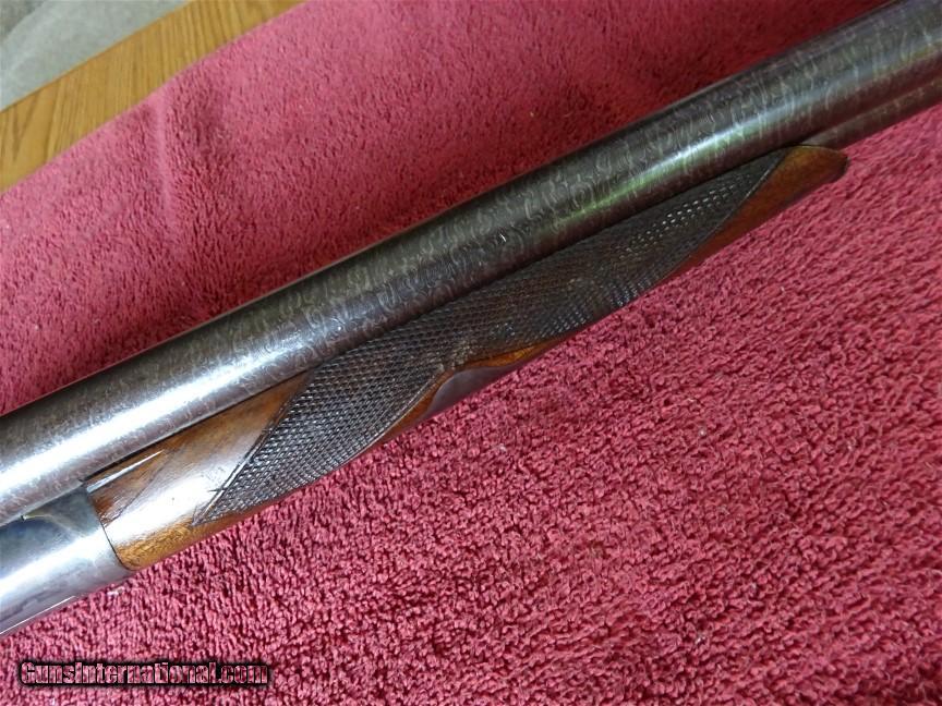 Description: LEFEVER, SYRACUSE, G GRADE 12 GAUGE, 28" DAMASCUS BARRELS, 2 1/2" CHAMBERS. MIRROR BRIGHT BORES, GORGEOUS BOLD DAMASCUS PATTERN, RIGHT IS FULL LEFT IMPCYL. BOLD VIVID CASE COLOR ON THE LOCKS, FRAME, TRIGGERGUARD AND FOREARM IRON, THE MOST ORIGINAL CASE COLOR I'VE SEEN ON A SYRACUSE GUN. COCKING INDICATORS, TOP LEVER TO THE FAR RIGHT, TIGHT AS NEW. PISTOL GRIP STOCK, SPLINTER FOREARM, NEARLY PERFECT CHECKING. MINOR HANDLING MARKS IN THE VARNISH. ORIGINAL GRIP CAP AND BUTTPLATE. SUPERB CONDITION, ALL ORIGINAL FINISH. UNUSUAL HIGH DIMENSIONS 1 1/2" X 2 1/4" X 14", 7 POUNDS EVEN. GREAT VINTAGE SHOT GUN. $1850.00 + $$45.00 Insured shipping to an FFL address. See all Pats listings We also have hundreds of pieces of ORIGINAL gun company advertising & memorabilia available for sale. We have no reprints or reproductions. Email for more information. SOLD Curio/Relic: Yes Serial Number: 47,xxx |