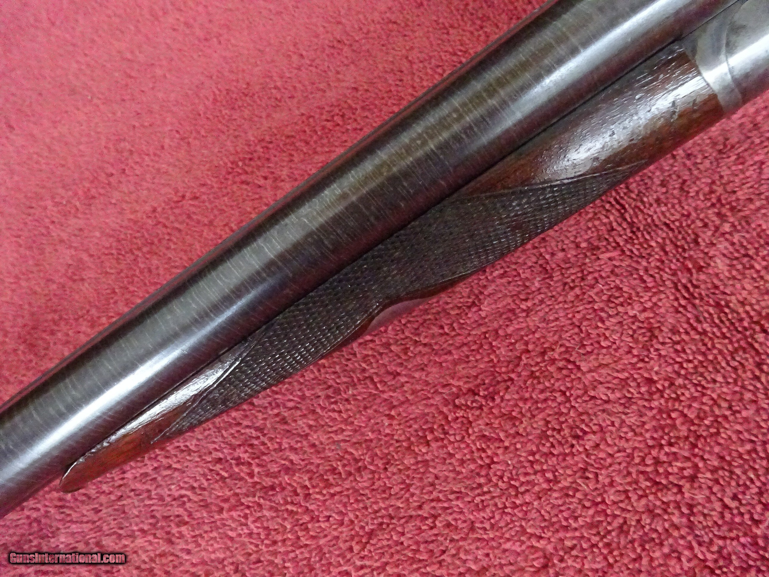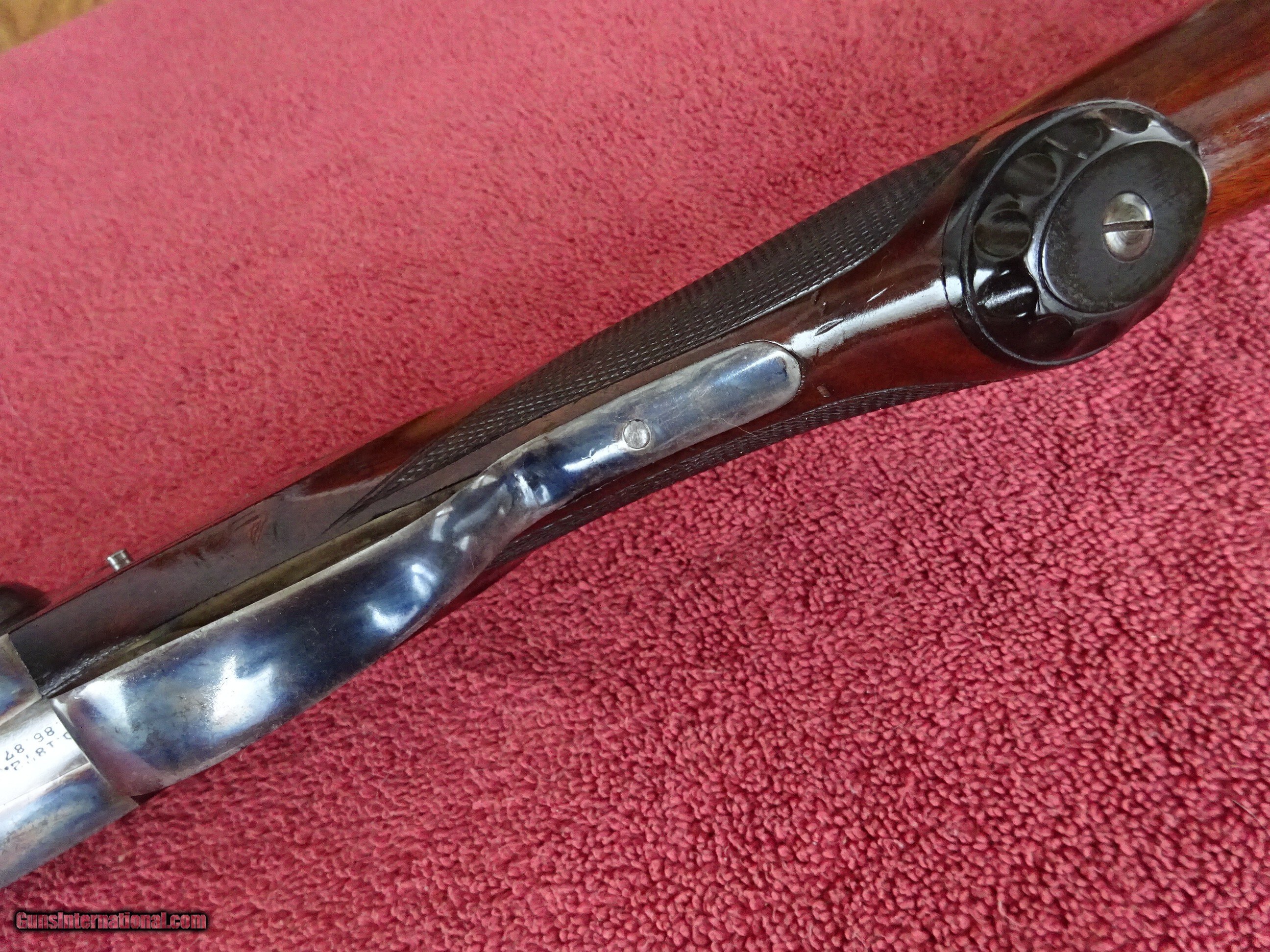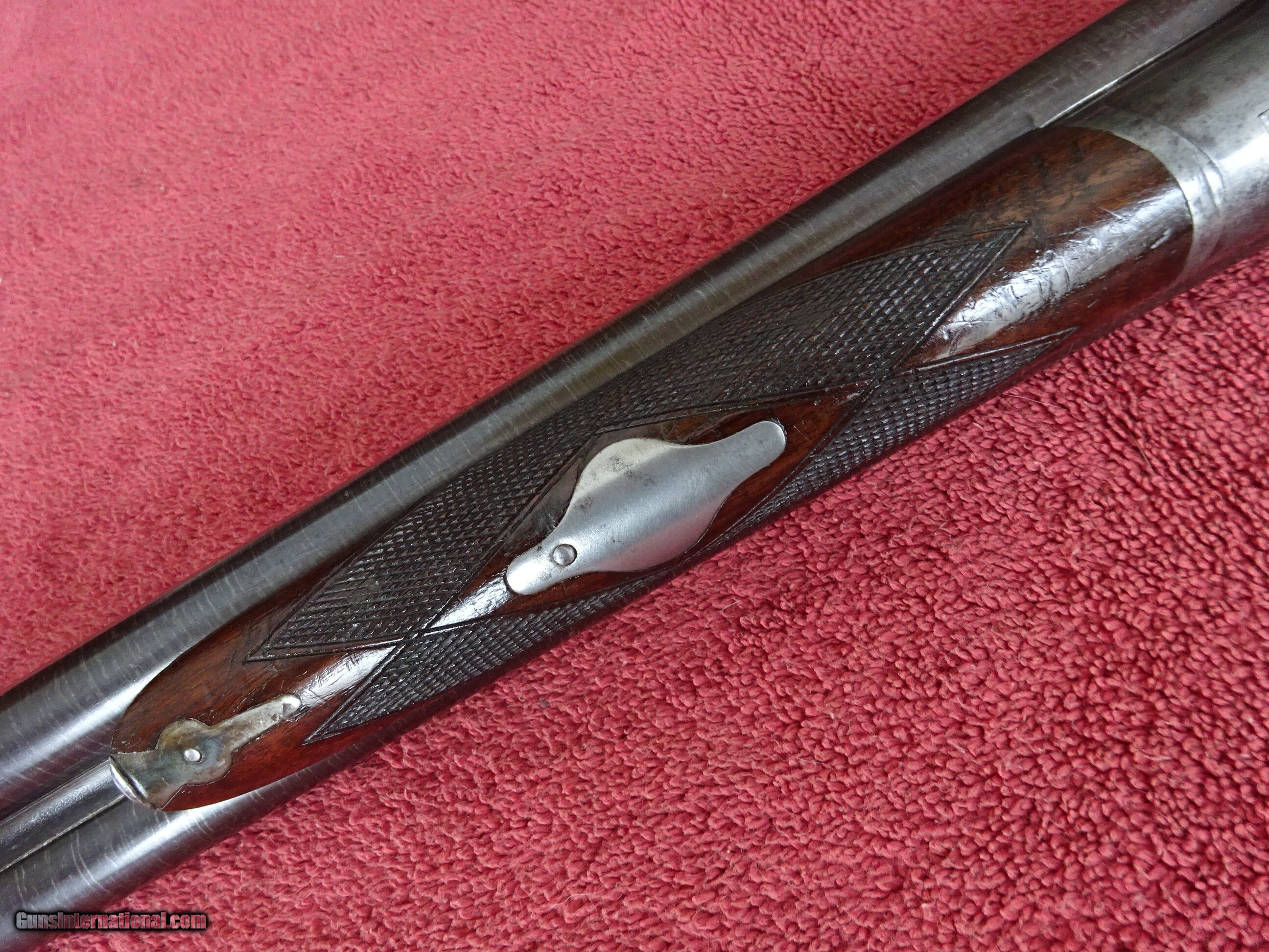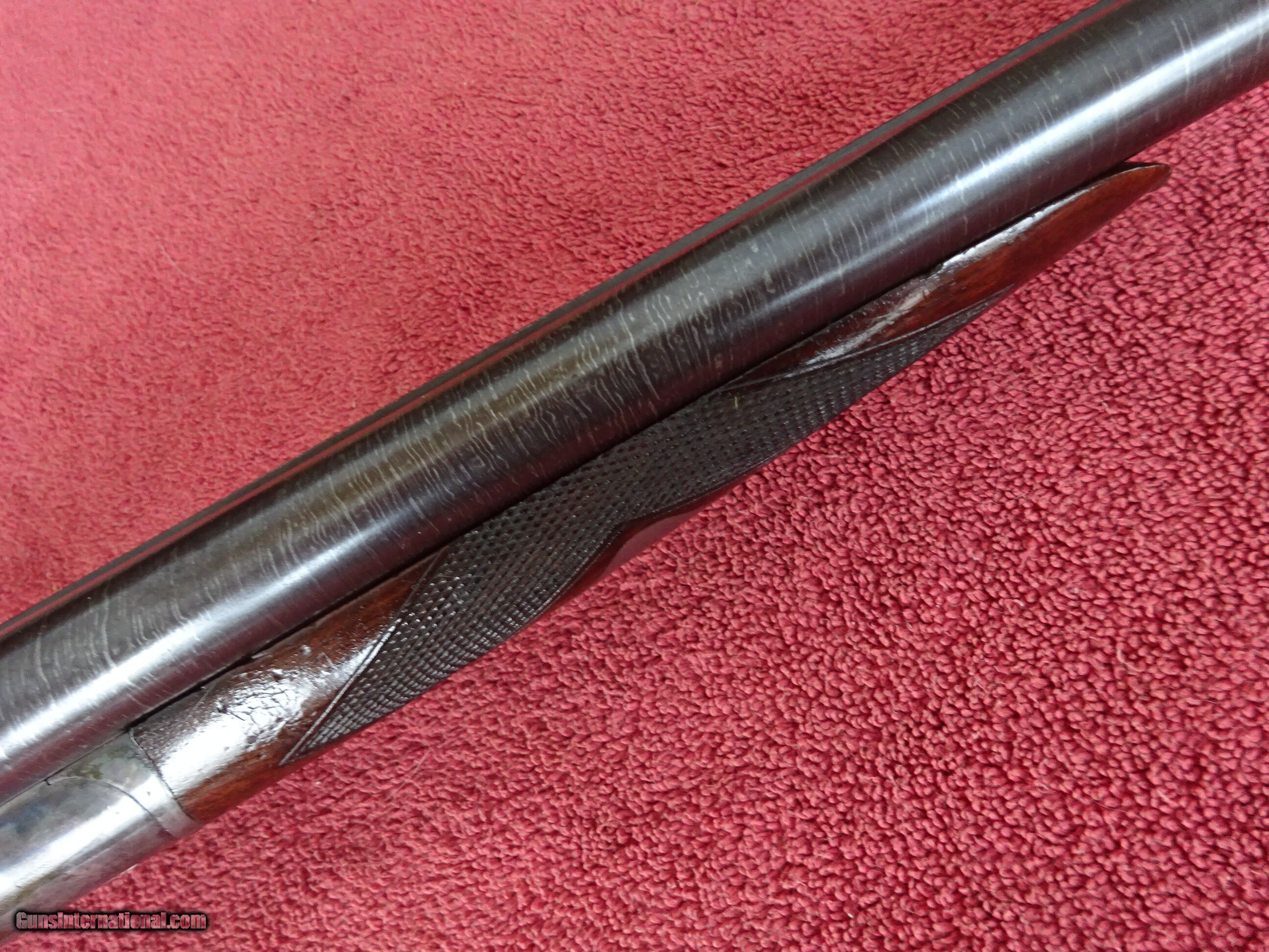 Description: LEFEVER SYRACUSE NY, H GRADE 12 GAUGE. 28" DAMASCUS BARRELS EXCELLENT BOLD DAMASCUS PATTERN, 100% COVERAGE. IMCYL AND MODIFIED, 2 1/2" CHAMBERS, SINGLE BEAD SIGHT, MIRROR PERFECT BORES, EXTRACTORS. SIDELOCK FRAME HAS 100% OF ITS BOLD VIVID CASE COLOR, TRIGGERGUARD ALSO HAS A 100% BOLD CASE COLOR. COCKING INDICATORS. PISTOL GRIP STOCK, SPLINTER FOREARM, NEAR PERFECT CHECKERING, EXCELLENT WOOD FINISH WITH NORMAL HANDLING MARKS IN THE VARNISH. ORIGINAL GRIP CAP AND MONOGRAMMED CHECKERED BUTTPLATE. GREAT DIMENSIONS, 1 1/2" X 2 1/2" X 14", 7 POUNDS 6 OUNCES. NEUTRAL CAST. MADE ABOUT 1901. ORIGINAL HIGH CONDITION LEFEVERS ARE EXTREMELY HARD TO FIND. $1750.00 + $70.00 Insured shipping to an FFL address. Layaway is available. See all Pats gun listings on this site! We also have hundreds of ORIGINAL gun company advertising & memorabilia pieces available for sale on our site SPORTINGCOLLECTIBLES. We have no reprints or reproductions. Email for more information. If you need to call, morning or evening is best, and please note the Seller's Inventory number. Curio/Relic: Yes Price: $1,750.00 Shipping: $70.00 Contact Seller |