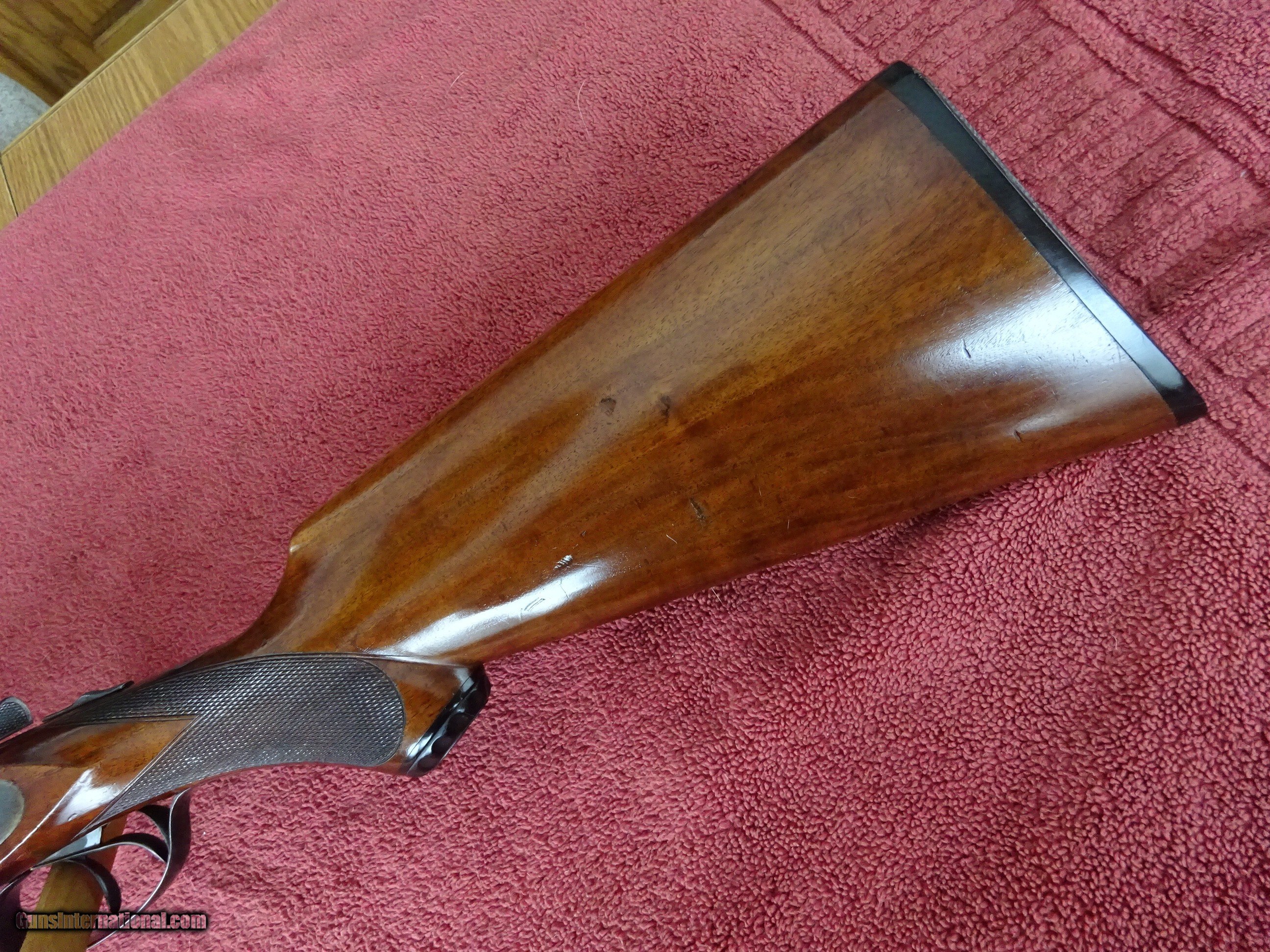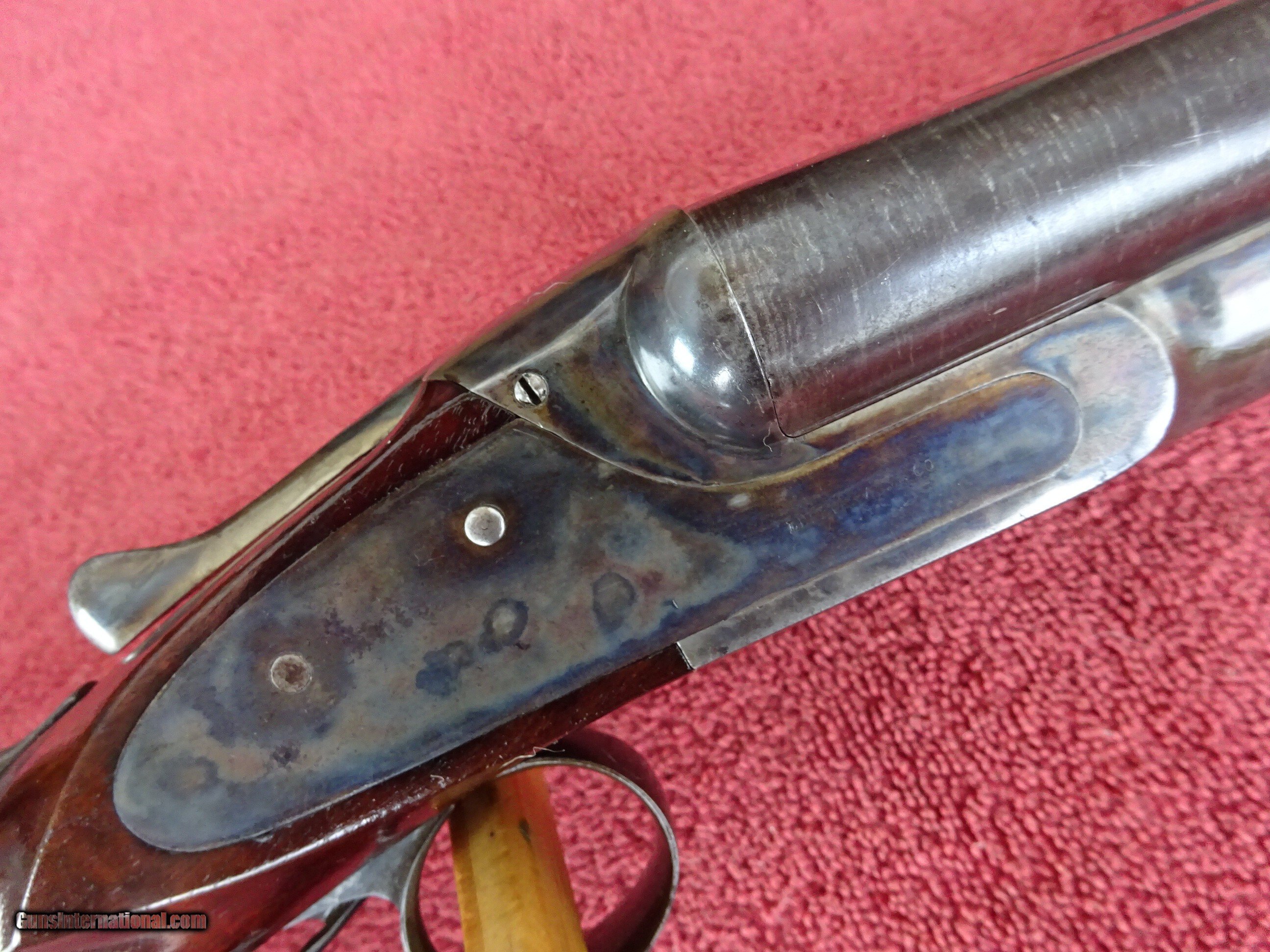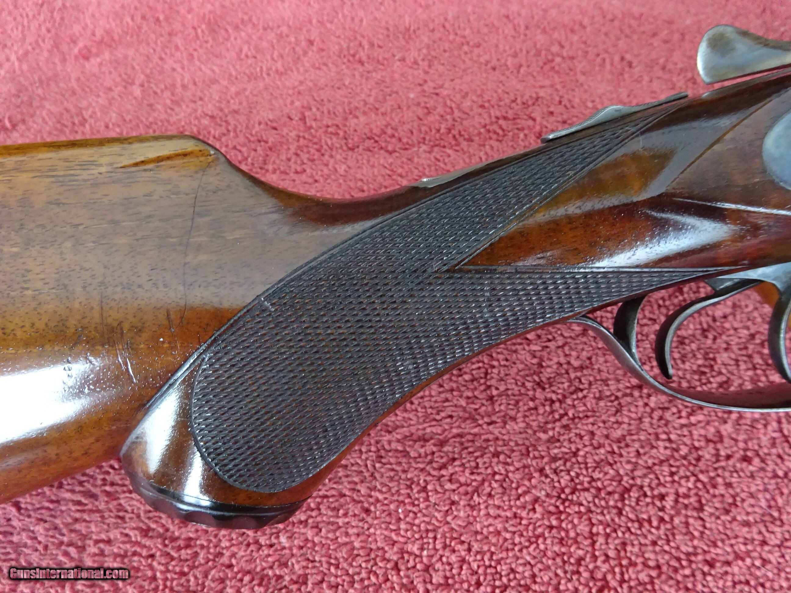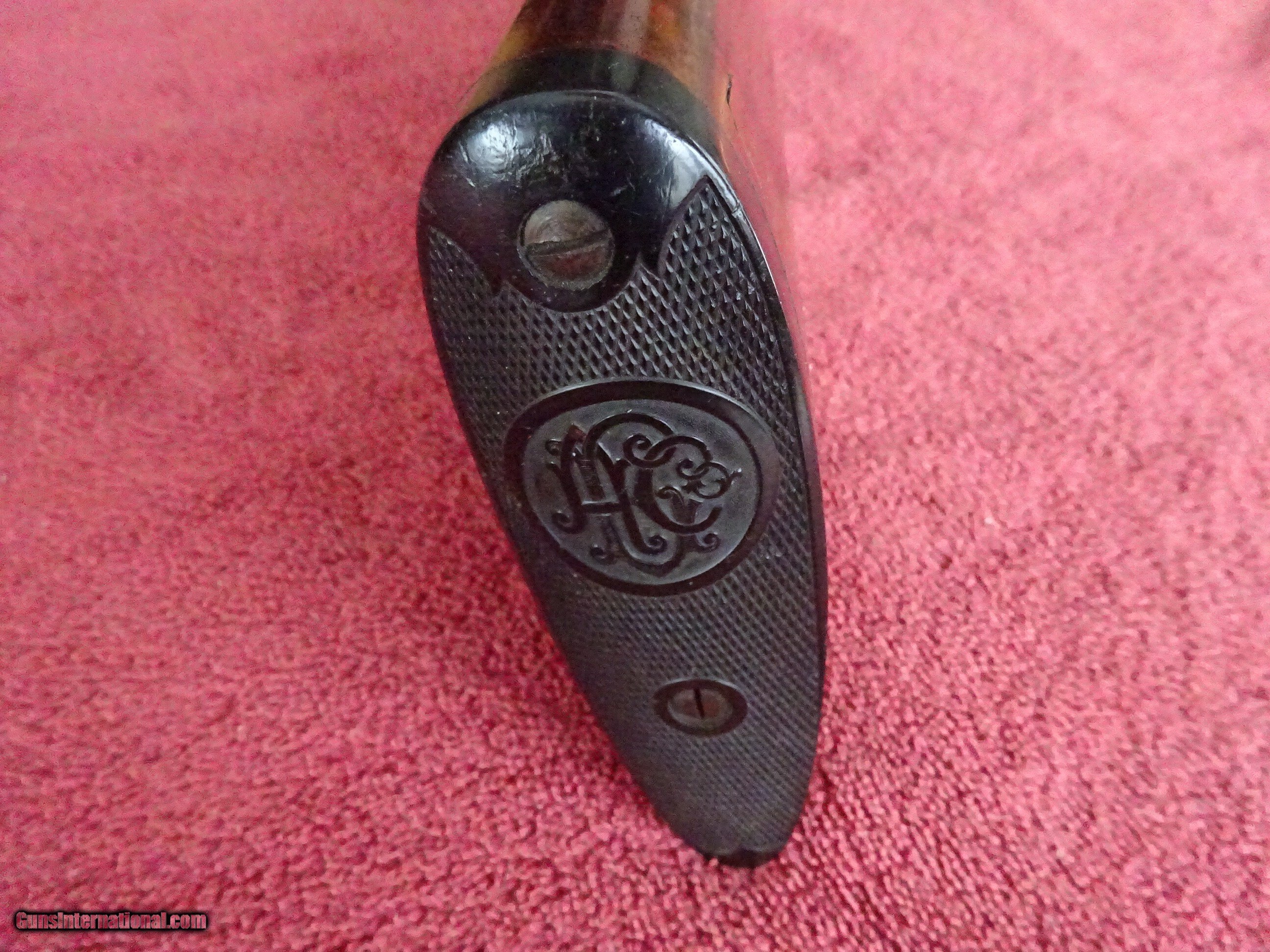 Description: LEFEVER SYRACUSE NY, H GRADE 12 GAUGE. 28" DAMASCUS BARRELS EXCELLENT BOLD DAMASCUS PATTERN, 100% COVERAGE. IMCYL AND MODIFIED, 2 1/2" CHAMBERS, SINGLE BEAD SIGHT, MIRROR PERFECT BORES, EXTRACTORS. SIDELOCK FRAME HAS 100% OF ITS BOLD VIVID CASE COLOR, TRIGGERGUARD ALSO HAS A 100% BOLD CASE COLOR. COCKING INDICATORS. PISTOL GRIP STOCK, SPLINTER FOREARM, NEAR PERFECT CHECKERING, EXCELLENT WOOD FINISH WITH NORMAL HANDLING MARKS IN THE VARNISH. ORIGINAL GRIP CAP AND MONOGRAMMED CHECKERED BUTTPLATE. GREAT DIMENSIONS, 1 1/2" X 2 1/2" X 14", 7 POUNDS 6 OUNCES. NEUTRAL CAST. MADE ABOUT 1901. ORIGINAL HIGH CONDITION LEFEVERS ARE EXTREMELY HARD TO FIND. $1750.00 + $70.00 Insured shipping to an FFL address. Layaway is available. See all Pats gun listings on this site! We also have hundreds of ORIGINAL gun company advertising & memorabilia pieces available for sale on our site SPORTINGCOLLECTIBLES. We have no reprints or reproductions. Email for more information. If you need to call, morning or evening is best, and please note the Seller's Inventory number. Curio/Relic: Yes Price: $1,750.00 Shipping: $70.00 Contact Seller |