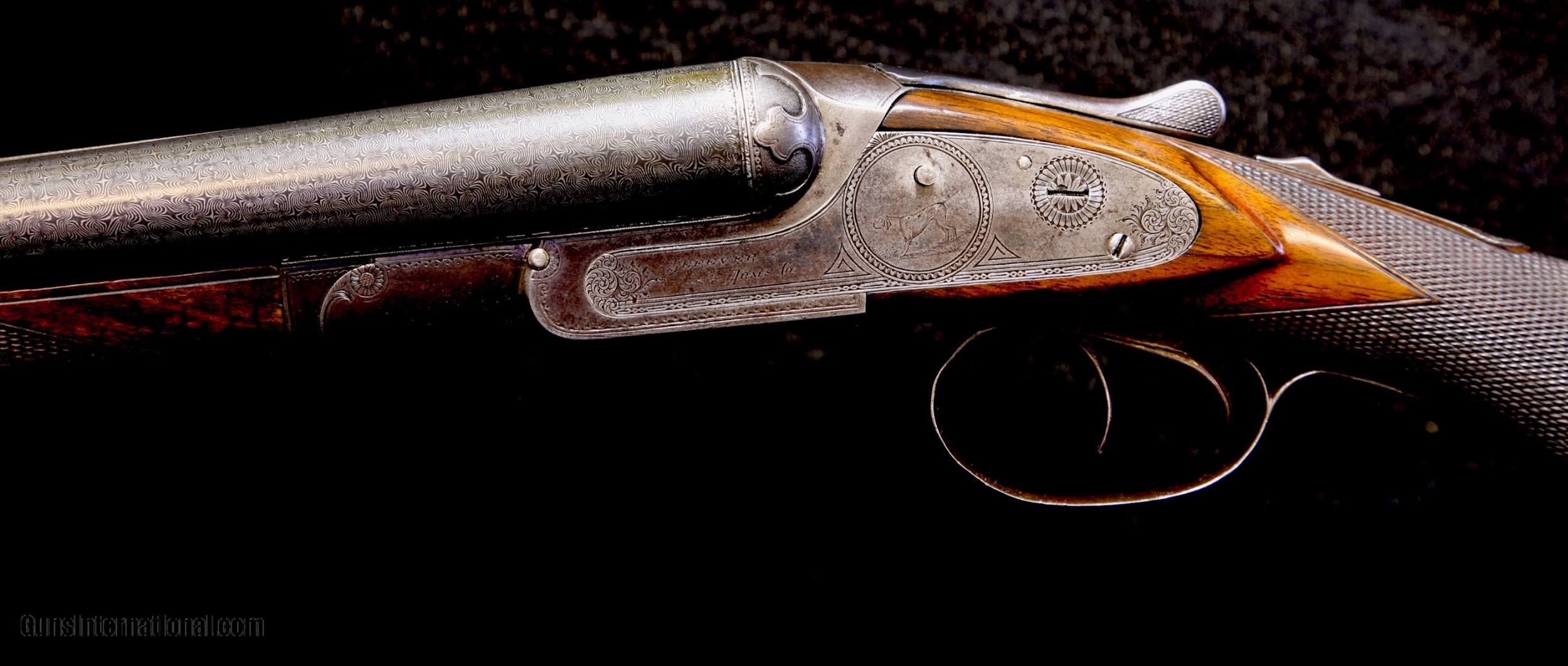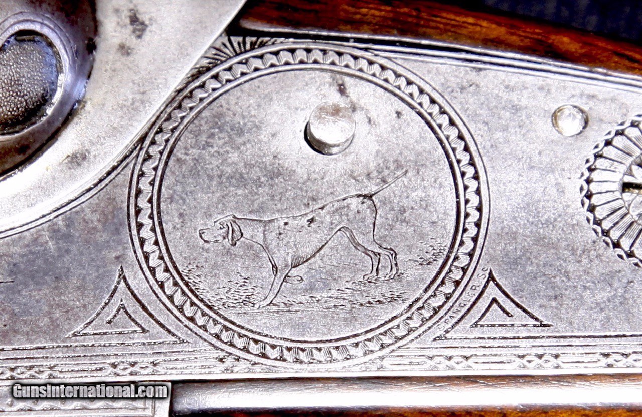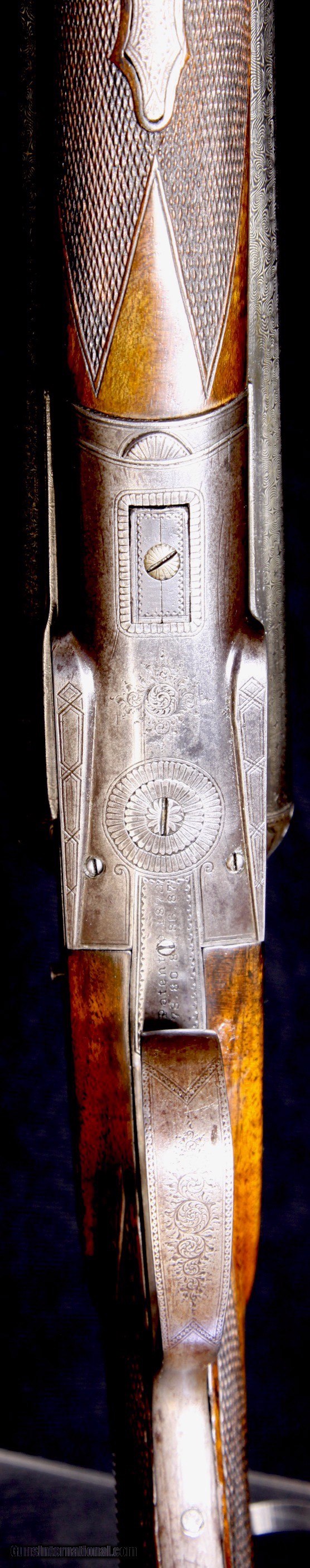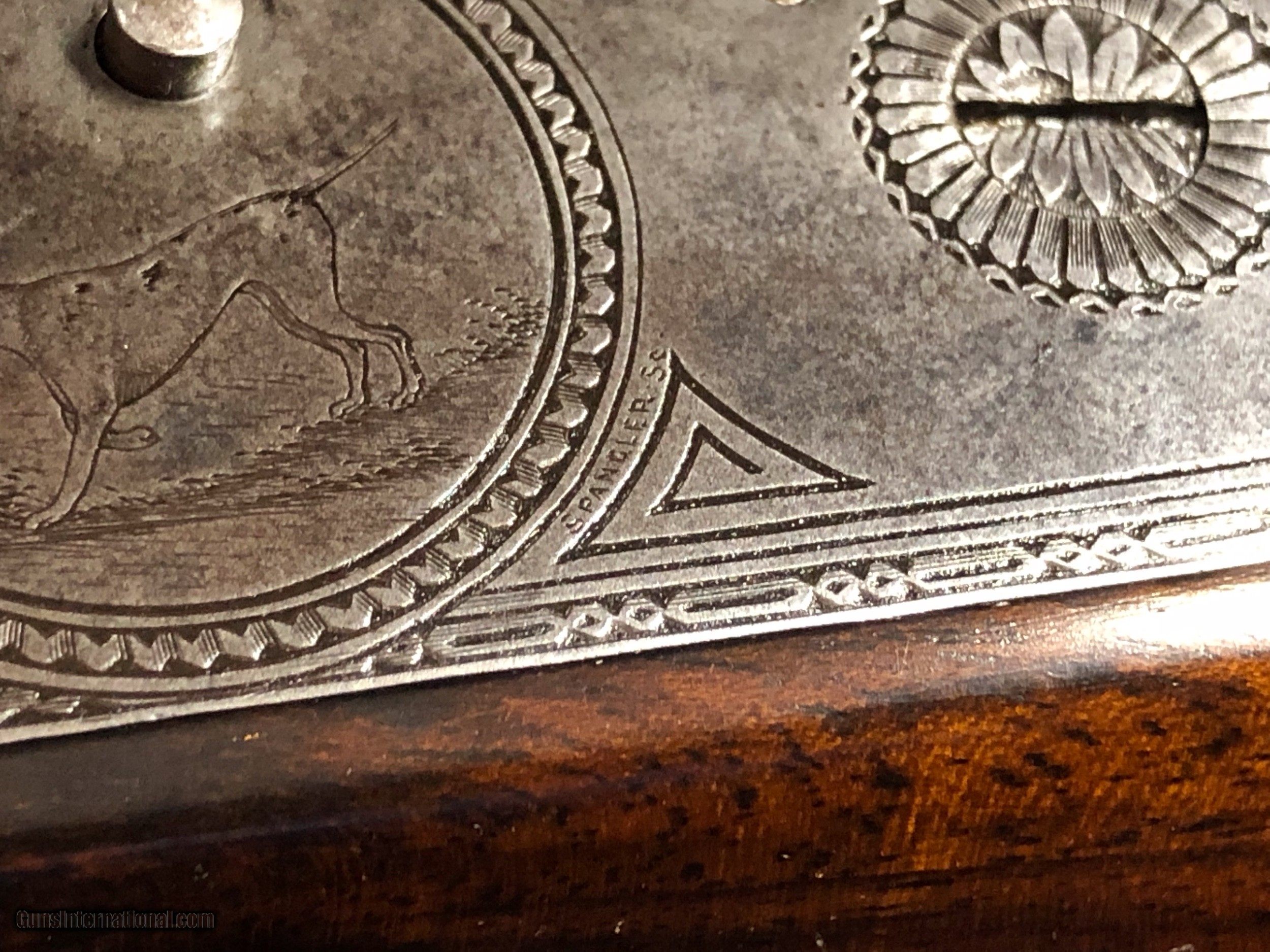 Description: Serious students of the Lefever Arms Co. know that finding an example of an engraver signed gun is nearly impossible. We are pleased to present this fine C Grade Lefever 12 bore gun that is signed by "Spangler" on the left lockplate. The gun is nicely engraved in early C Grade pattern with dogs on sides and bursts of scroll on bottom and on trigger guard. The gun was made with capped pistol grip, double triggers, extractors, auto safety, and splinter forend with early push button release which is nicely engraved. The pivot top opener is also nicely engraved. Fences are nicely sculpted. The 30" damascus barrels have a rich damascus pattern which has been professionally restored and the gun has a unique top rib which is matted in only one direction. The gun has 2-5/8" chambers and has the original Lefever Arms Co. Monogrammed buttplate. Overall, the gun is in nice condition. As mentioned above, the barrels have been restored and show bright pattern. Bores with some minor roughness but nothing serious in terms of pitting. The action retains about 25%inal case color, mostly toned. Stocks have been expertly restored and are starting to show some subsquent age. If you have ever wanted a nice shootable early Lefever with some unique features, here it is! This gun is priced at $3495 plus shipping. No FFL or C&R needed on this one as it is an antique. Please dont hesitate to contact me at (704) 280-2382 or via PM on this site with any questions or reasonable offers. SOLD Antique: Yes Manufacturer: Lefever Model: C Grade Bore: 12 Bore Chambers: 2-5/8 Ejectors: Extractors Condition: Excellent Metal Condition: Excellent Wood Condition: Excellent Bore Condition: Minor roughness Barrels: Damascus 30 Triggers: Double Triggers Stock: Capped pistol grip Stock Dimensions: 13-1/2" LOP Over original Buttplate Stock Comb: 1-3/4" DAC Stock Heel: 3" DAH Rib: Matted concave rib Weight: 7lbs 2oz Choke Left: .024 (Modified) Choke Right: .039 (Full) Engraving: Signed by the Engraver!~ |