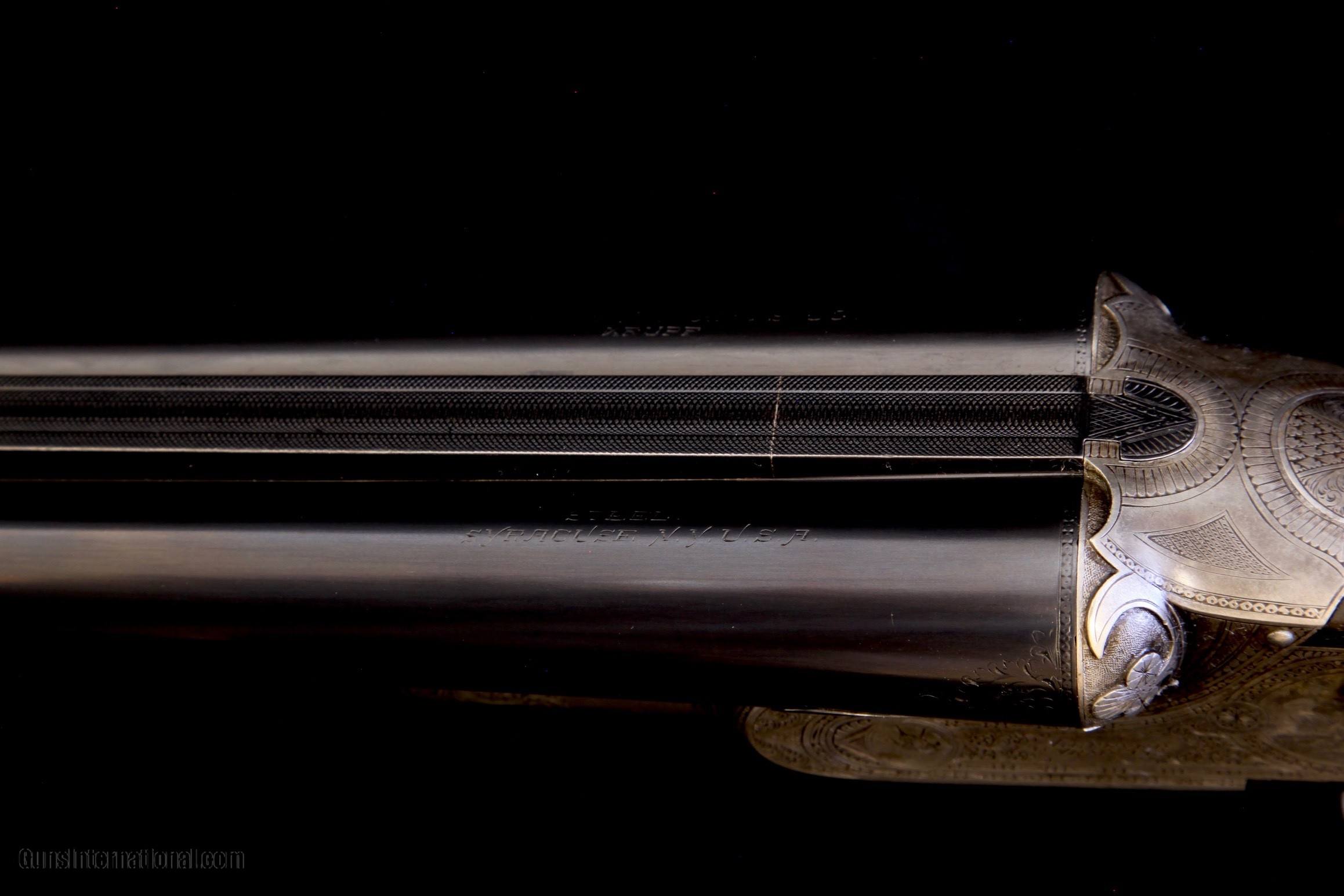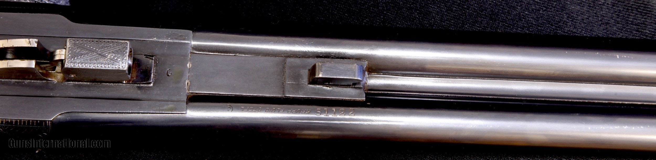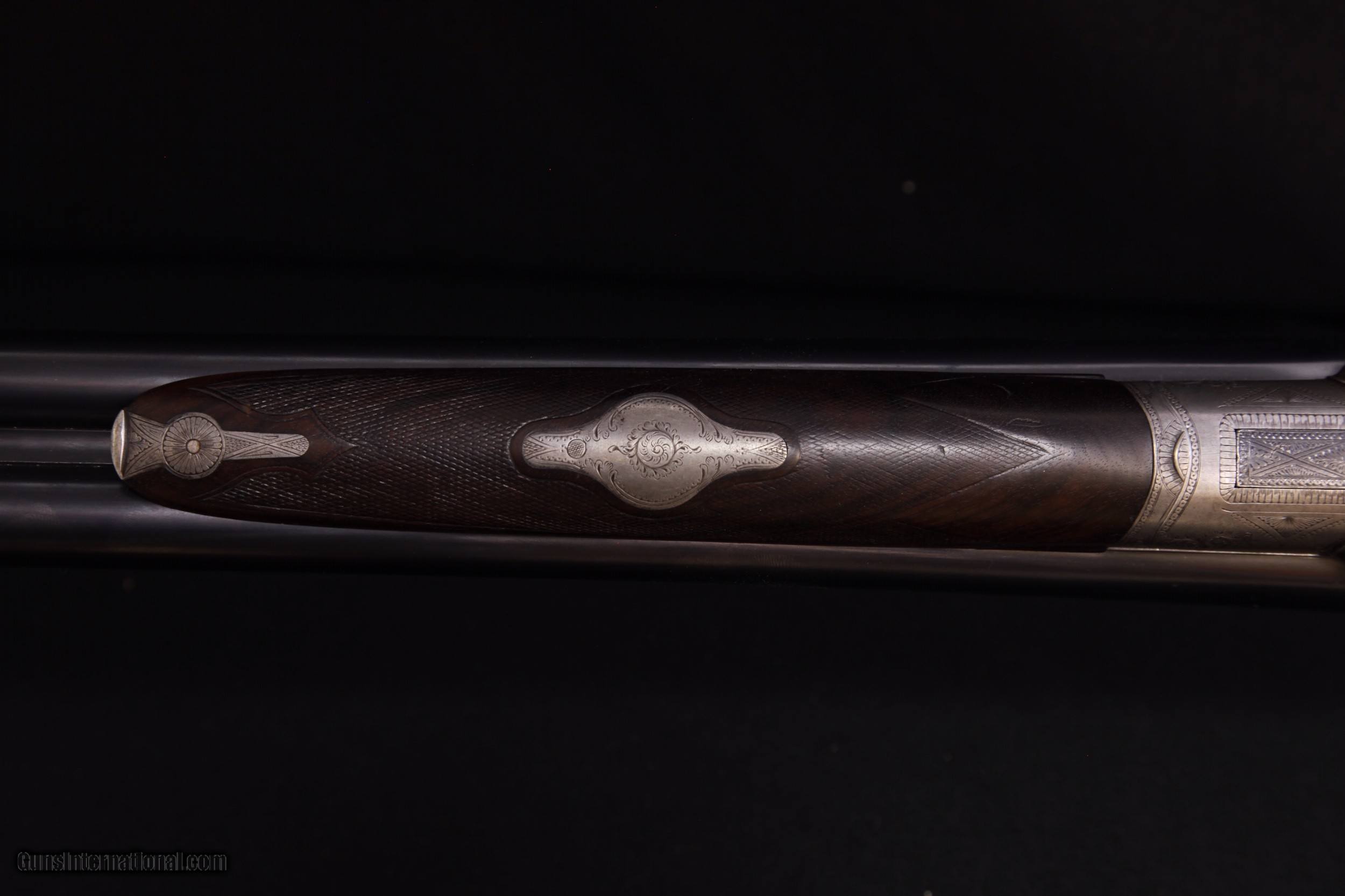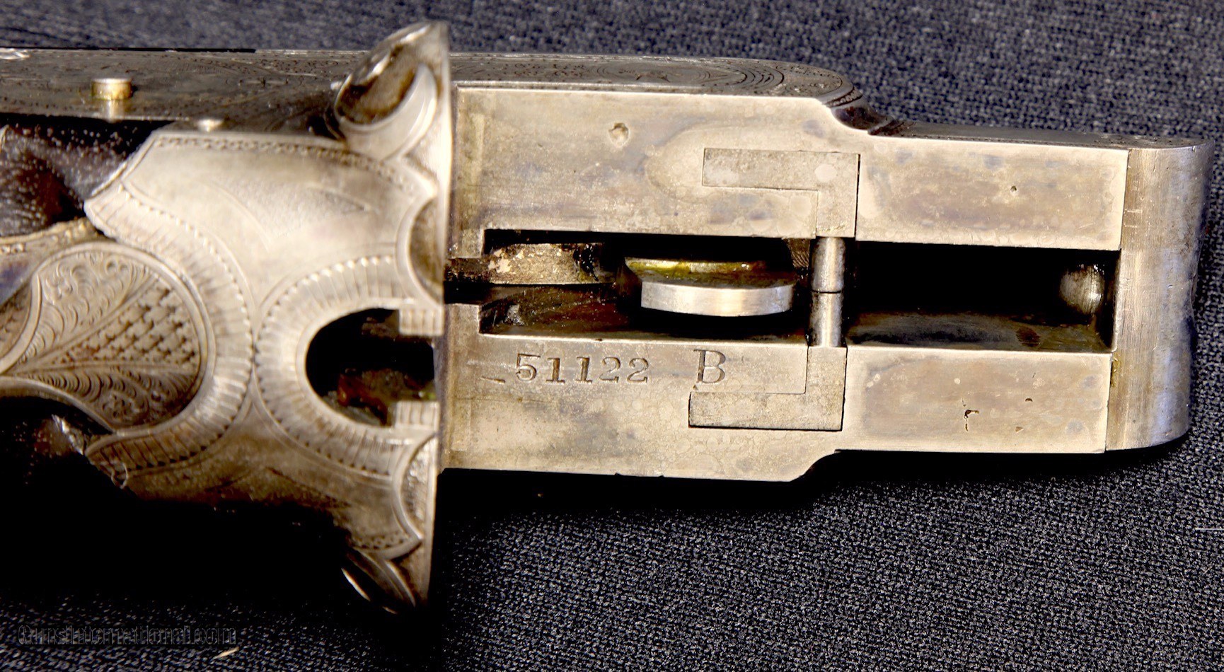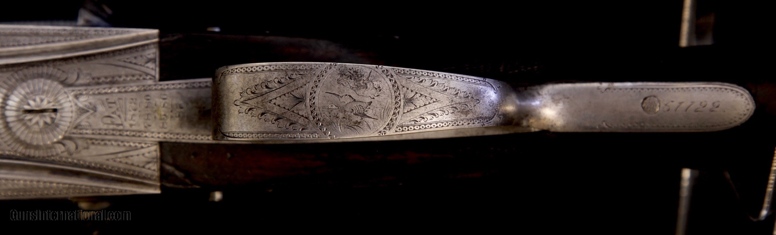 Description: We don't find many original Krupp steel barreled B Grade Lefevers and this one is wonderful. This gun came from the Dana Tauber collection about 20 years ago, has sat in the collection of a private Southern Gentleman since, and has never been offered publicly. The gun is in the 51,xxx SN range and has classic engraving that we love about Lefevers. Made with 30" Krupp steel barrels, splinter forend, gold plated checkered double triggers. The gun has a capped pistol grip buttstock with striking European walnut. The figure is intense and beautiful. The gun was made with an original Montel Carlo (rare on a Lefever) and has KILLER modern dimensions with long LOP. The gun retains the original lined horn buttplate. Photos tell most of the story. Barrels have been reblued and retain nearly all of their expert rust blued finish. Action retains about 20% original color. Engraving is crisp. Wood has some minor marks and hunting bumps, but nothing offensive. Checkering is all fully visible, though thinned a touch on the forend. Bores are brilliant and shiny. Ejectors are timed, and mechanics are crisp. Here are the technical details on this great gun: LOP- 15-1/8" over original lined horn Buttplate DAC- 1-1/2" DAH- 1-3/4 Drop at rear of Monte Carlo- 2-1/2" Weight: 7lbs 10oz Chambers- 2-3/4" Rt. Barrel - .729 with .019(modified) choke Left Barrel- .729 with .039(full) choke This gun is murderous to pheasants. I am asking $SOLD for the gun. Please don't hesitate to contact me with any questions via PM on this site or at (704) 280-2382. If you have been looking for a nice Lefever with LONG LOP, you know this is an opportunity that will not knock again any time soon.... SOLD Curio/Relic: Yes Manufacturer: Lefever Model: BE Serial Number: 51122 Bore: 12ga Chambers: 2-3/4 Ejectors: Yes Condition: Excellent Barrel Type: Krupp Fluid Steel Triggers: Gold Plated Double Triggers |