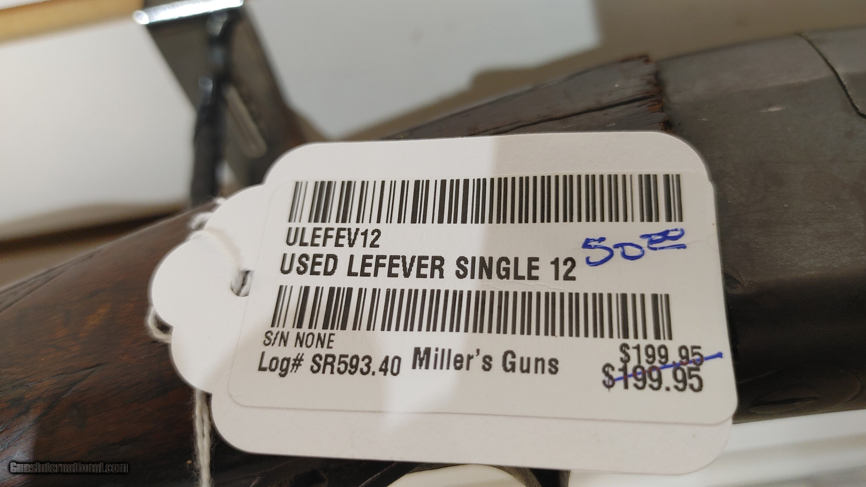 Description: Used Lefever Single 12 30" bbl cracked stock firing pin seems to work gun smith special needs work parts gun only no returns no inspections Buyer pays shipping Millers Gun Center Located in New Castle, Delaware "Home of TAX-Free shopping" No Credit Card Fees Send Gun international inquiry and then call 302-328-9747 to complete your purchase SOLD Serial Number: NONE |