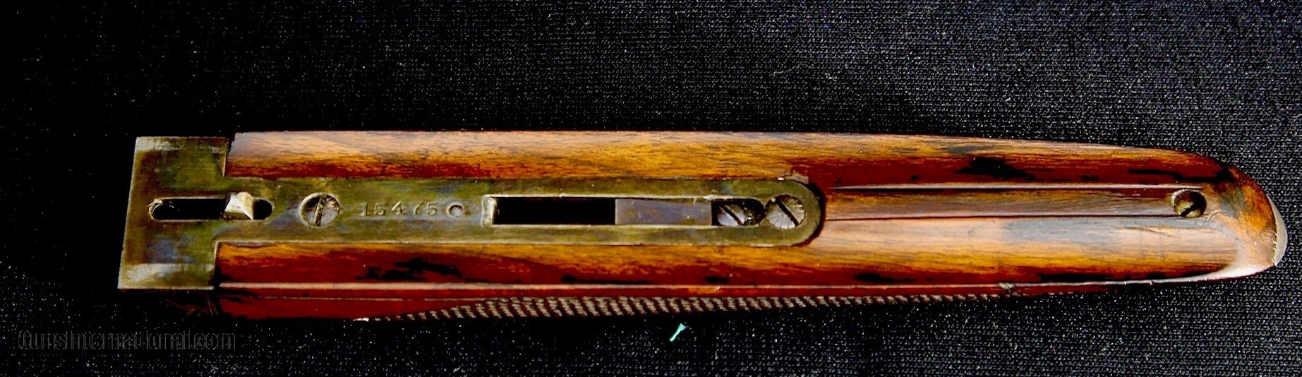 Description: Fine early Lefever 16ga F Grade with lots of original condition. These early guns are hard to find in nice original shape and this gun is absolutely no slouch. It retains a wonderful amount of original finish. Made with double triggers, splinter forend, capped pistol grip and original Lefever Arms Co. monogrammed buttplate. Made with 28" barrels, original 2-1/2" chambers. The barrels retains about 95% original pattern, bores are mostly bright and shiny with only a few light pits ahead of the right chamber area. The gun retains more than 1/2 of the original case color which is quite nice. This gun is priced at $3195 plus shipping. It is antique and can be shipped directly to your door. If you have any questions, or wish to make a reasonable offer, please dont hesitate to contact me via PM on this site or at (704) 280-2382 SOLD Antique: Yes Manufacturer: Lefever Arms Co. Bore: 16 Bore Chambers: 2-1/2 Ejectors: Extractors Metal Condition: Excellent Wood Condition: Excellent Bore Condition: Excellent Barrel Type: Damascus Triggers: Double Triggers Stock Comb: 1-13/16 Stock Heel: 2-7/8 Fore End: Splinter with push button opener LOP: 13-5/8 Weight: 6lbs 1oz Choke Left: .023 (Imp. Mod) Choke Right: .025 (Imp. Mod) Minimum Wall Thickness Left: .025 Minimum Wall Thickness Right: .021 |