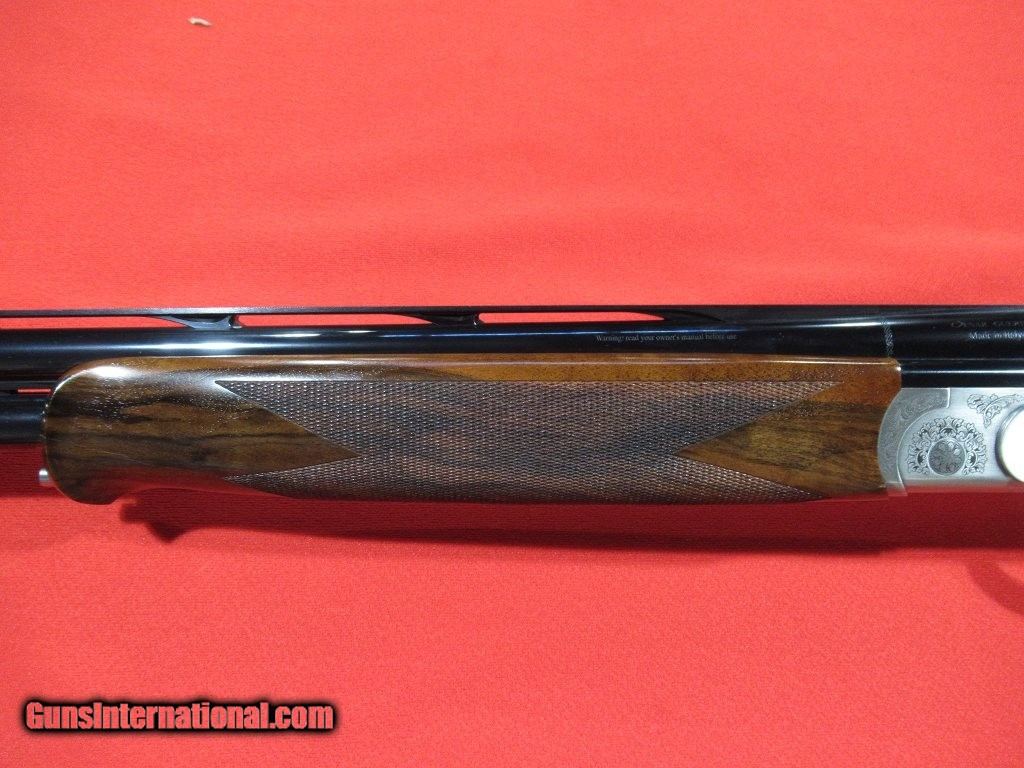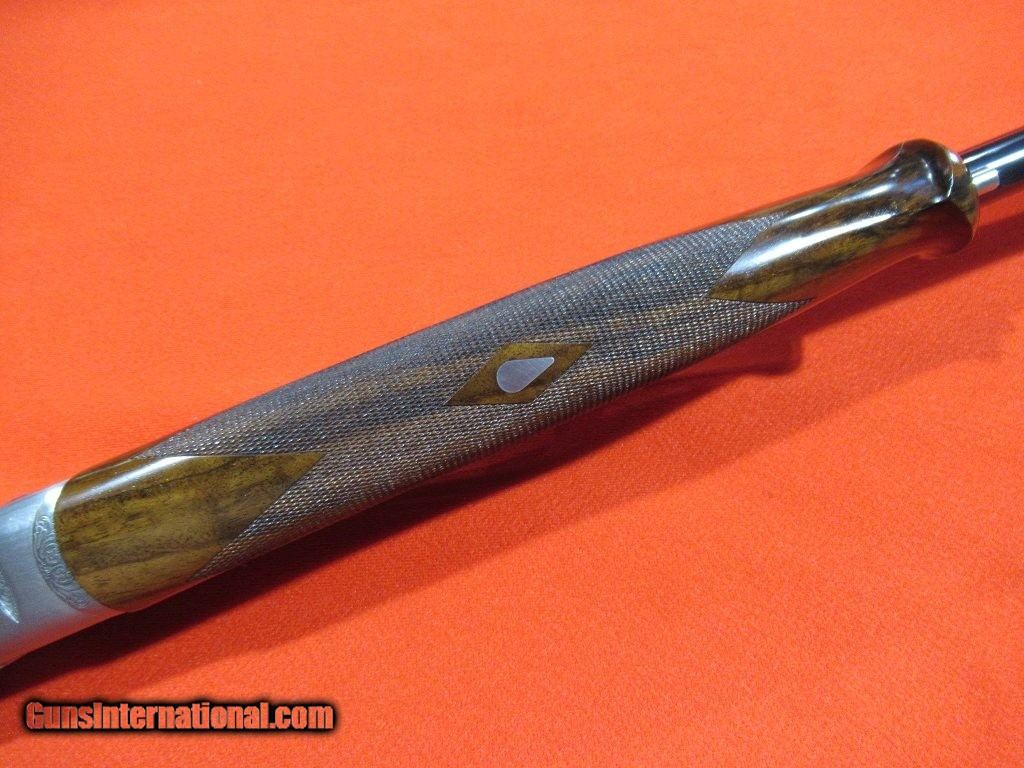 Description: Coin finished receiver, nicely figured stock and schnabel forend, vented side ribs, parallel flat rib, six extended Maxis choke tubes, adjustable trigger, factory hard case. FACTORY LEFT-HAND STOCK. SOLD |