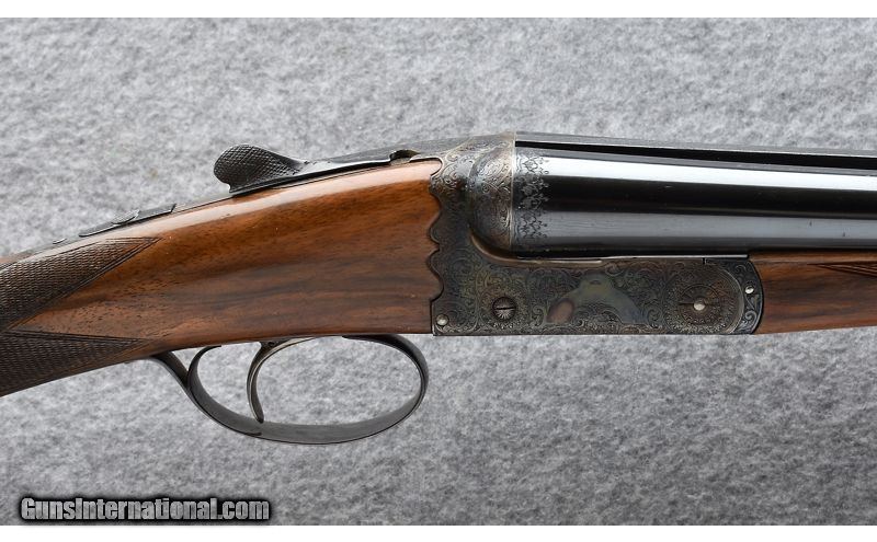 Description: This Fabio Zanotti BLE 20 bore was manufactured in 1963 and imported by Abercrombie & Fitch. It features a case-hardened Anson & Deeley boxlock action hand-engraved in low-relief rose & scroll, a single non-selective trigger, 26" Dovetail-lump barrels with Southgate Ejectors, and a fast-handling English stock. 20 Gauge SOLD Curio/Relic: Yes Chambers: 2 3/4 Metal Condition: "Shows light handling marks, but remains very good, overall. Wood Condition: "Good, overall, with a few nicks and dings. Bore Condition: Bright. Barrels: 26 Triggers: Single Non-selective. Stock Dimensions: 14" LOP; 1 3/8" DAC; 2" DAH. Cast on for left-hand shooters. Fore End: Splinter with Anson Release. Weight: 5 lb. 10 oz. Sights: Single bead atop tapered rib. Chokes: "Fixed chokes measure .015"" /.021"". Factory stamps show Mod/Mod, but .015"" is approaching Improved Cylinder. Item Location: Post Falls, ID |