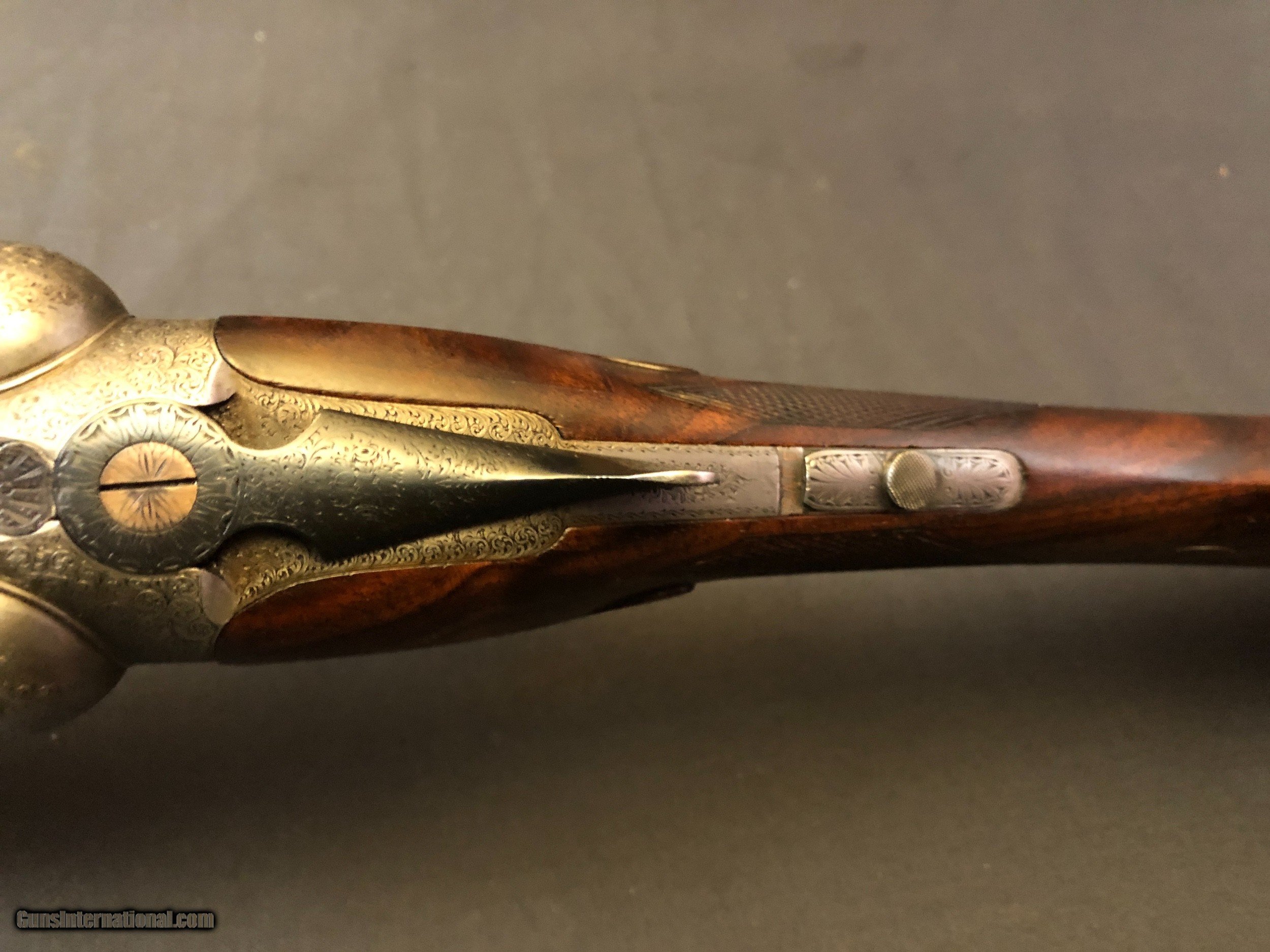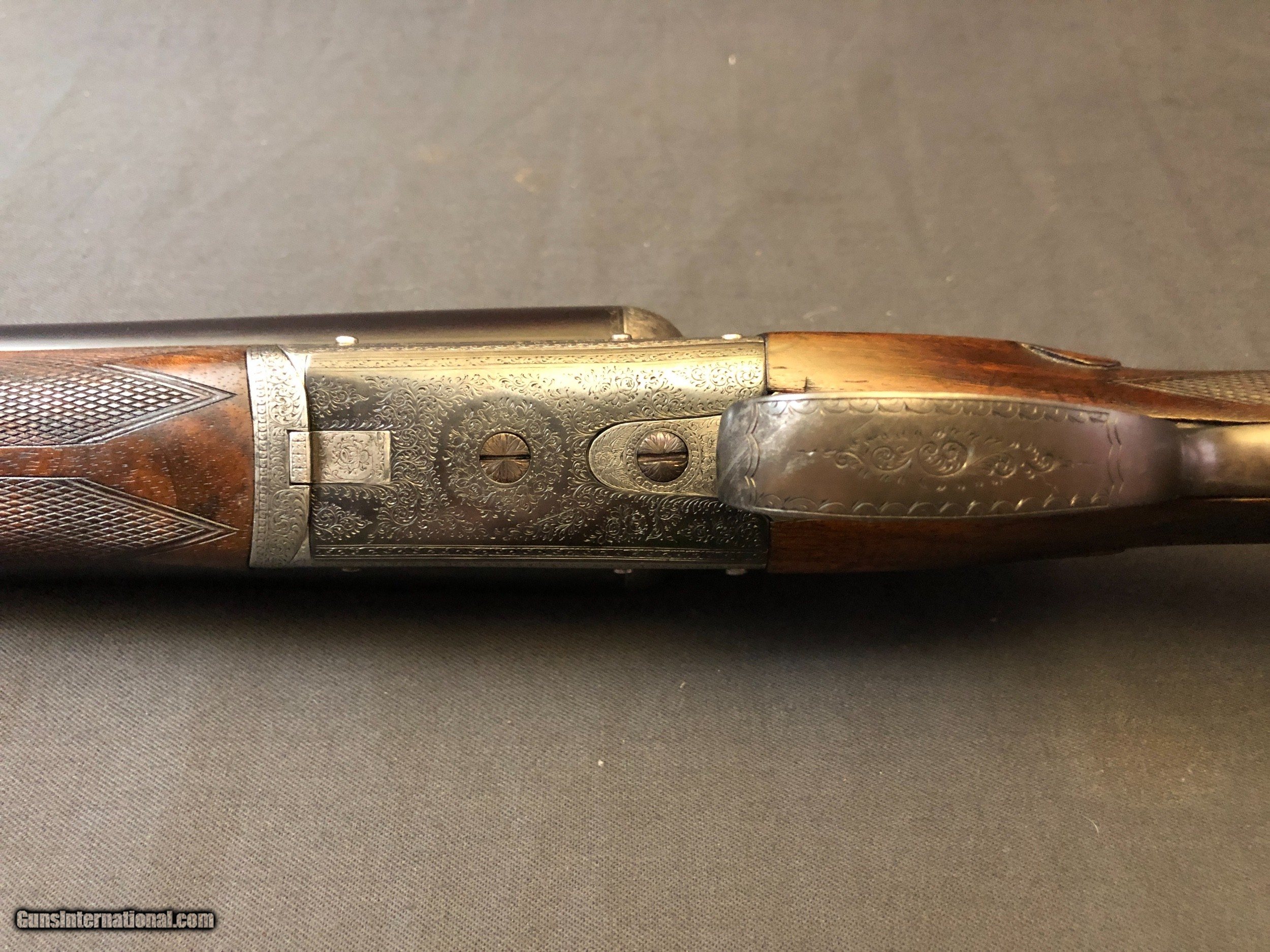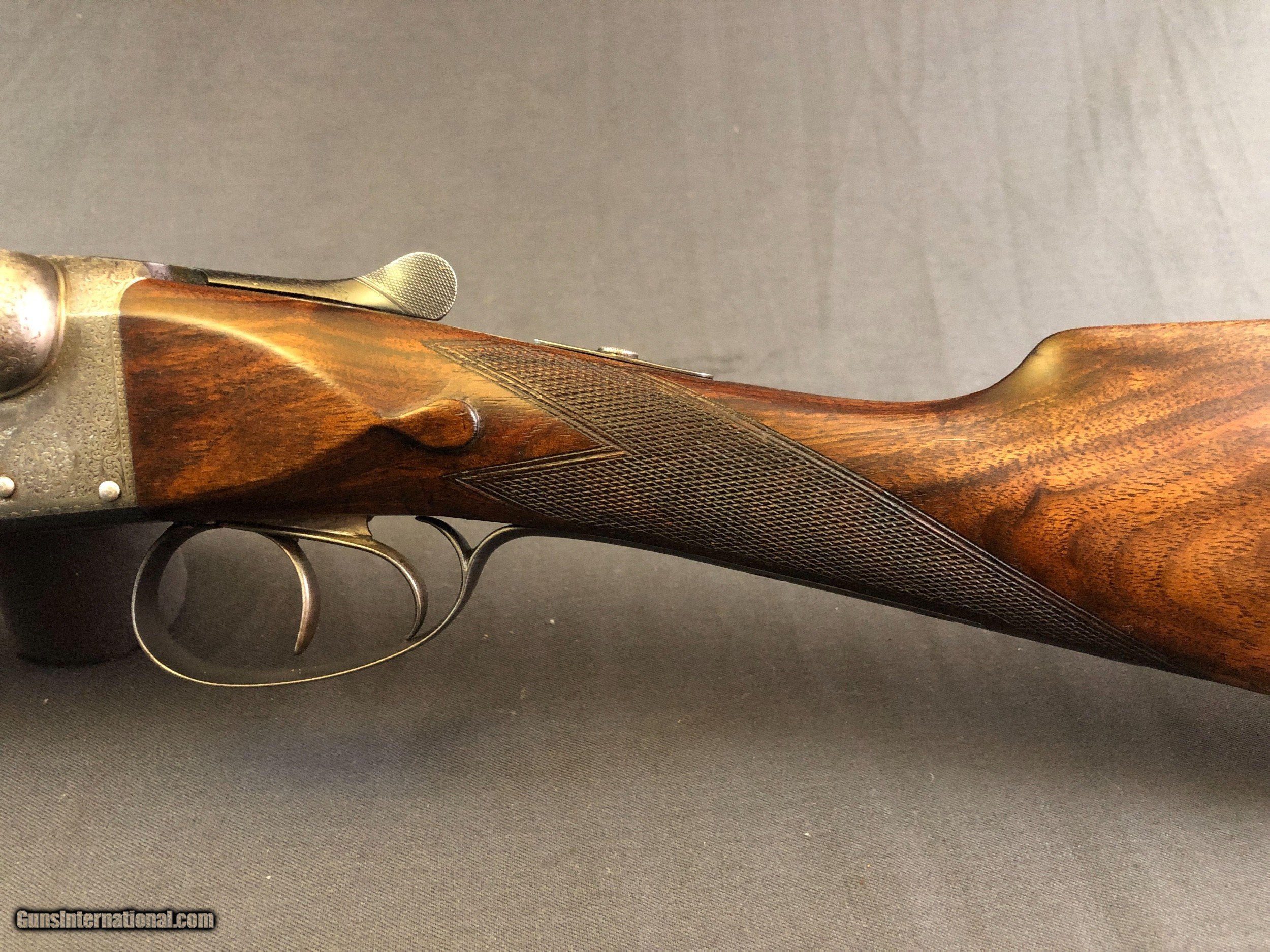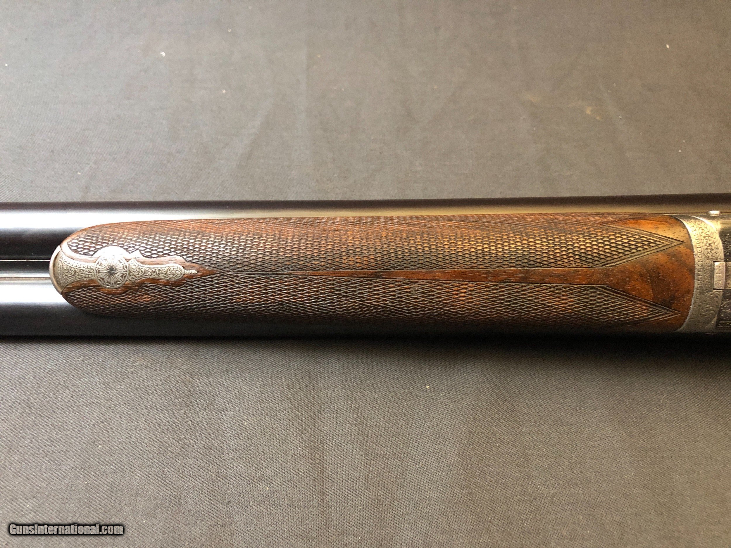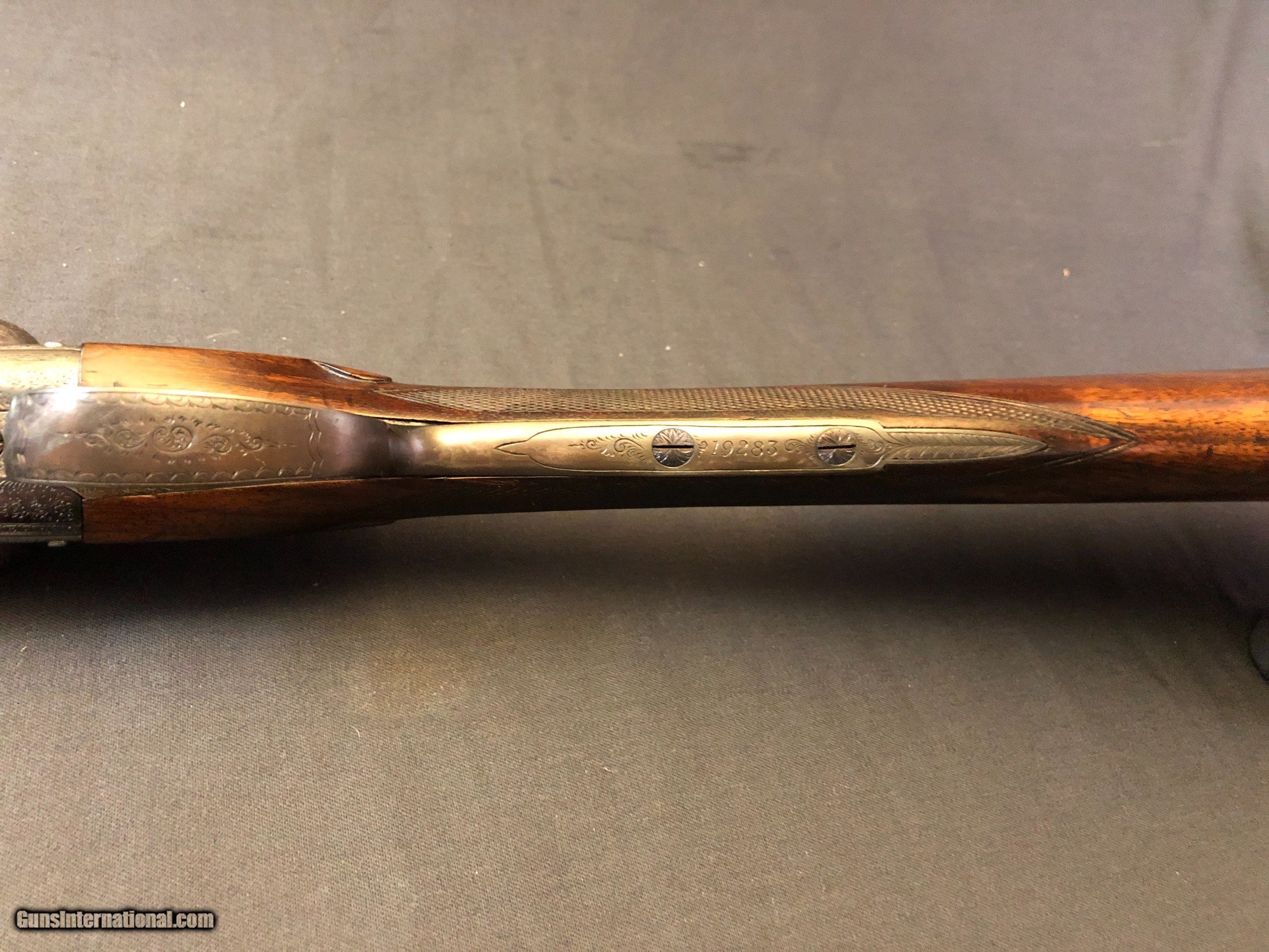 Description: SOLD !!!! A stunning light weight cassic British game gun! At 6lbs there is no need for a 20ga. Very fine full coverage scroll engraving. Nicely figured wood. drop points. In proof. Bright bores. Barrels ring. Locks up tight. No pits, cracks or dents. Ejectors. Cast on. Dolls head and hidden 3rd fastener. Please call Mark 715-814-1295 Pack and ship $45 LAYAWAY: Layaway is available with 1/3 down of final total price including shipping/insurance within 7 days . Balance due in 45 days. Layaway Sales and guns modified at time of sale are FINAL with no refunds, no inspections, no returns. Chokes may be opened to your choice at time of sale for $50 per barrel . SOLD Curio/Relic: Yes Manufacturer: W. RICHARDS Barrel Length: 28IN Bore: .732 & .735 Chambers: 2 1/2 IN Ejectors: YES Condition: EXCELLENT Metal Condition: EXCELLENT Wood Condition: EXCELLENT Bore Condition: EXCELLENT Gauge Info: 12GA Stock Comb: 1 1/2IN Stock Heel: 2 3/16 Stock Cast: ON FOR LEFTY Butt Pad: CHECKERED LOP: 15IN Weight: 6LBS EVEN Choke Left: FULL Choke Right: IMP/CYL Engraving: FULL COVERAGE VERY FINE SCROLL Proof:Nitro: YES |