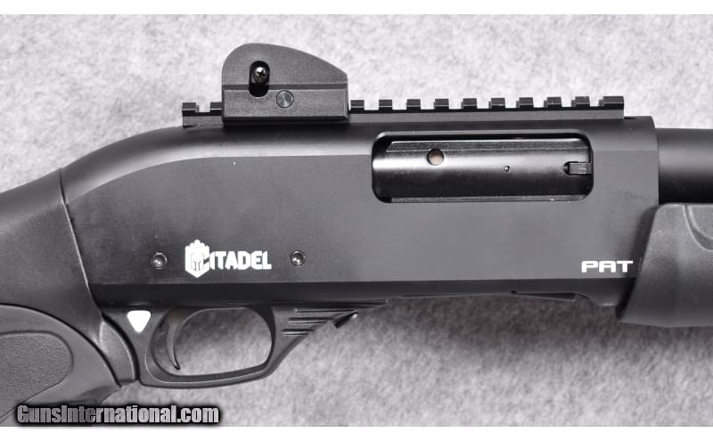 Description: Made in Turkey by Francolin Arms and imported by Legacy Sports, the Citadel PAT shotgun has a three-inch chamber and chrome lined 20" barrel, making this shotgun perfect for home defense. It also features a padded rubber buttstock, a top and bottom Picatinny rail, and ghost ring sights. We acquired a number of the Citadel PAT at an incredible price. These are new shotguns. 12 Gauge SOLD Chambers: 3" chamber Metal Condition: New Bore Condition: New Barrels: 20" chrome lined barrel Stock Dimensions: 14-1/2" length of pull Fore End: 3" piece of Picatinny rail on bottom side of forend Butt Pad: Ventilated rubber recoil pad Weight: 7.2 lbs Sights: Raised fiber optic front sight; rear sight mounted on receiver Picatinny rail Chokes: Cylinder Item Location: Boise, ID |