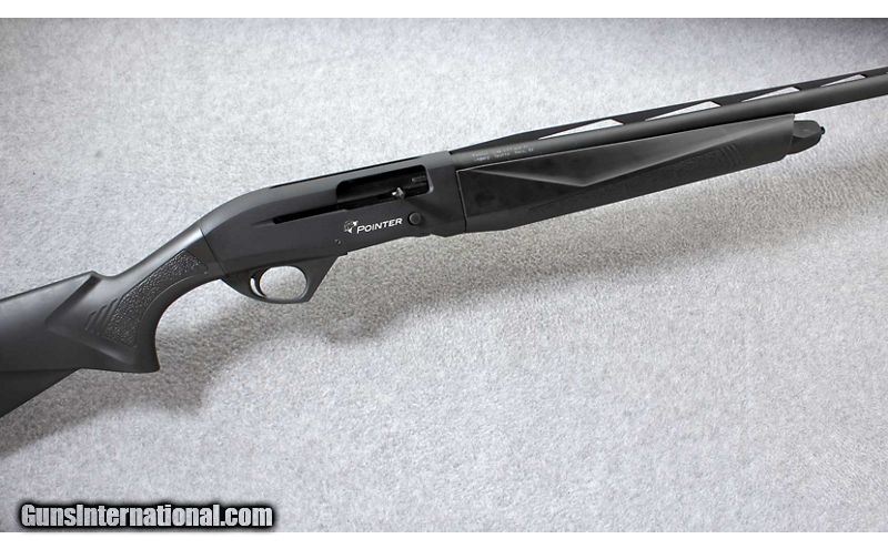 Description: The Pointer Black Synthetic Semi-automatic 12 gauge shotgun features: 28" chrome-moly lined barrel proofed for steel shot; 3/8" dovetail accessory rail on top of receiver; vent rib with fiber optic sight; gas operated cycling system and single round magazine cut-off. 12 Gauge SOLD Chambers: 3 inch Metal Condition: Excellent Bore Condition: Excellent Barrels: 28 inch barrel Stock Dimensions: 14 3/8 inch LOP Fore End: Checkered synthetic Butt Pad: Rubber pad Weight: 7 Lbs. 5 Oz. Sights: Vent rib with finer optic front bead Chokes: Interchangeable choke tube Item Location: Lehi, UT |