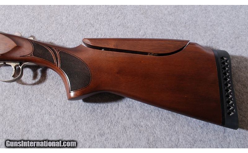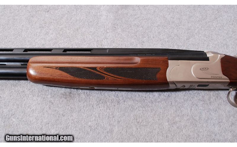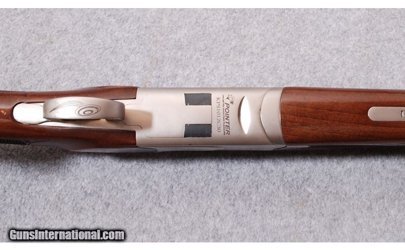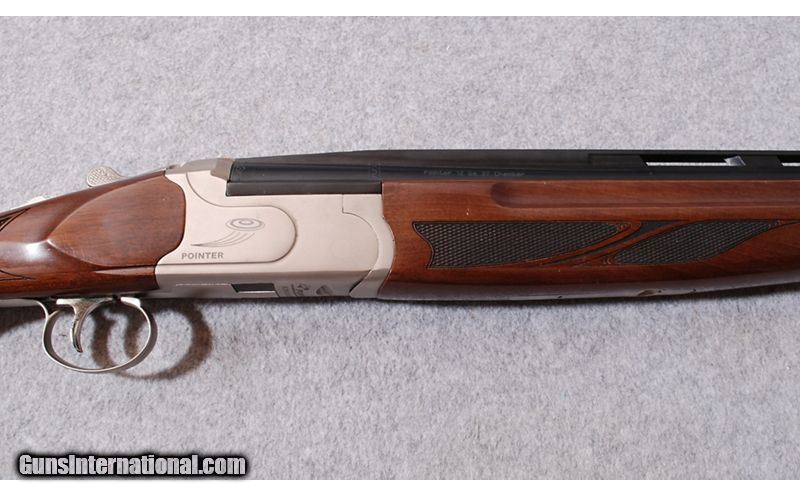 Description: Pointer Clays Series Over and Under Shotgun -This shotgun features an adjustable cheekpiece with a 3" chamber, along with a top-tang safety, and a walnut stock and forend. Five chokes - SK, IC, M, IM & F Shell ejectors Adjustable comb Wide, ventilated, raised rib Turkish walnut stock 12 Gauge SOLD Chambers: 3 Metal Condition: Excellent with minor handling marks Wood Condition: "Very good to excellent. Handling marks, small dents and chips on underside of butt stock. Bore Condition: Excellent. Shiny with no bulges or dents. Barrels: 30" with vent rib and porting Triggers: Smooth trigger Stock Dimensions: 14" LOP Fore End: Checkered walnut Butt Pad: Textured rubber pad Weight: 9 lb Sights: Vent rib with mid bead and fiber optic front bead Chokes: "Skeet, IC, M, IM & F Item Location: Rapid City, SD |